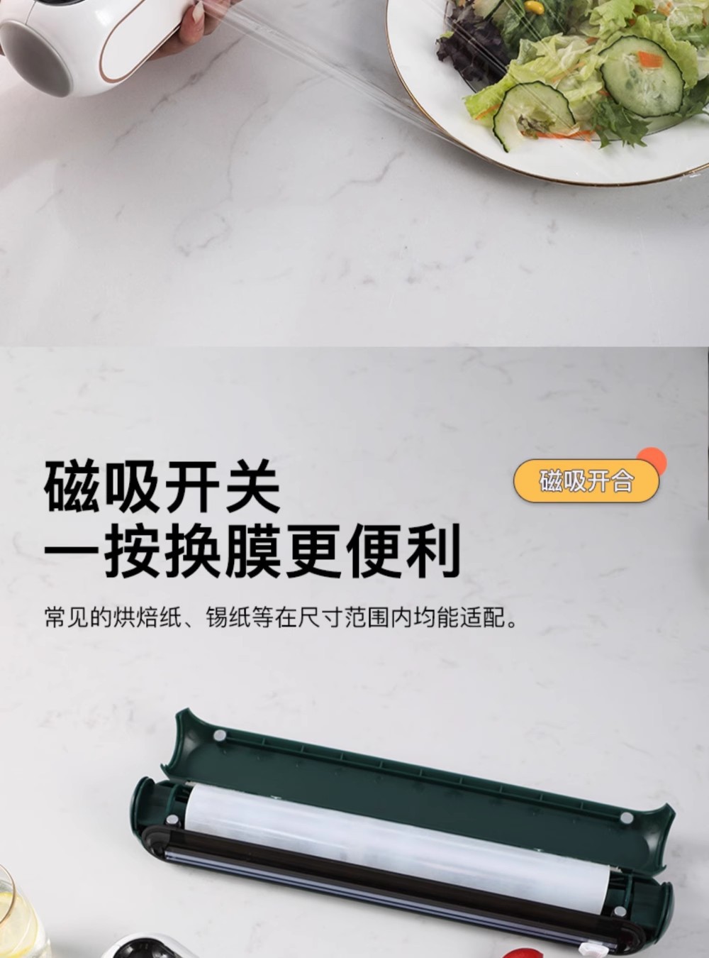 一次性保鮮膜切割神器廚房免撕滑刀食品級家用磁吸冰箱壁掛錫紙盒