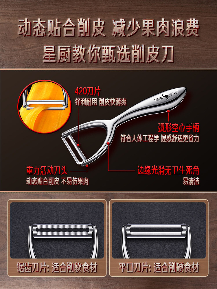 三四鋼®削皮刀不鏽鋼蘋果去皮器 馬鈴薯剝刨刮家用多功能水果創刀