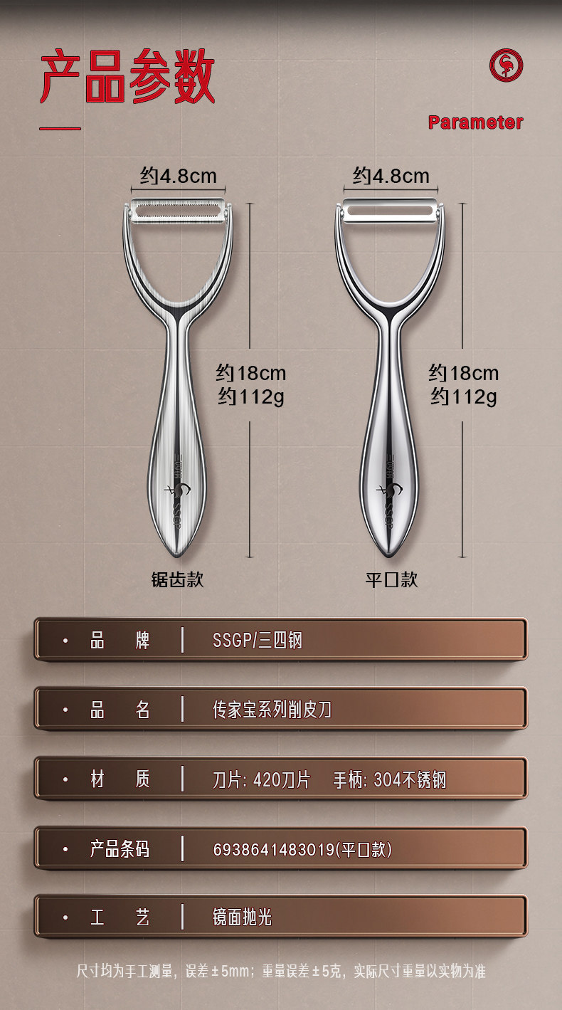 | 規格 | 傳家寶系列削皮刀:鋸齒(砂光)款 |