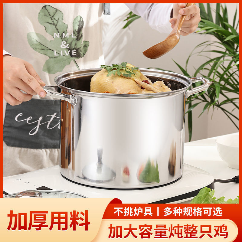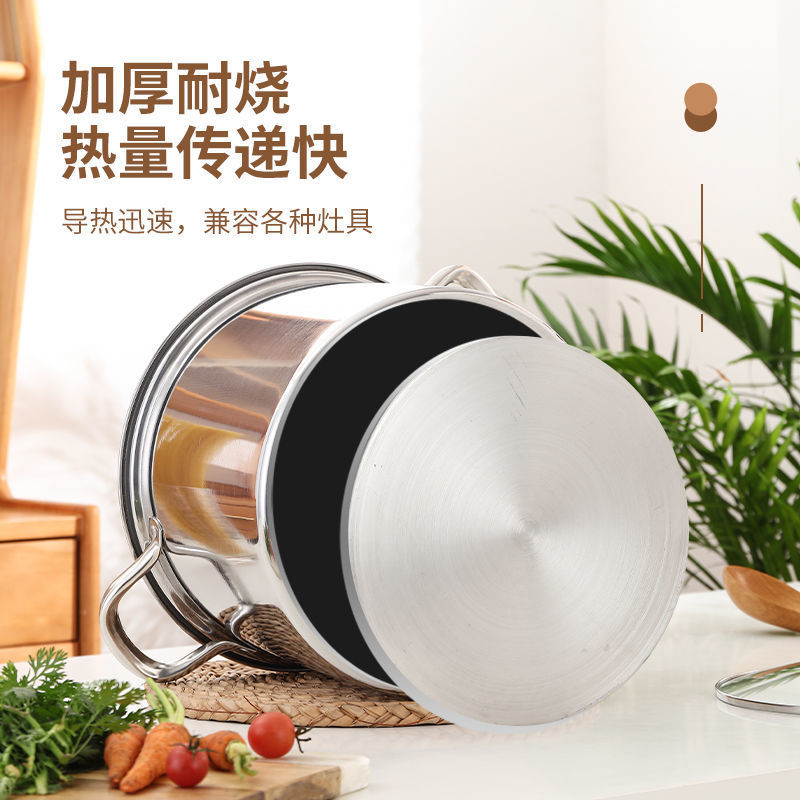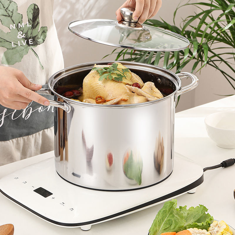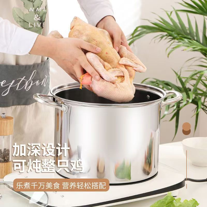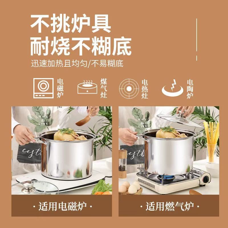 不鏽鋼高湯鍋加厚加高大容量煲湯熬粥蒸煮燉鍋家用電磁爐瓦斯煮鍋