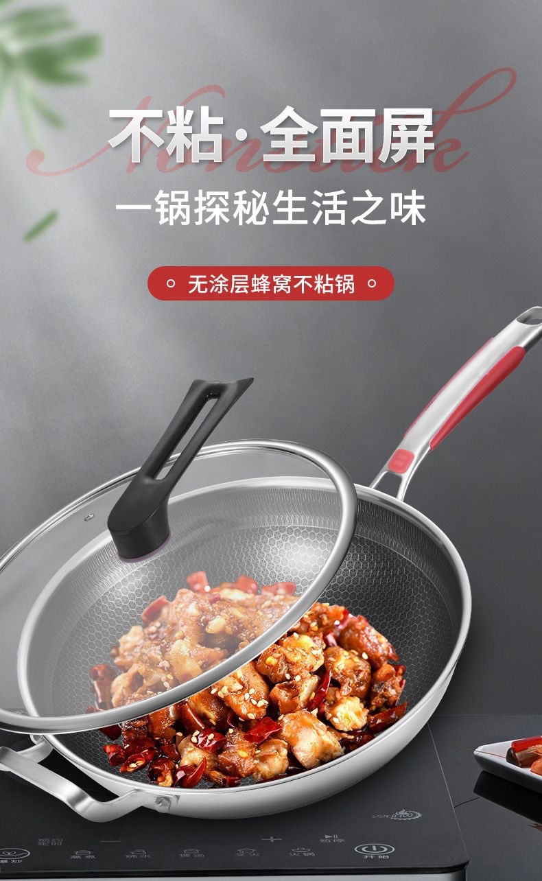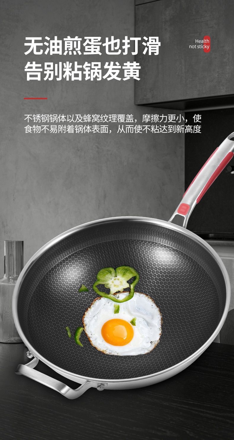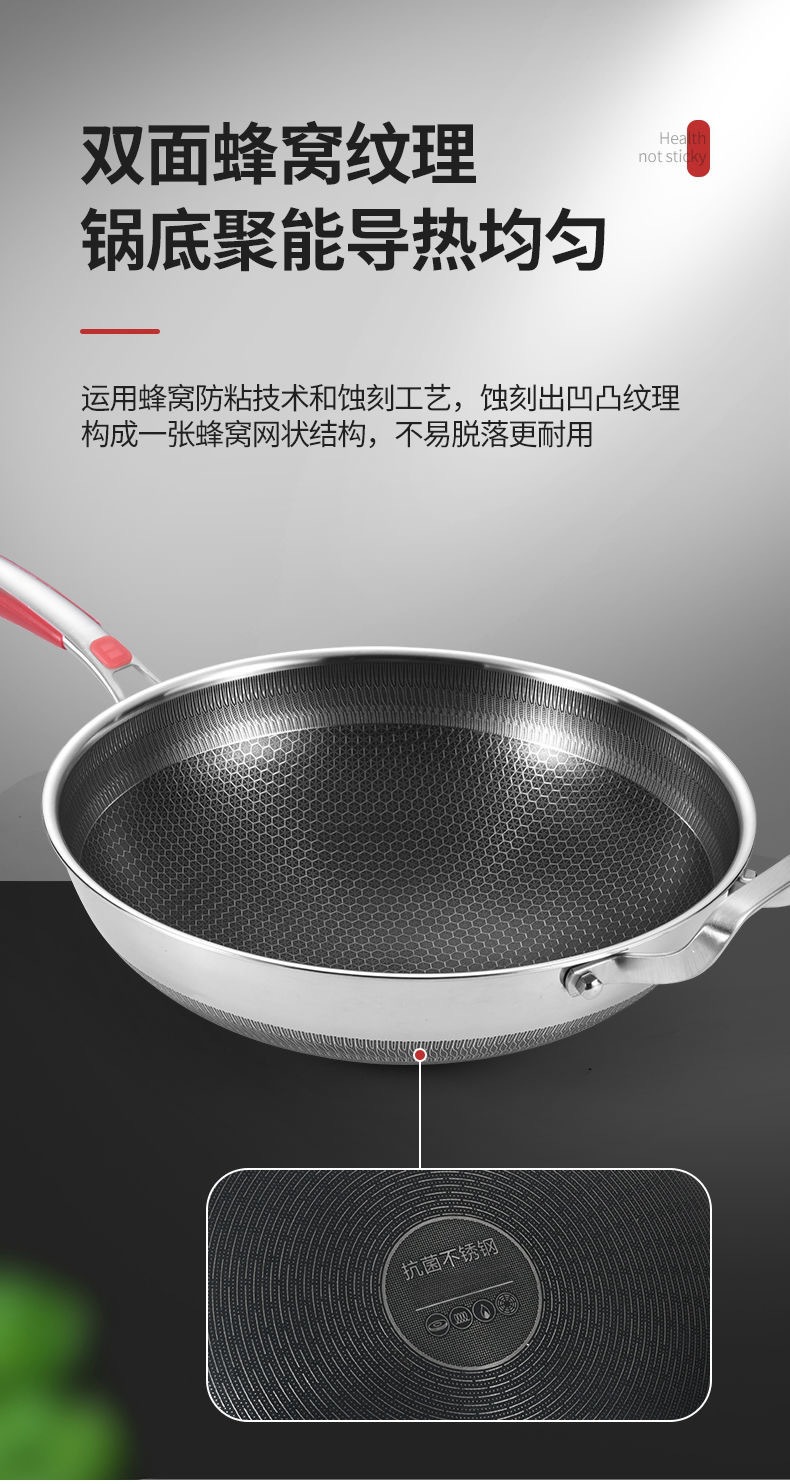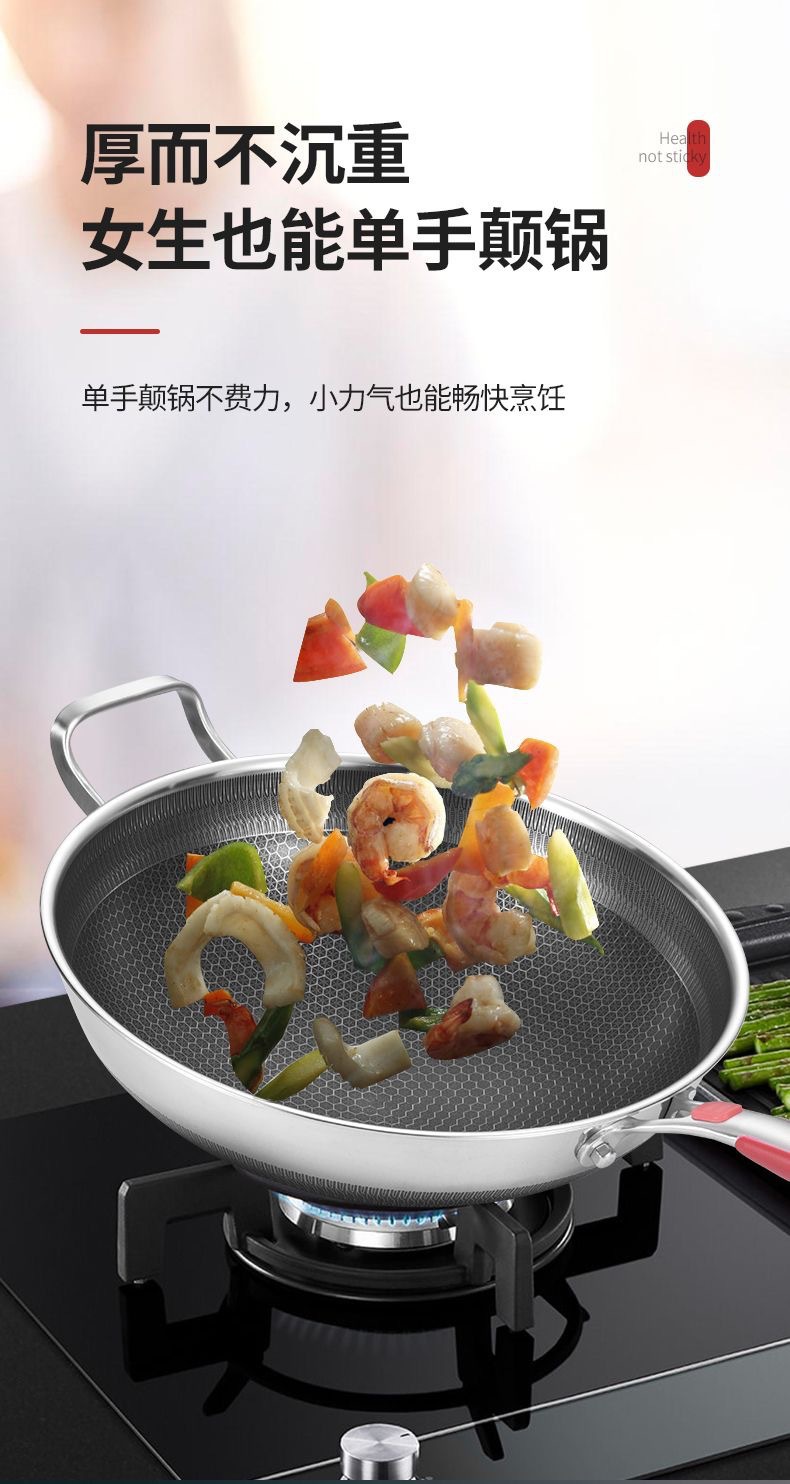 316不鏽鋼炒鍋家用加厚不沾鍋平底炒菜鍋電磁爐瓦斯爐通用