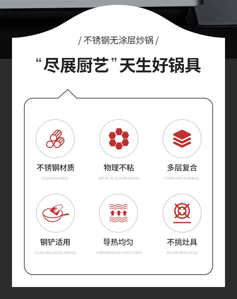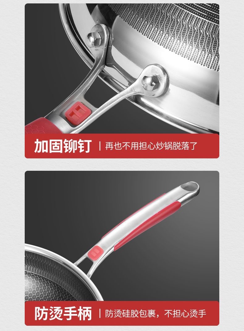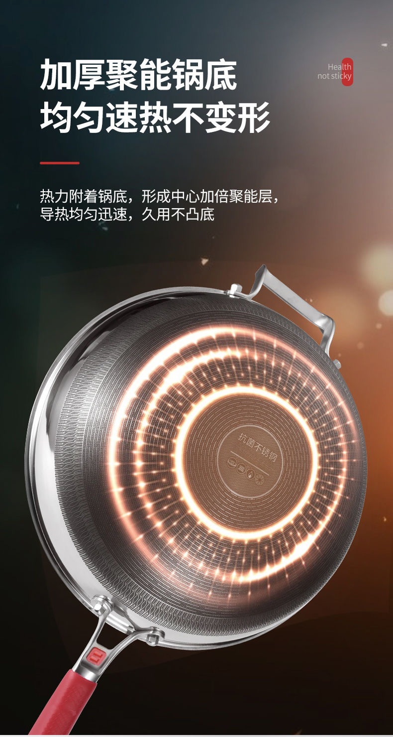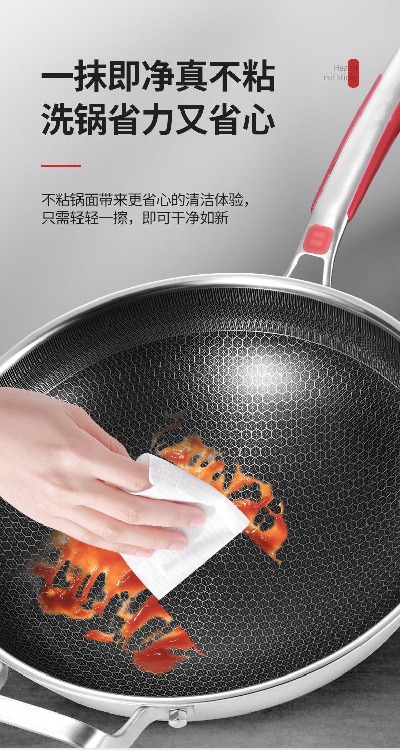 316不鏽鋼炒鍋家用加厚不沾鍋平底炒菜鍋電磁爐瓦斯爐通用