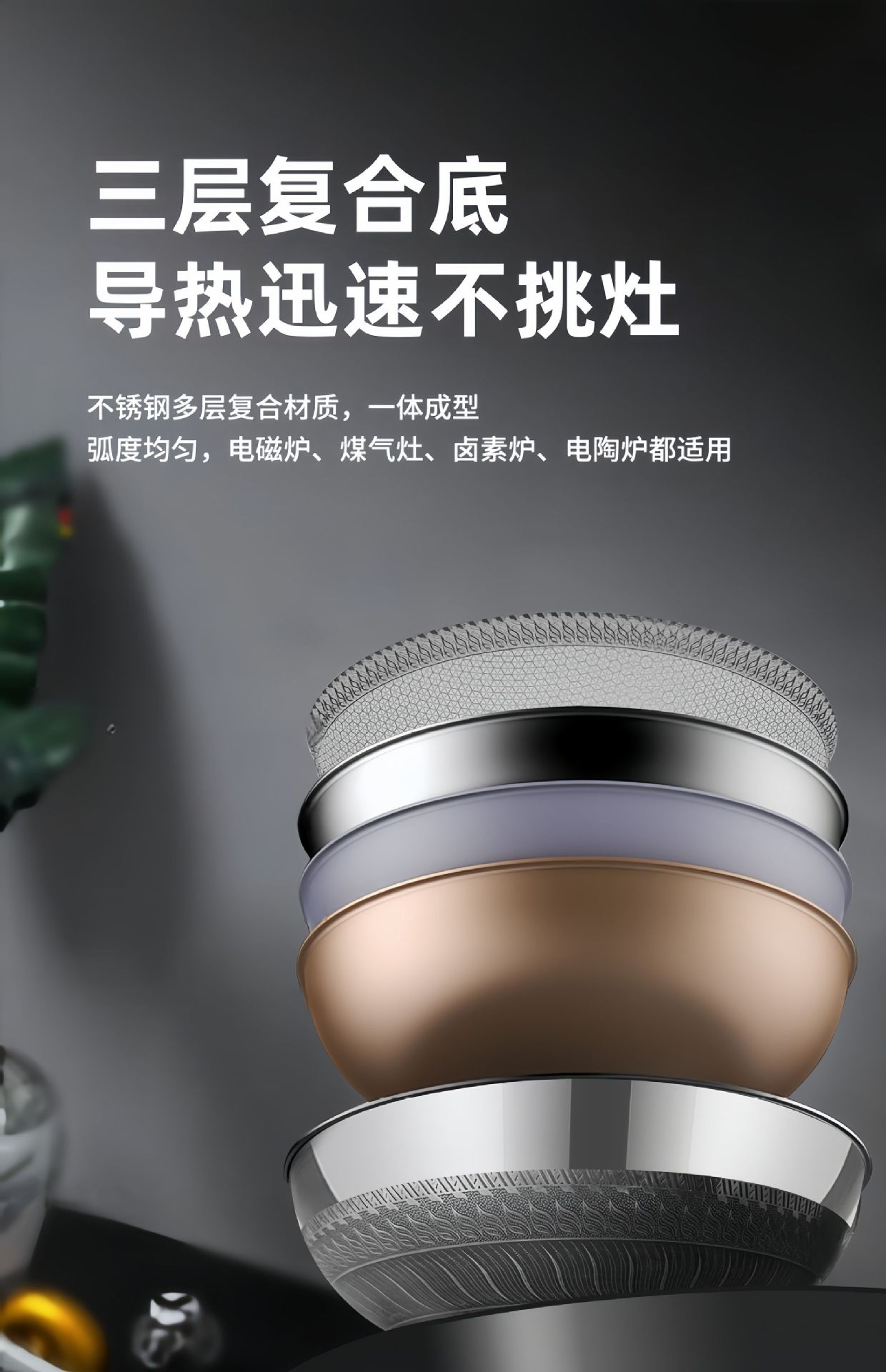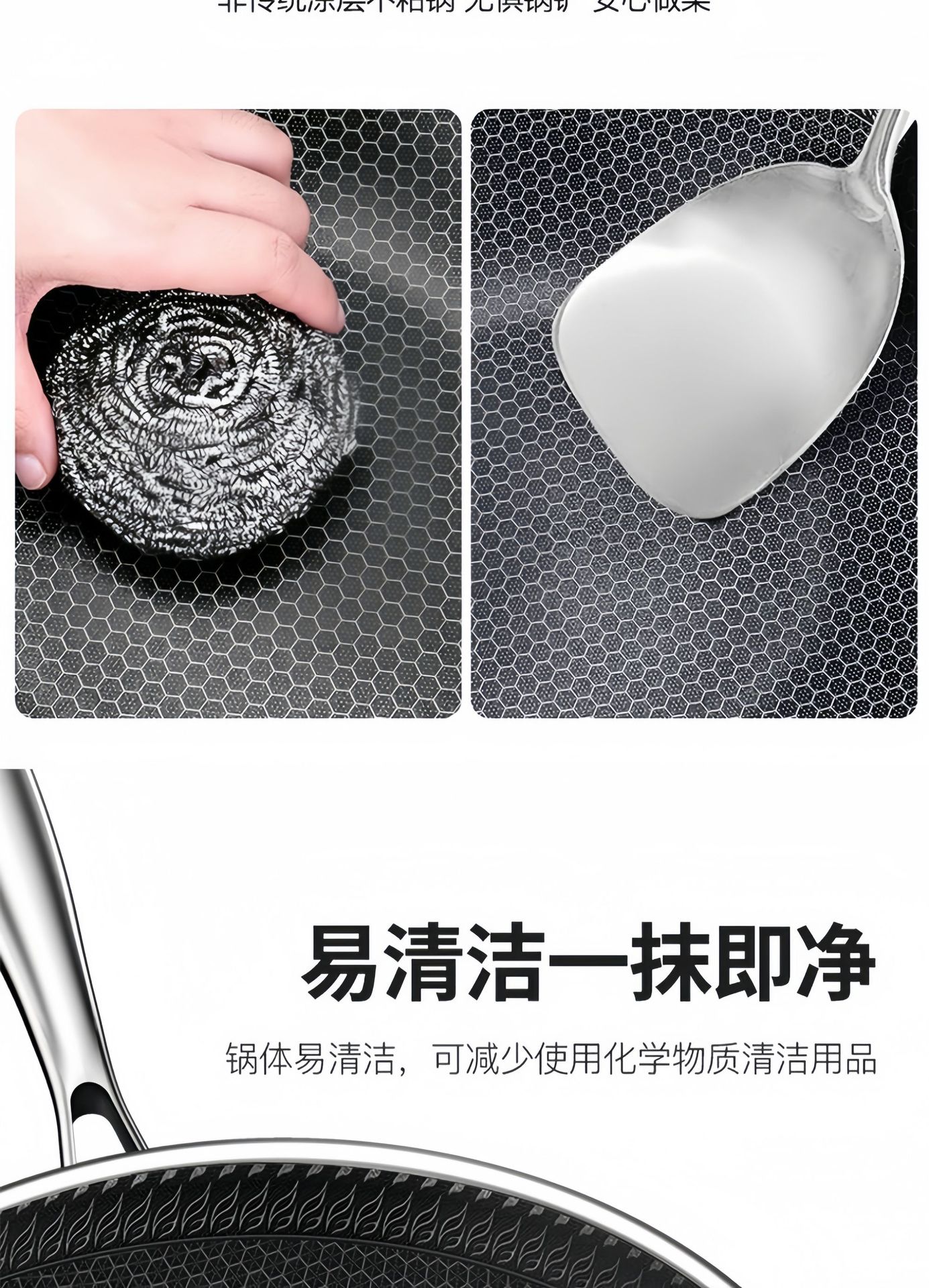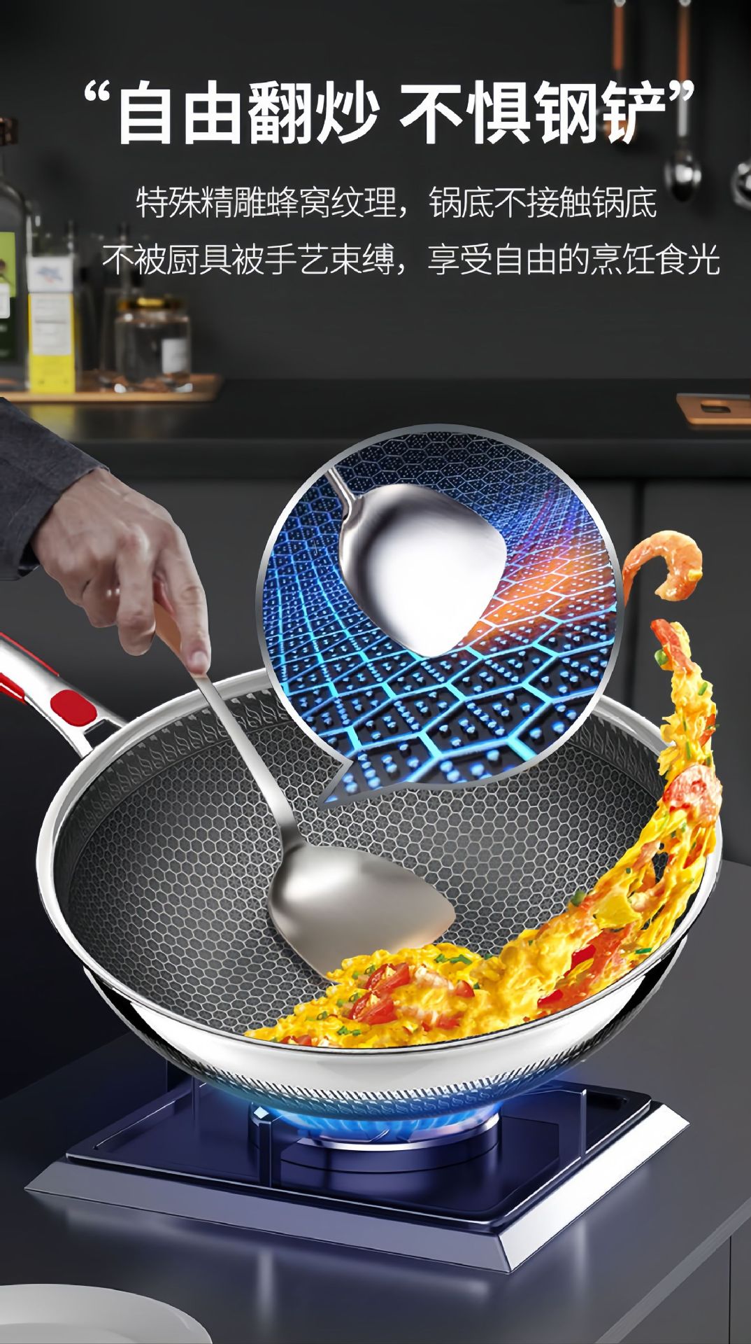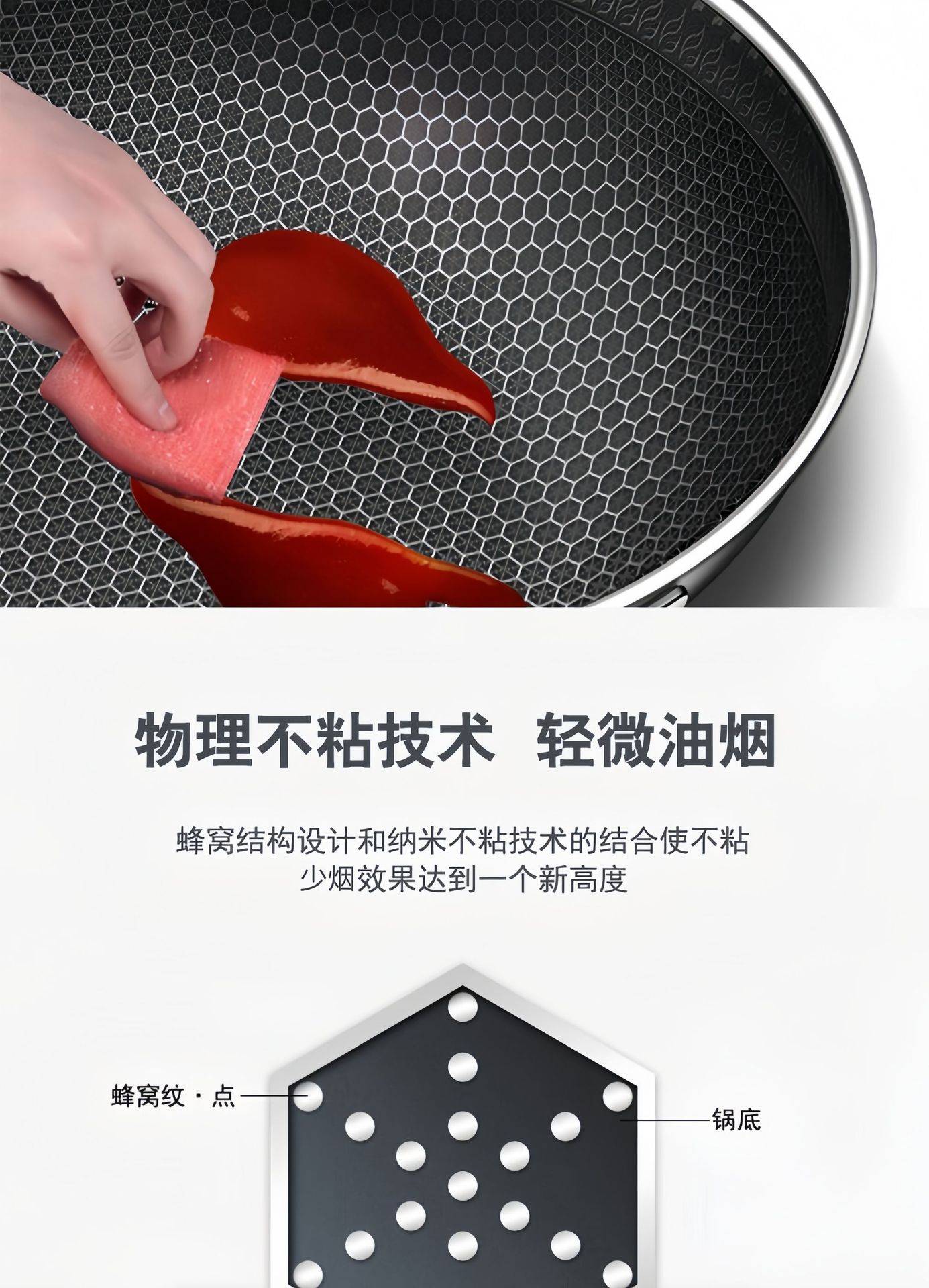 316L不鏽鋼雙面屏蜂窩不沾鍋炒菜鍋家用平底炒鍋瓦斯電磁爐