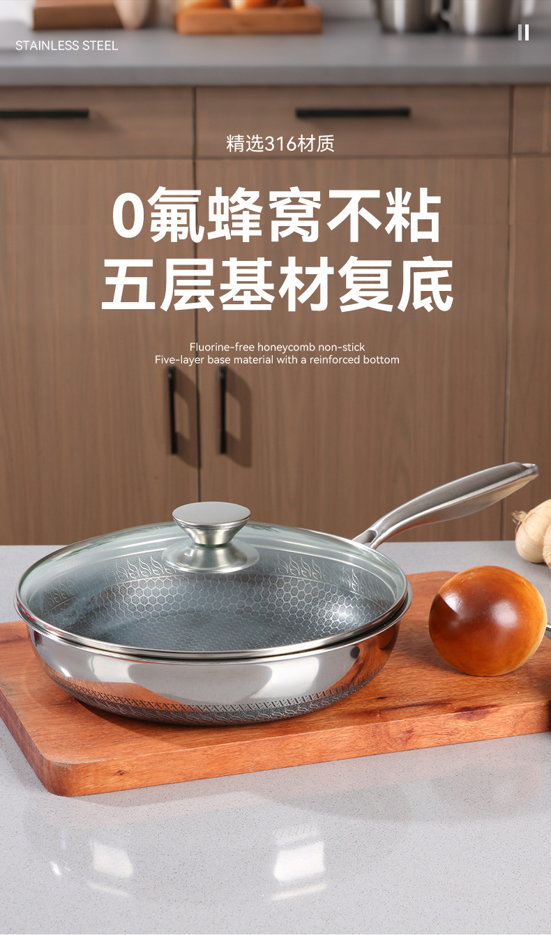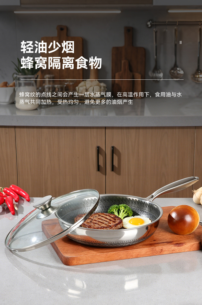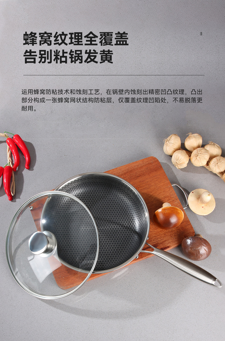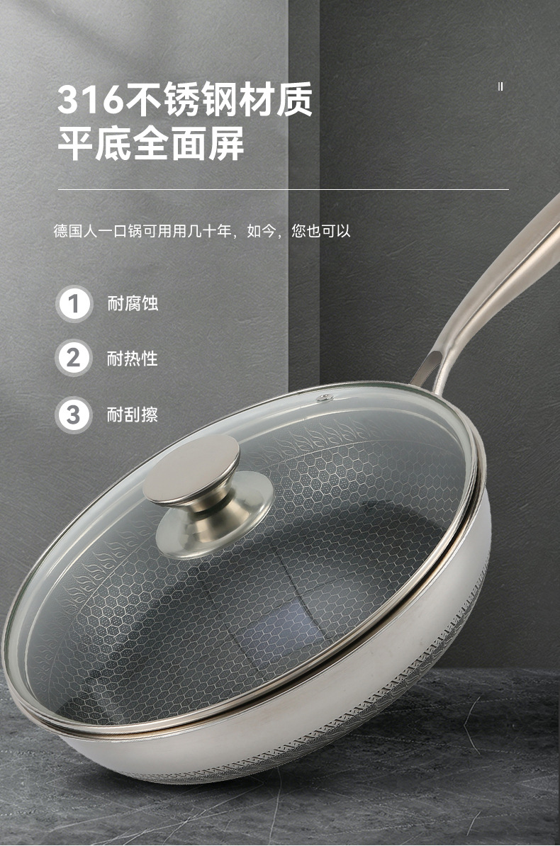 蜂窩316不鏽鋼炒鍋平底煎鍋炒菜鍋不沾鍋不鏽鋼炒鍋禮品鍋具