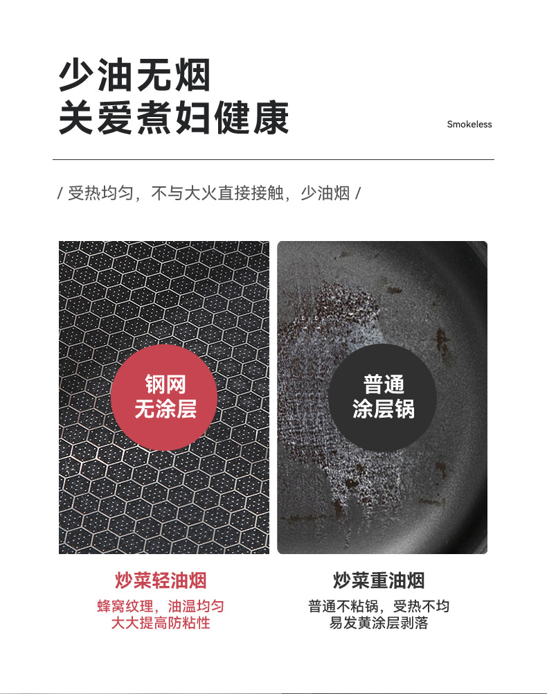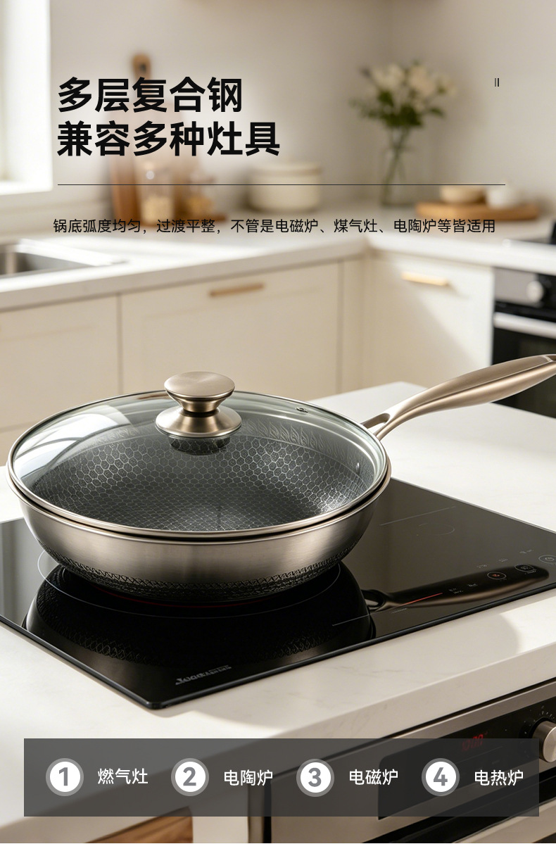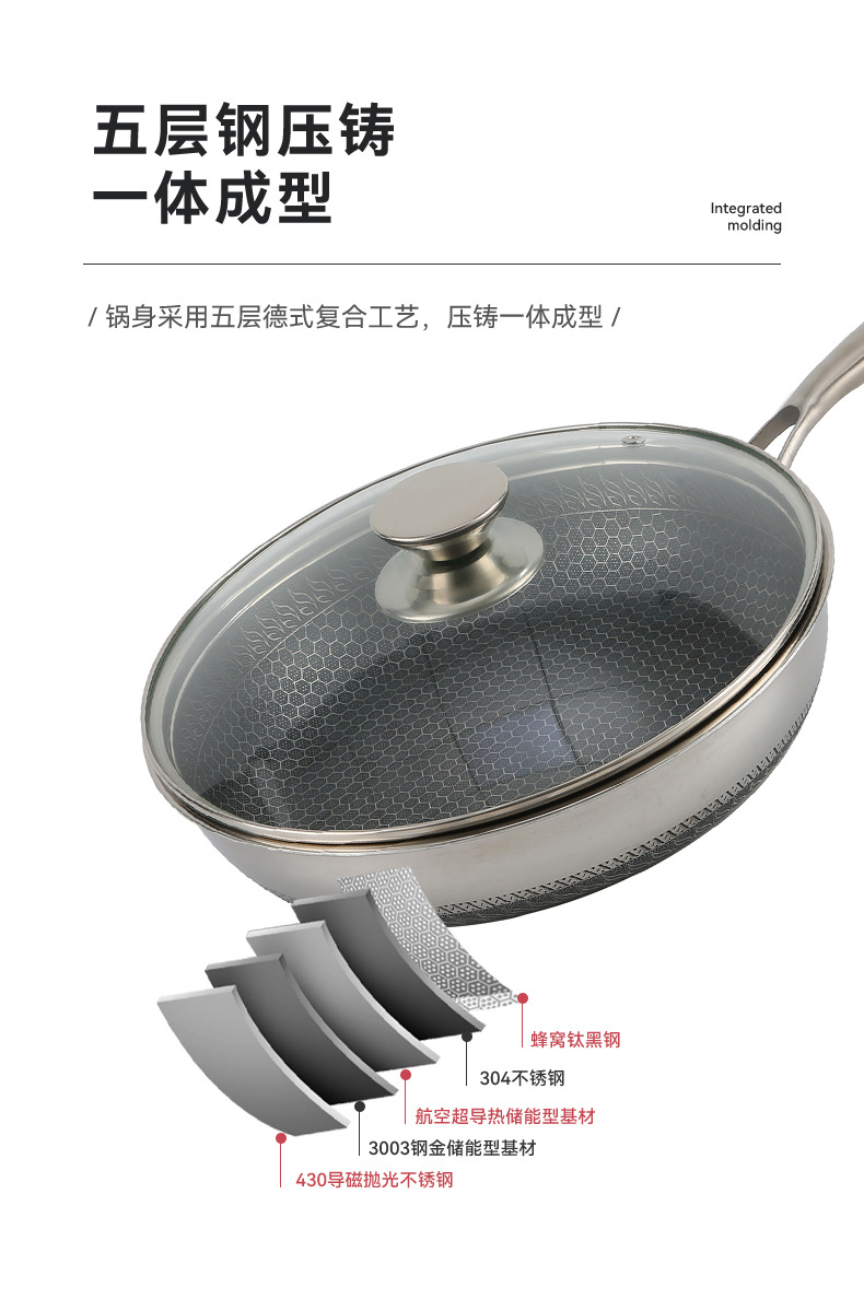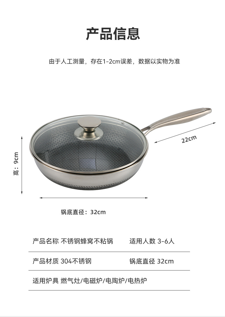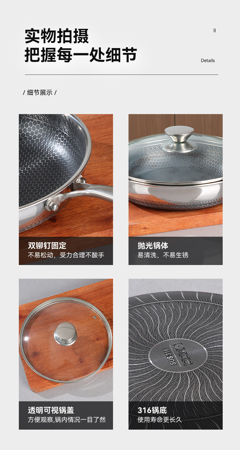 蜂窩316不鏽鋼炒鍋平底煎鍋炒菜鍋不沾鍋不鏽鋼炒鍋禮品鍋具