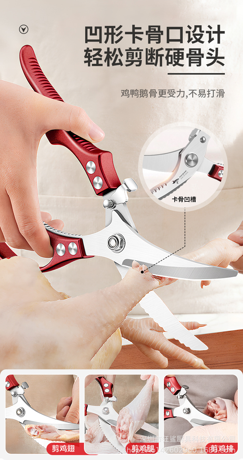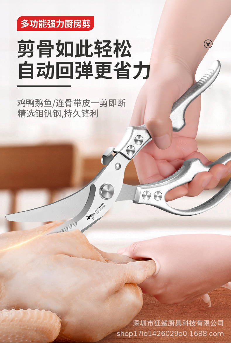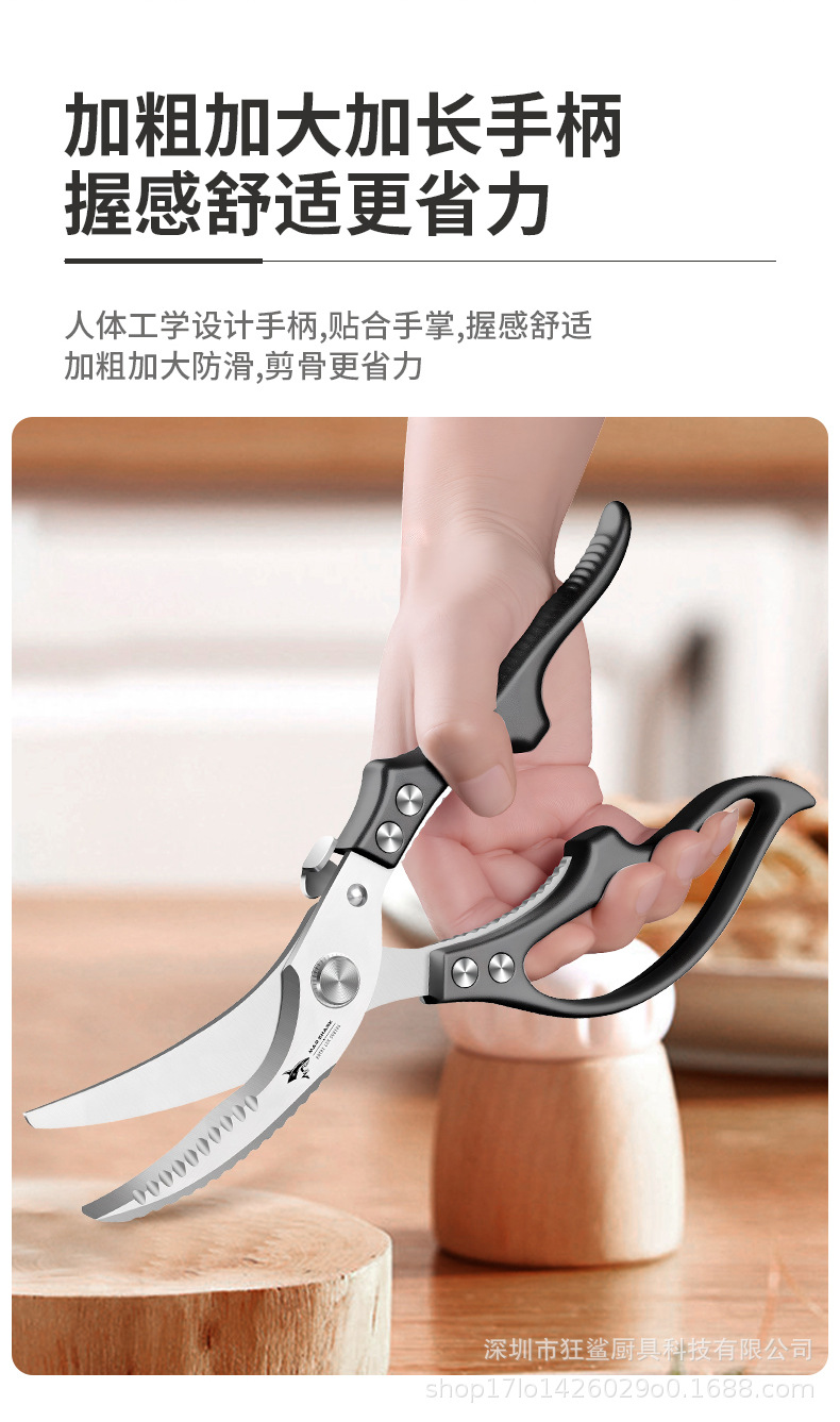 狂鯊廚房剪刀強力雞骨剪食品級不鏽鋼剪子 DJJ501 皓月雞骨剪