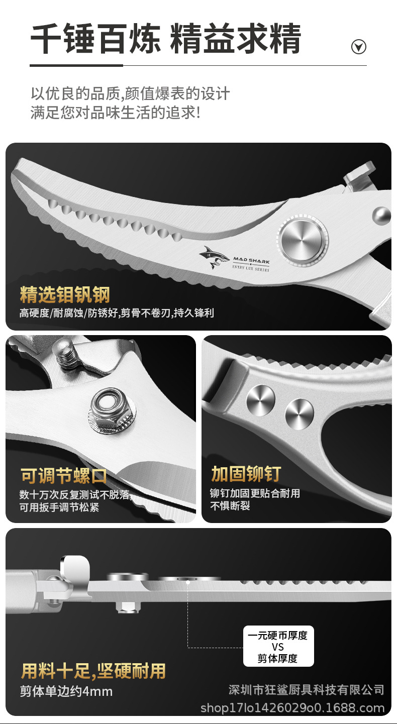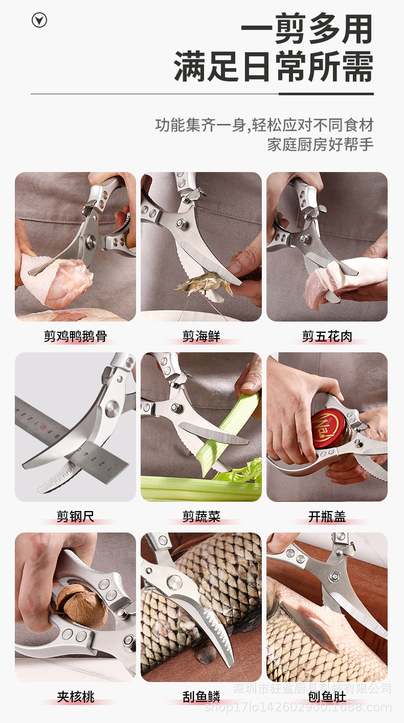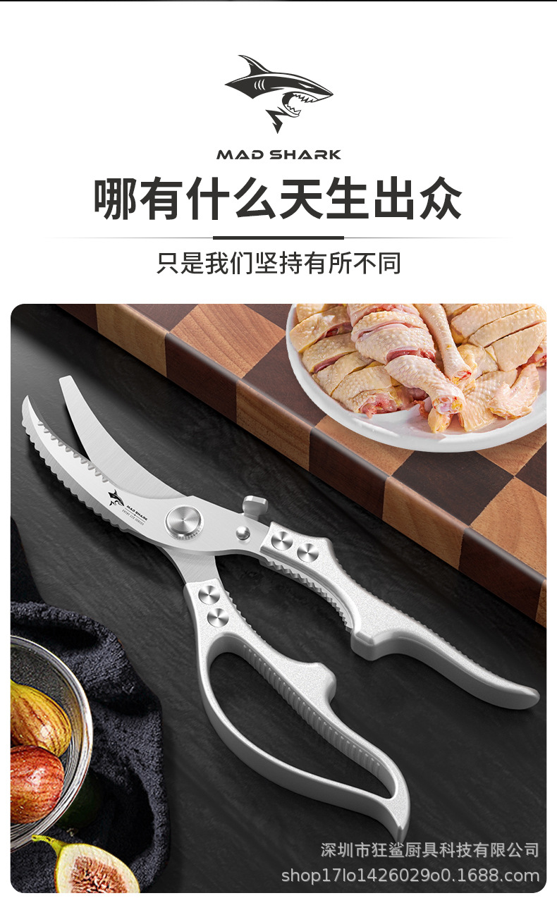 狂鯊廚房剪刀強力雞骨剪食品級不鏽鋼剪子 DJJ501 皓月雞骨剪