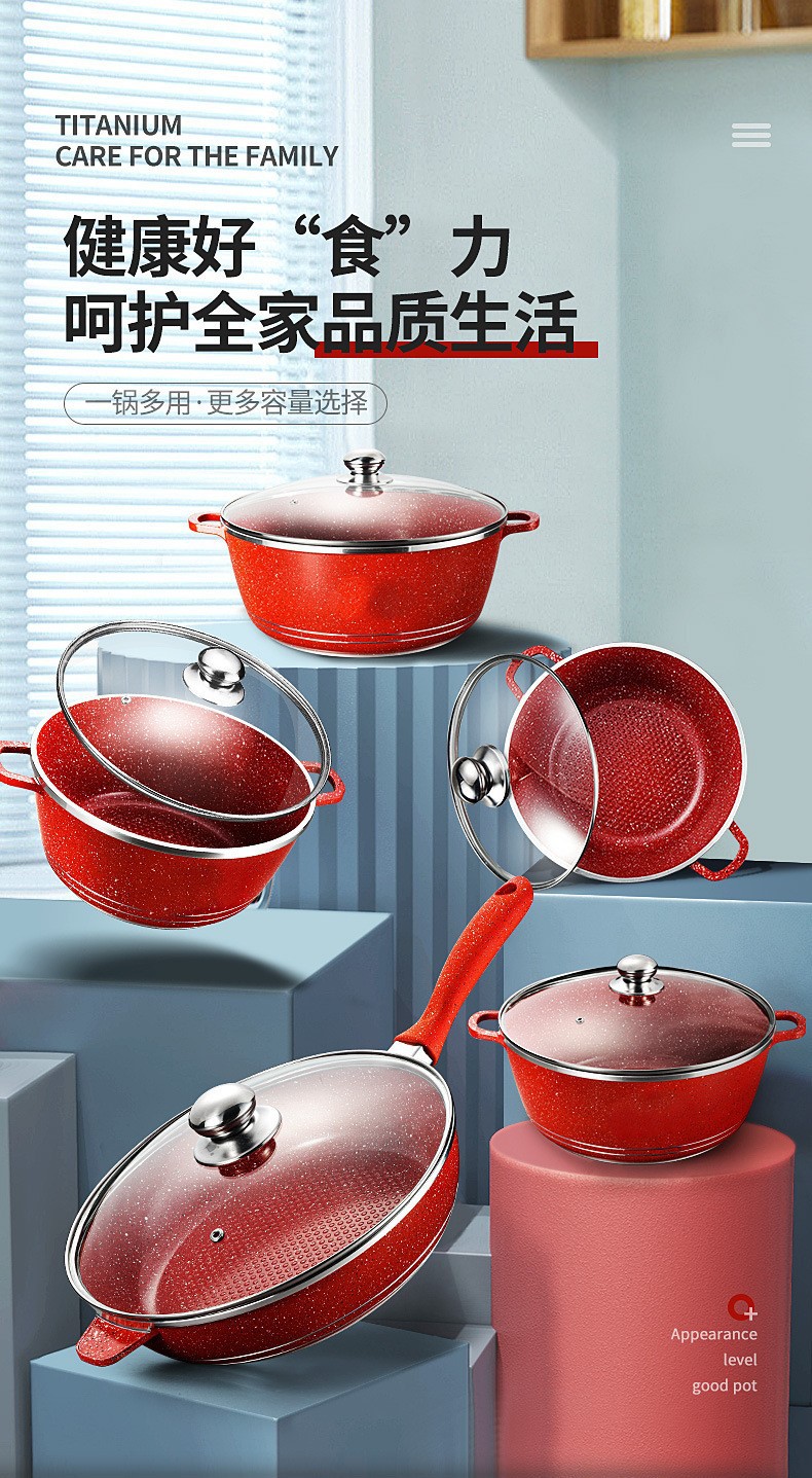 韓式鍋套裝鍋不沾鍋鋁鍋壓鑄鍋麥飯石不沾鍋
