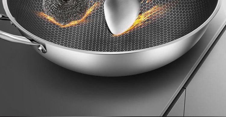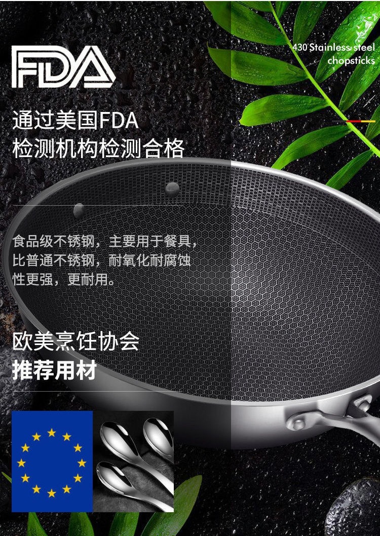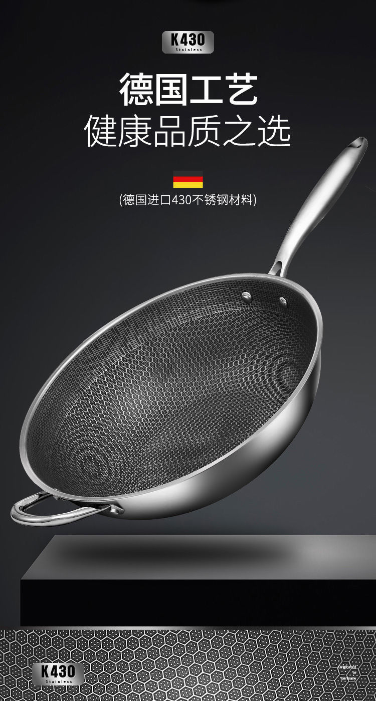德國不鏽鋼炒鍋不沾鍋無塗層少油煙炒菜鍋具家用電磁爐瓦斯通用