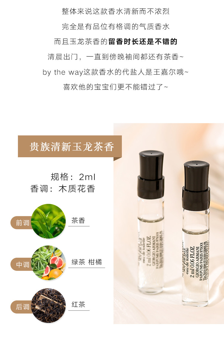 阿瑪尼玉龍茶香水小樣寄情男士貴族清新香氛2ml持久畱香無噴頭