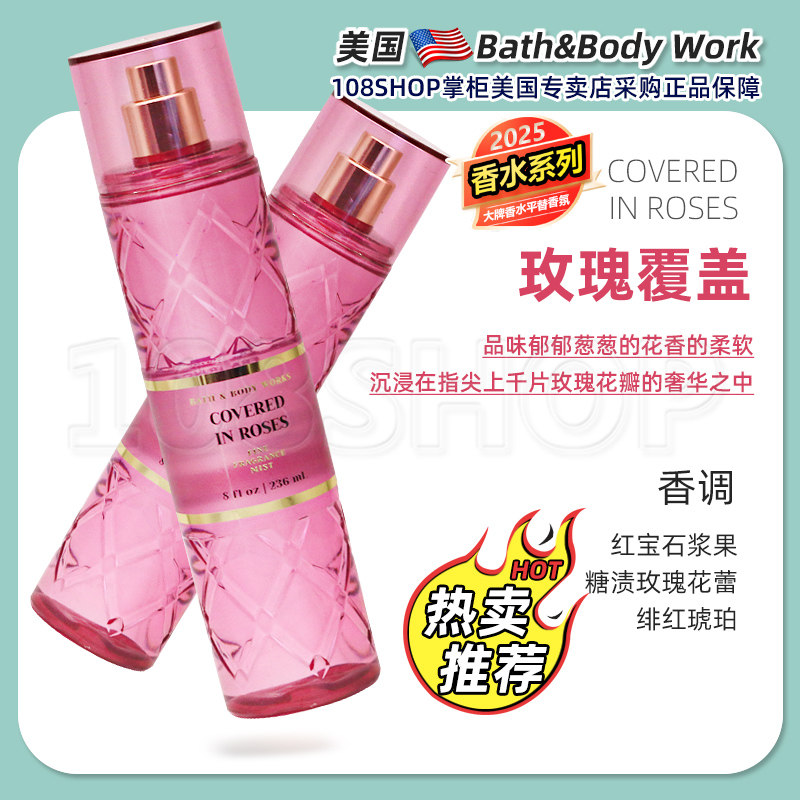 美國BBW身體香氛噴霧Bath&Body Works玫瑰覆蓋/純粹奇跡玫瑰236ML