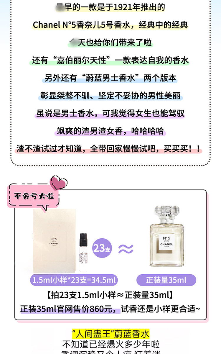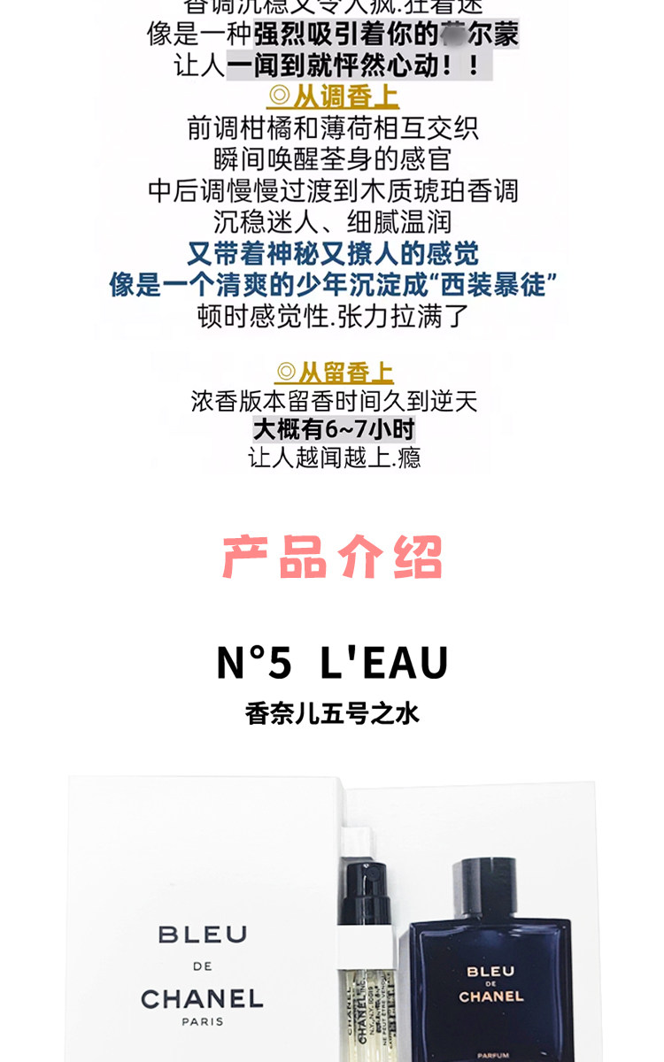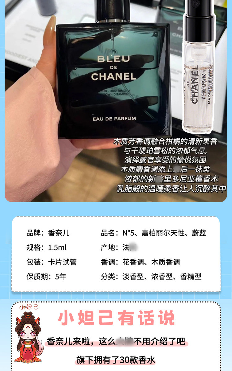 香奈兒香水小樣蔚藍男士coco可可小姐粉邂逅嘉伯麗爾天性5號香水