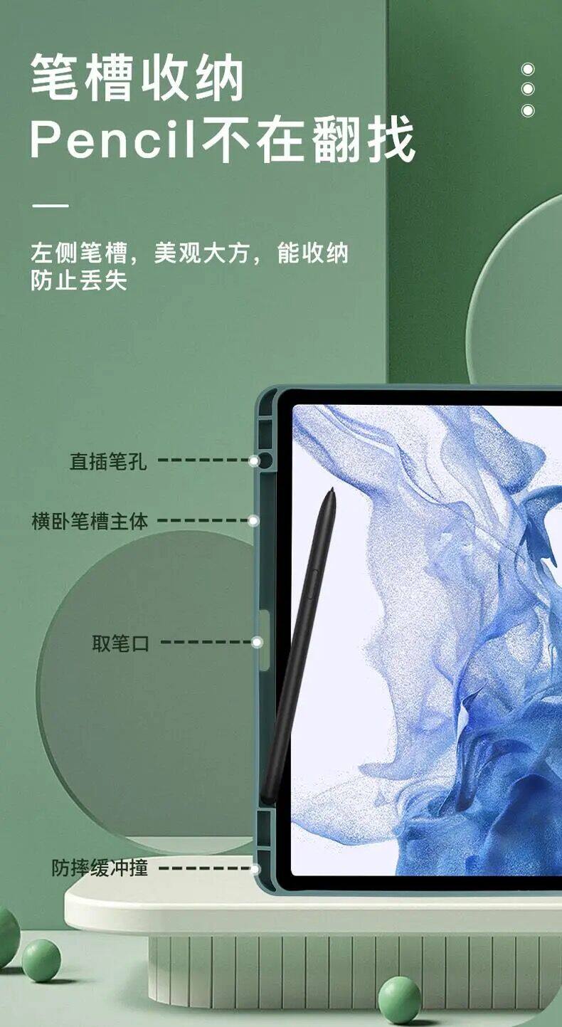 適用三星TabS8+無磁保護套S7FE12.4帶筆槽A9+11英寸A8亞克力S11平板S9FE旋轉S10+Ultra橫竪屏S6Lite軟邊硬殼