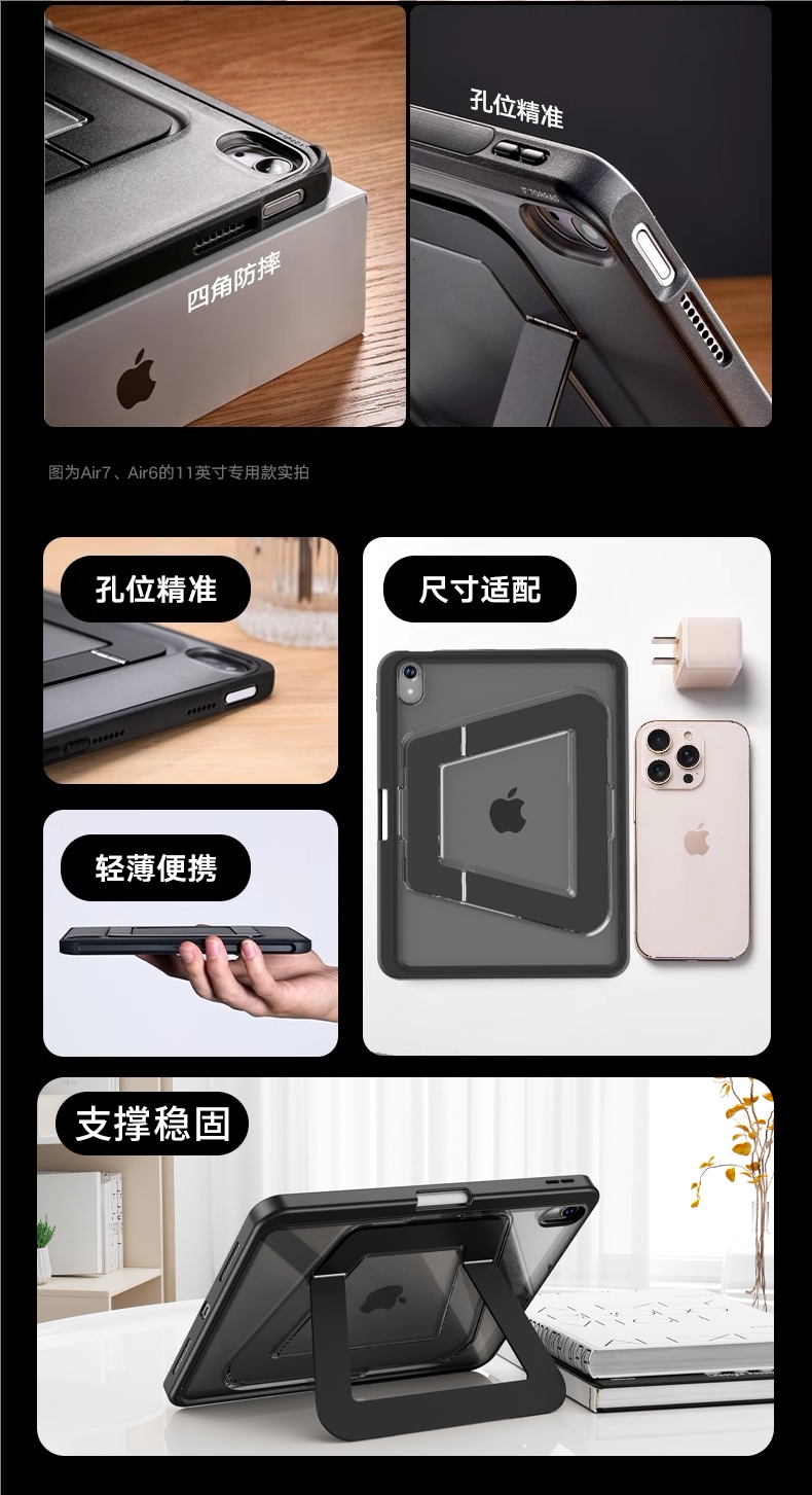 2025新款支點殼iPadAir7/6保護殼無蓋ipad11平板套mini7亞克力10代適用蘋果Pro11寸帶筆槽9防彎摔5輕薄13支架