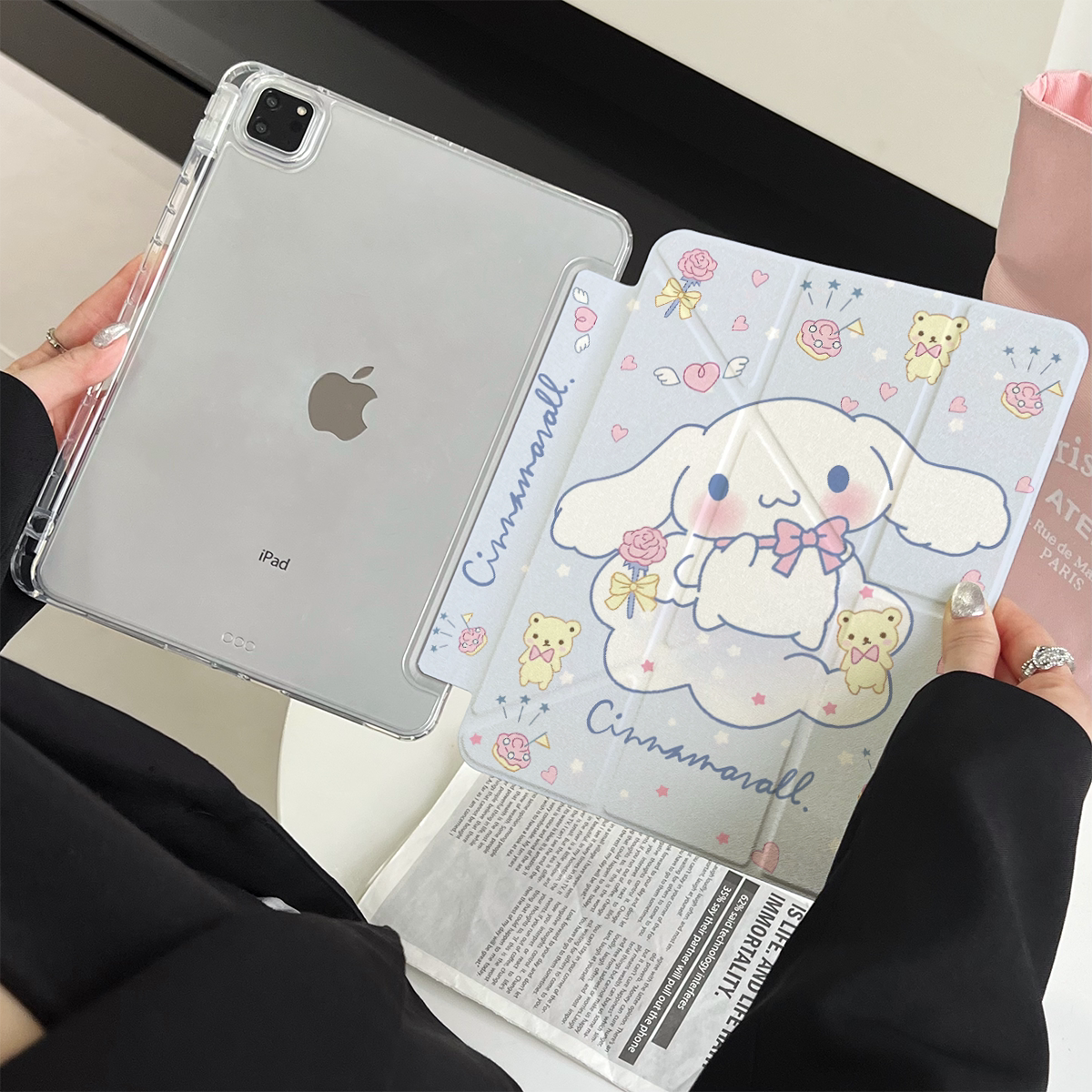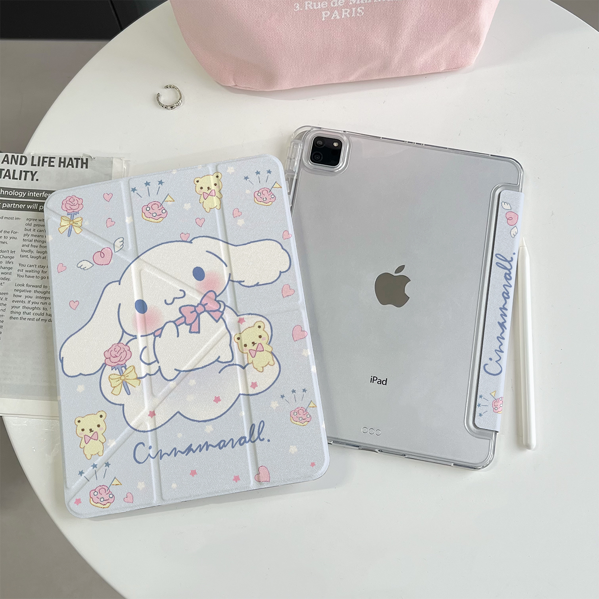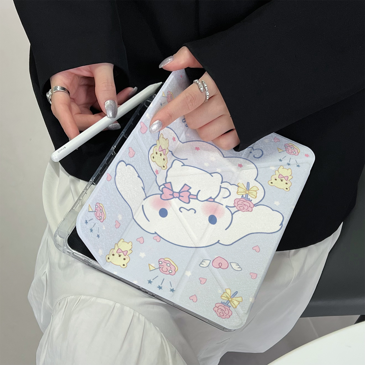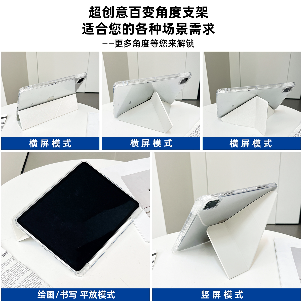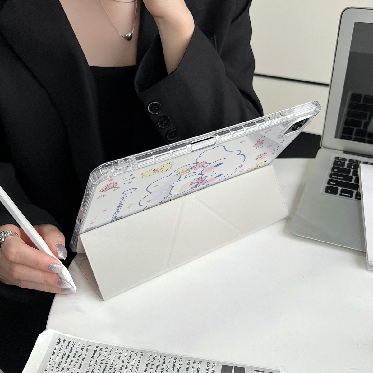 超創意三+y折適用2022年第10代ipad保護套新11代A16帶筆槽2021款10.2英寸大耳狗Air11全包pro11亞克力9.7透明