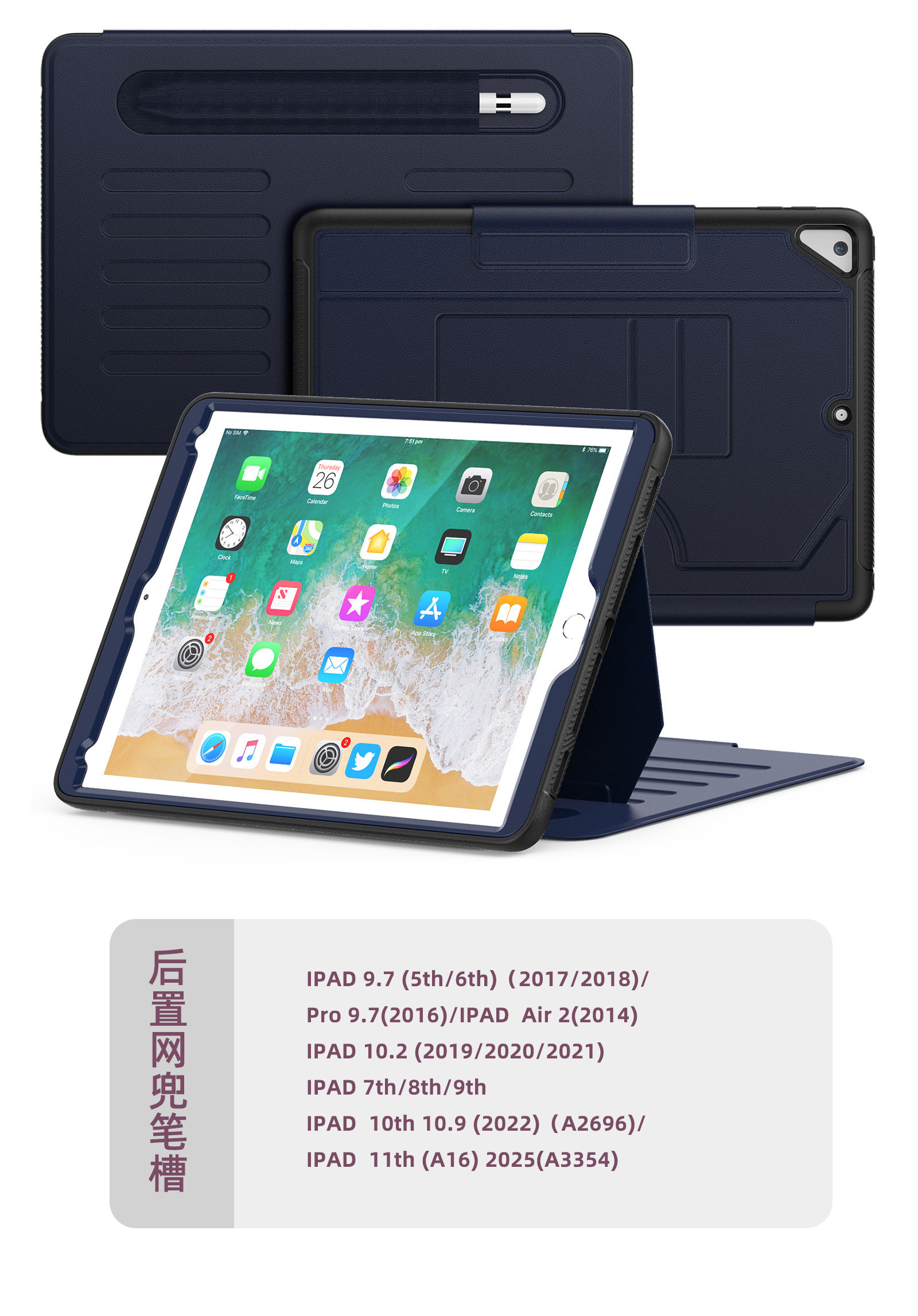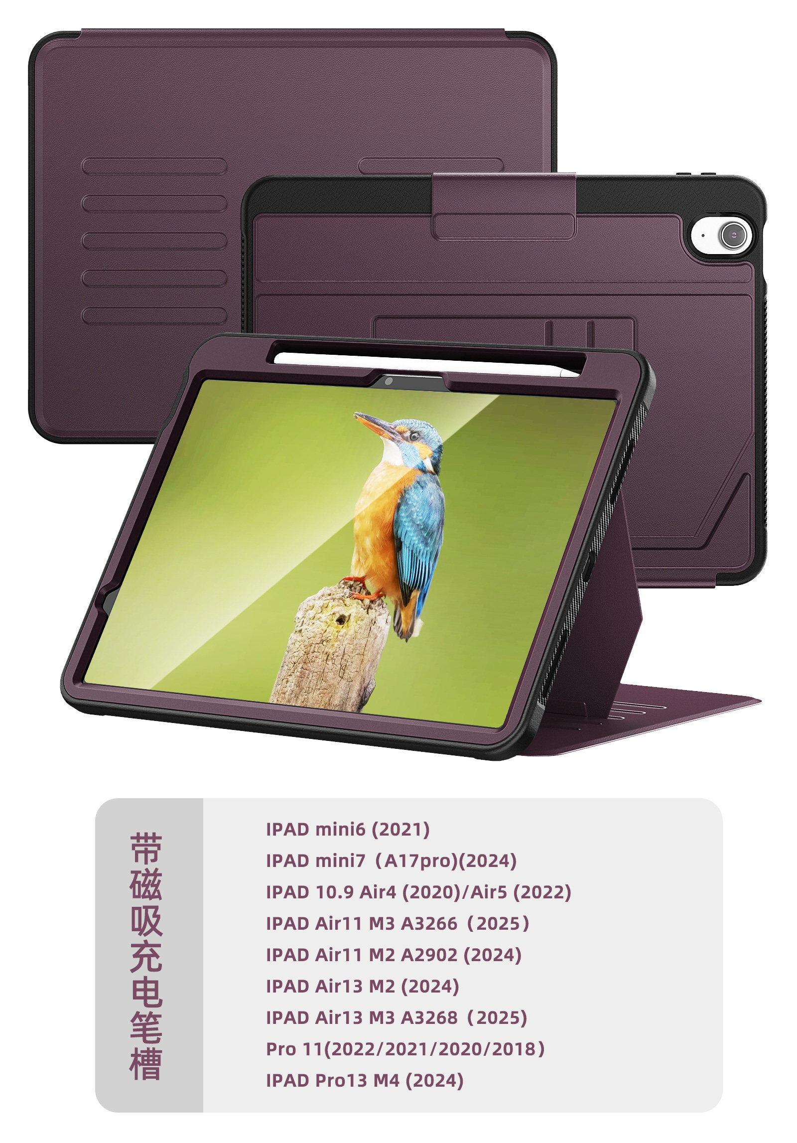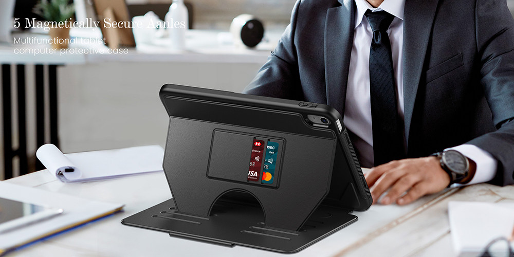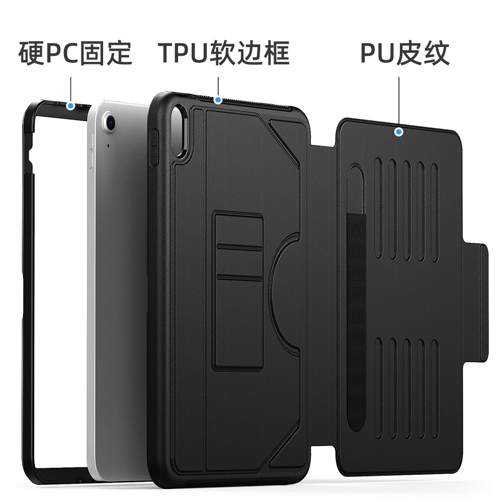 適用於ipad保護殼帶筆槽三折殼可拆硬底防摔防彎air4/5 11寸mini6商務蘋果帶繙蓋休眠ipad2022款第十代10.9寸