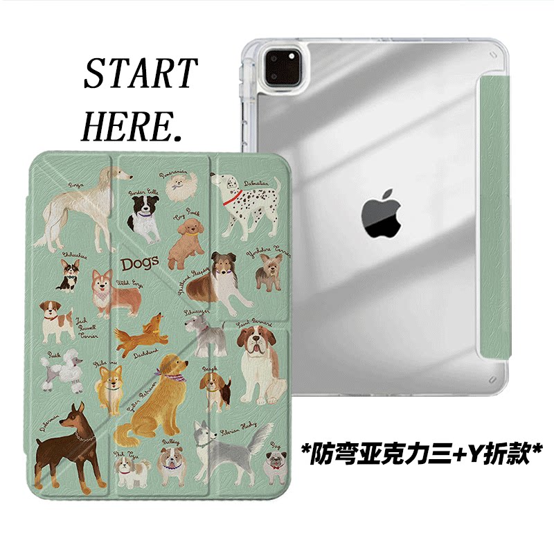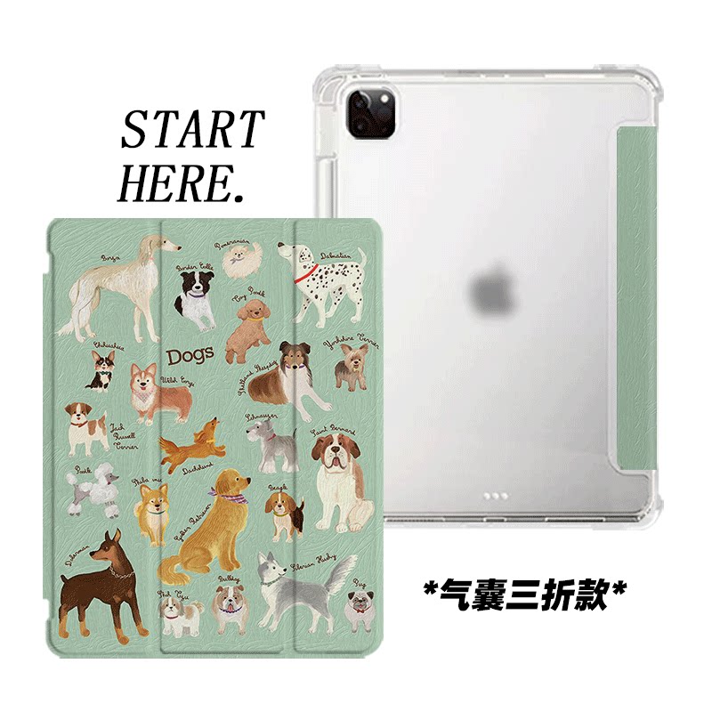 原創小衆綠復古可愛狗狗適用iPad11代2026款11寸Pro蘋果Air6Y折三折防彎保護套2021第九代亞克力mini7帶筆槽