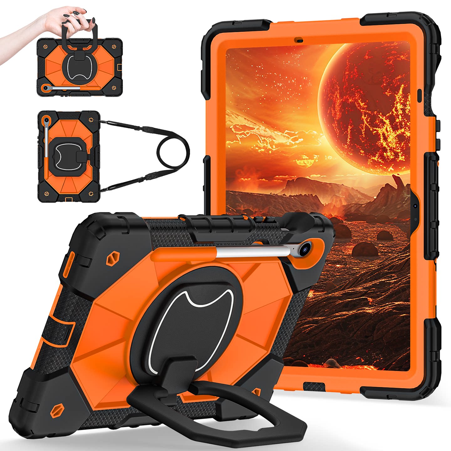 適用三星a9平板保護套taba8a9+平板電腦保護殼無磁Samsung Galaxy A7lite帶筆槽旋轉支架防摔抗彎時尚矽膠殼