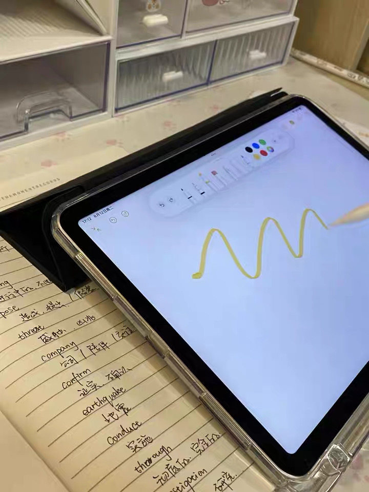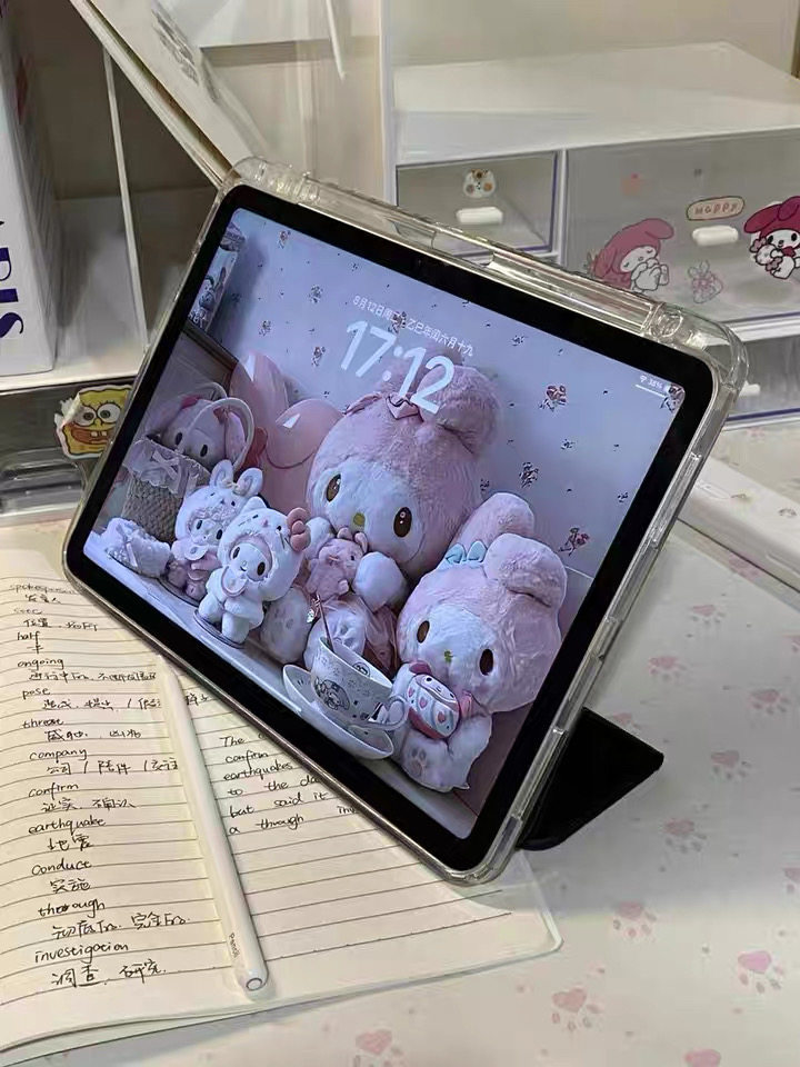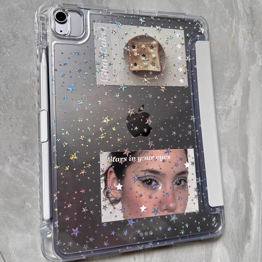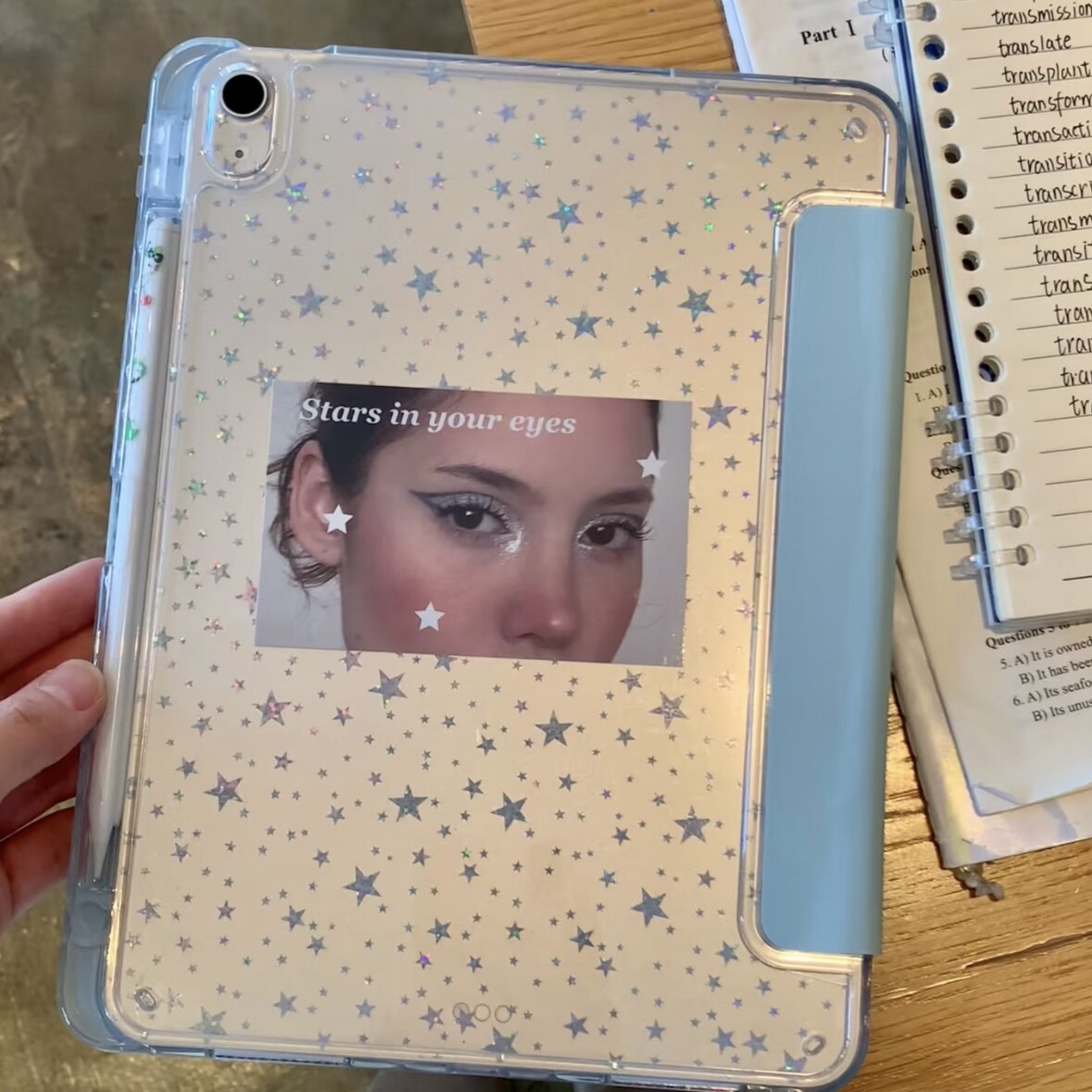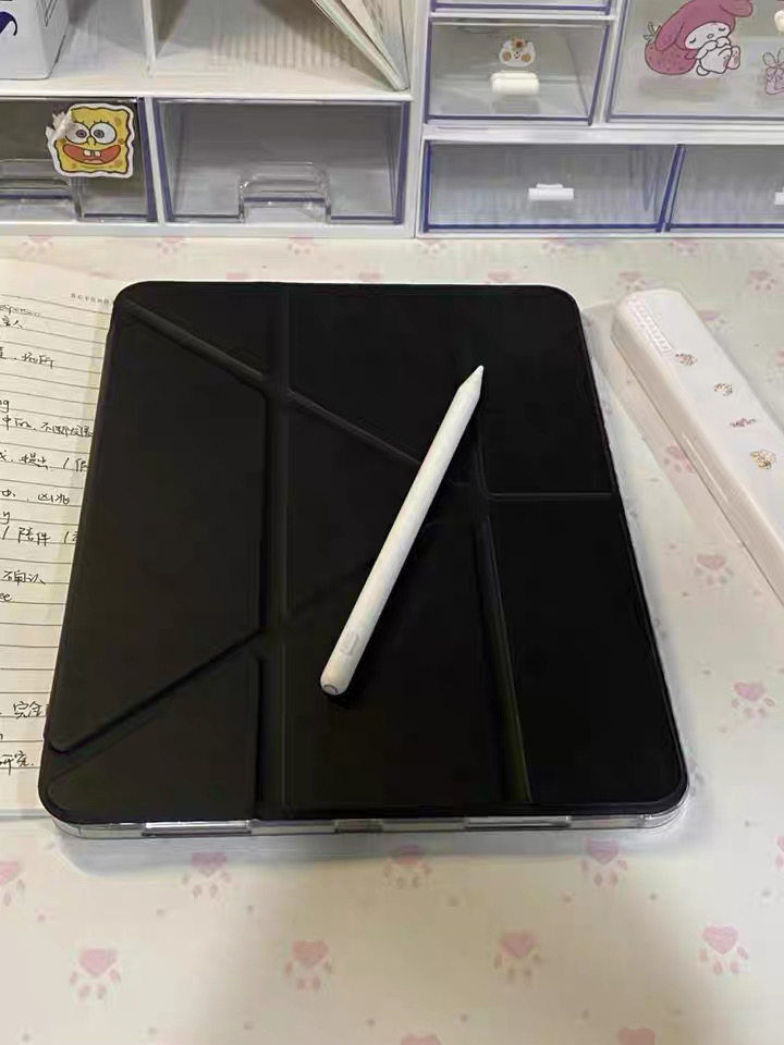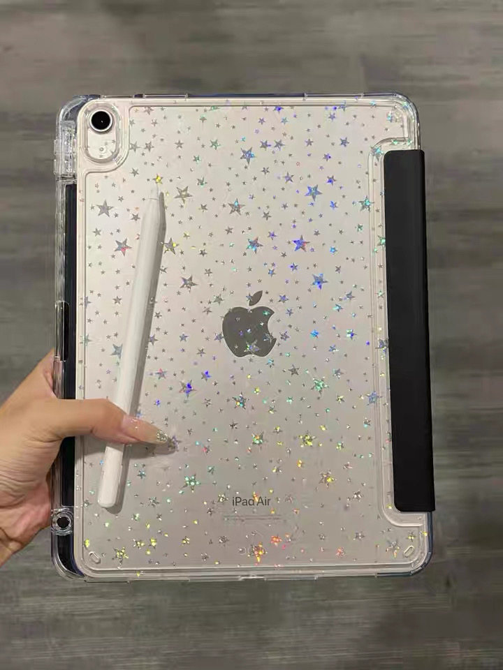 黑色星星韓系原創插畫ipad殼3+y折平板保護套防彎亞克力背板適用於ipad蘋果air4567pro11寸A16筆槽