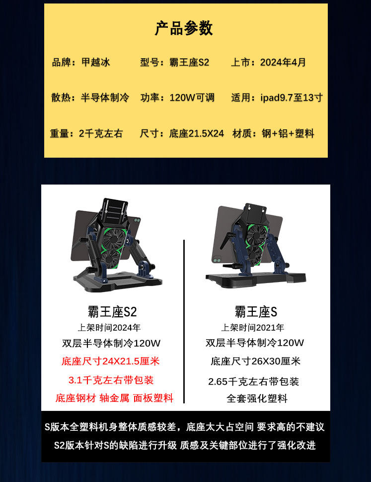 ipad平板散熱器支架一體半導體製冷降溫電競多角度支撐手搓霸王座