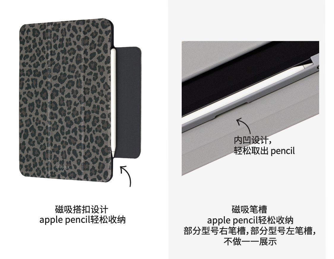 Ufology原創適用ipadair6保護殼pro2024平板mini6保護套air4/5磁吸全包air3筆槽11寸13寸蘋果7/8/9/10代豹紋