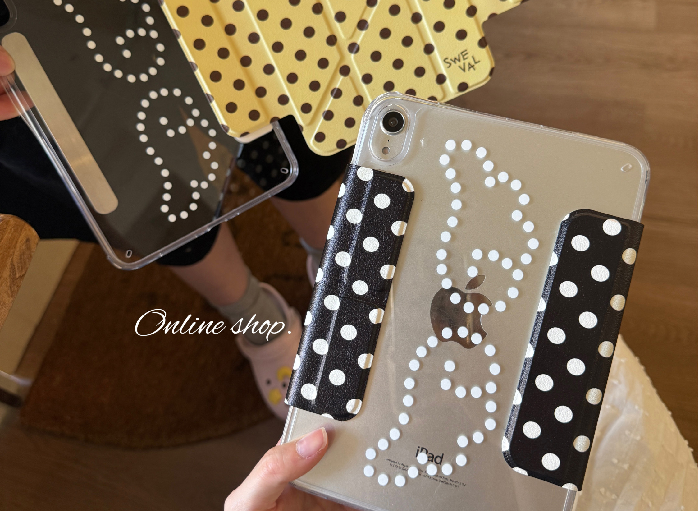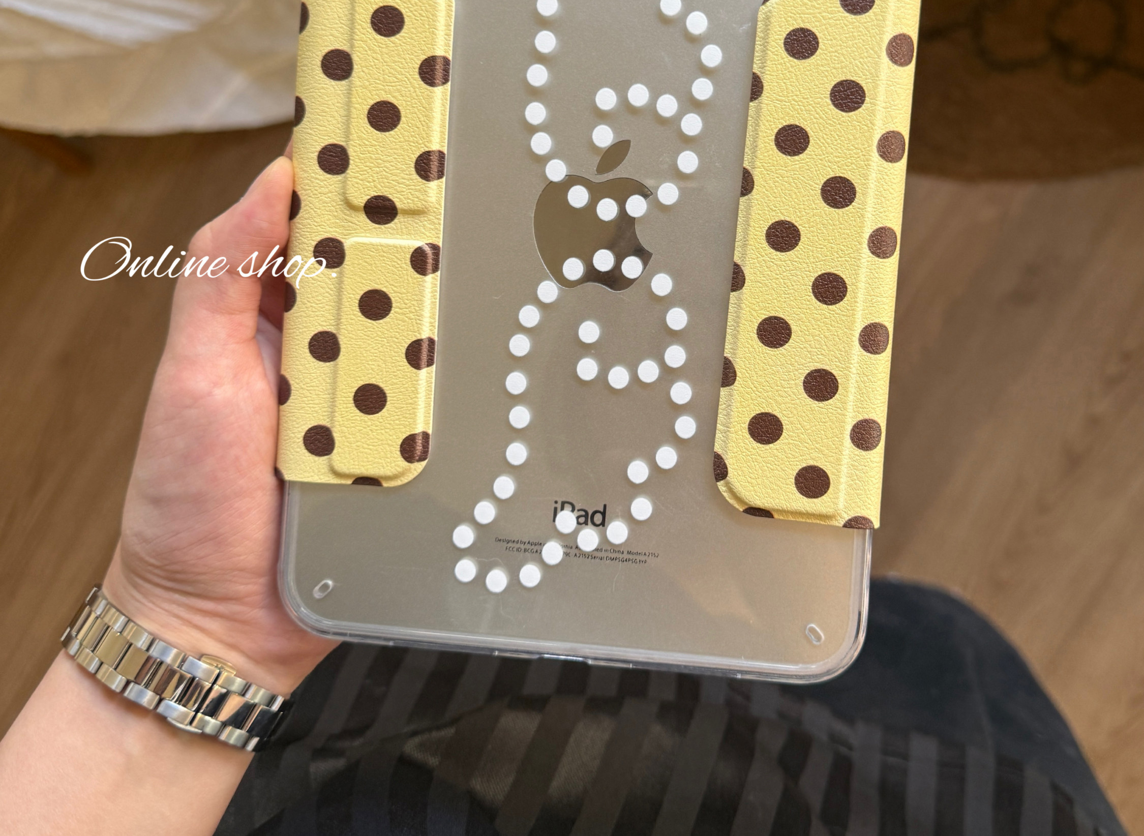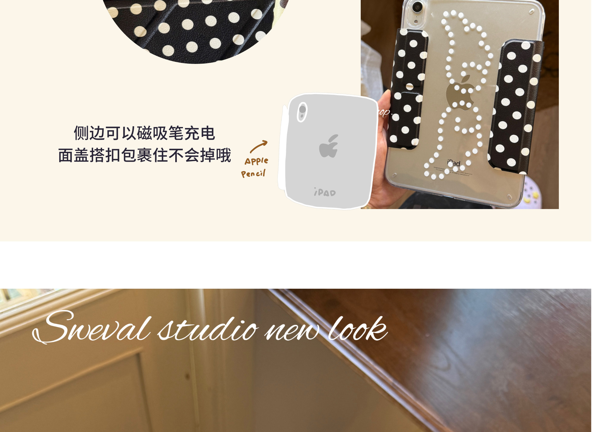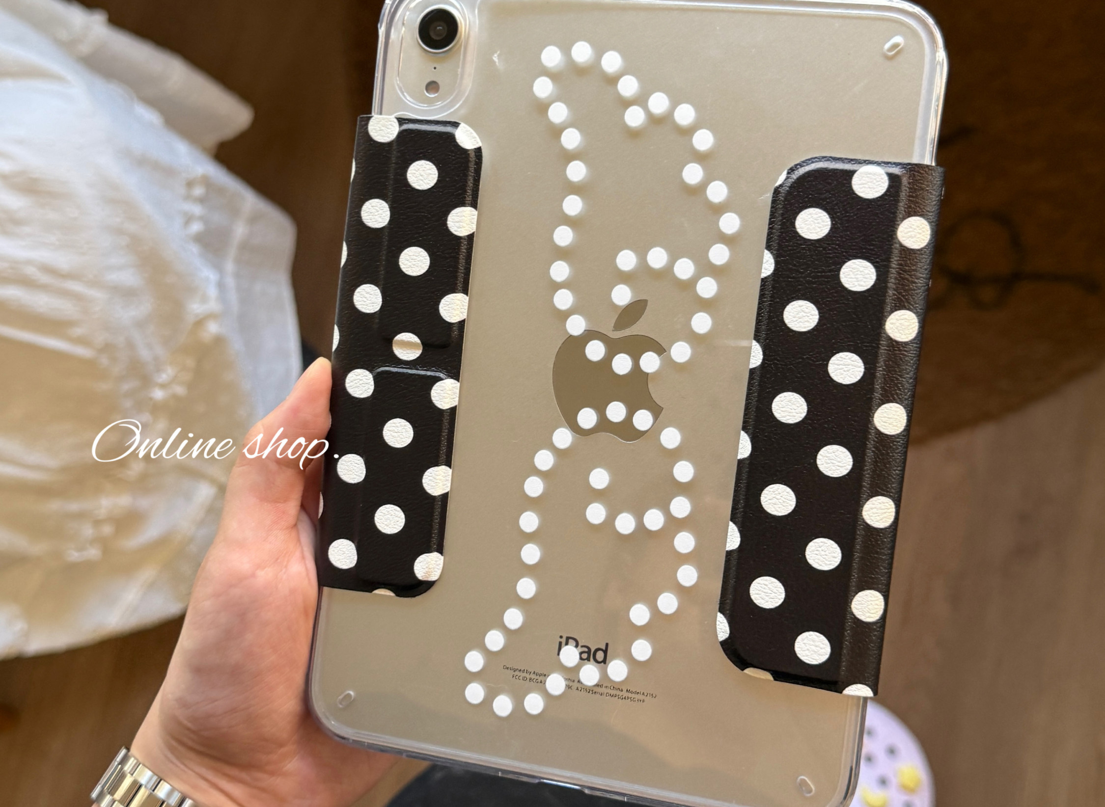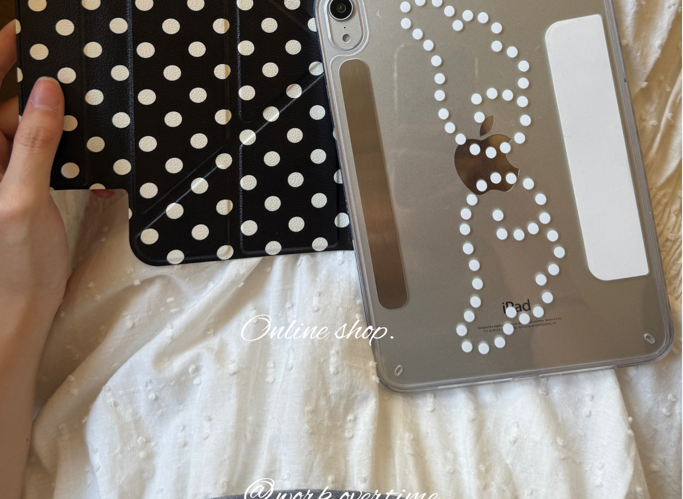 甜味山穀波點高級韓系ins風簡約荔枝紋平板保護殼防彎亞克力背板適用於ipad蘋果pro2022air456mini67星光色