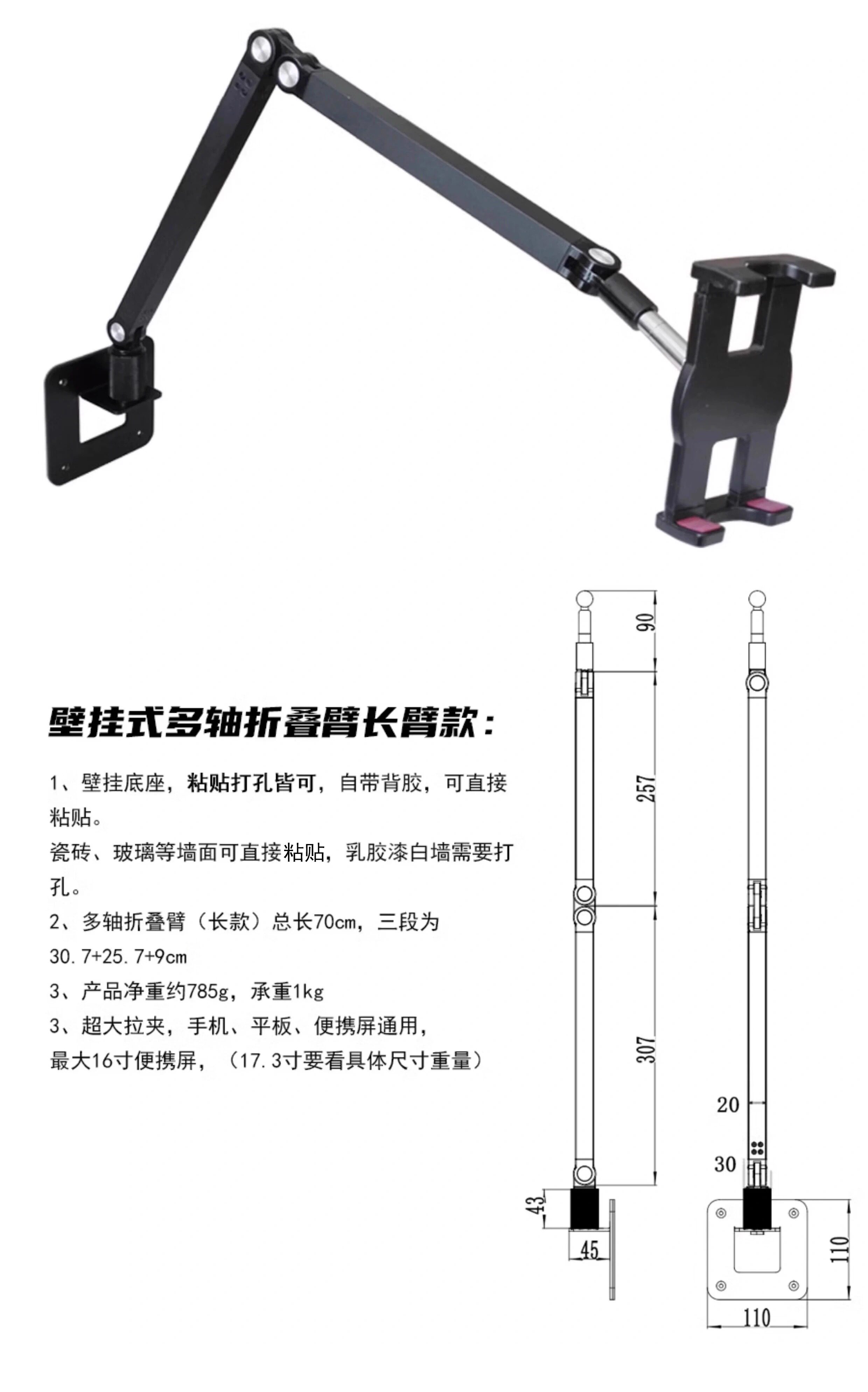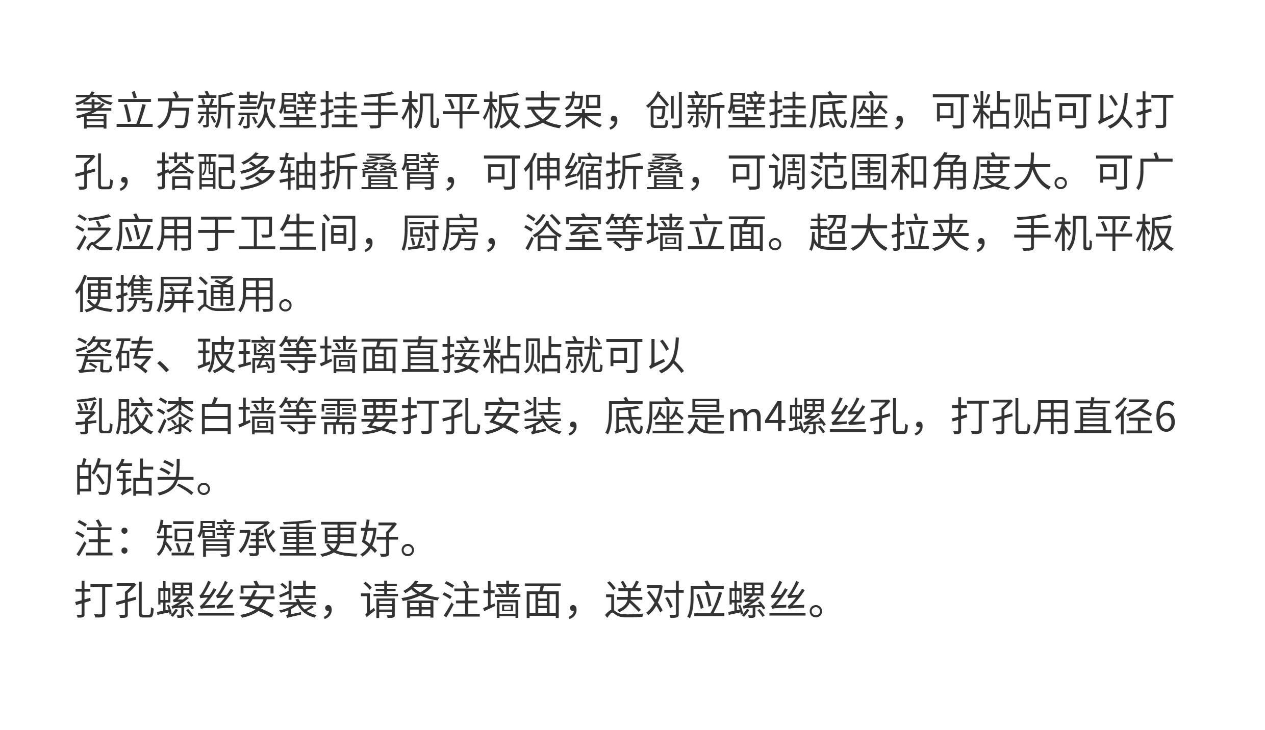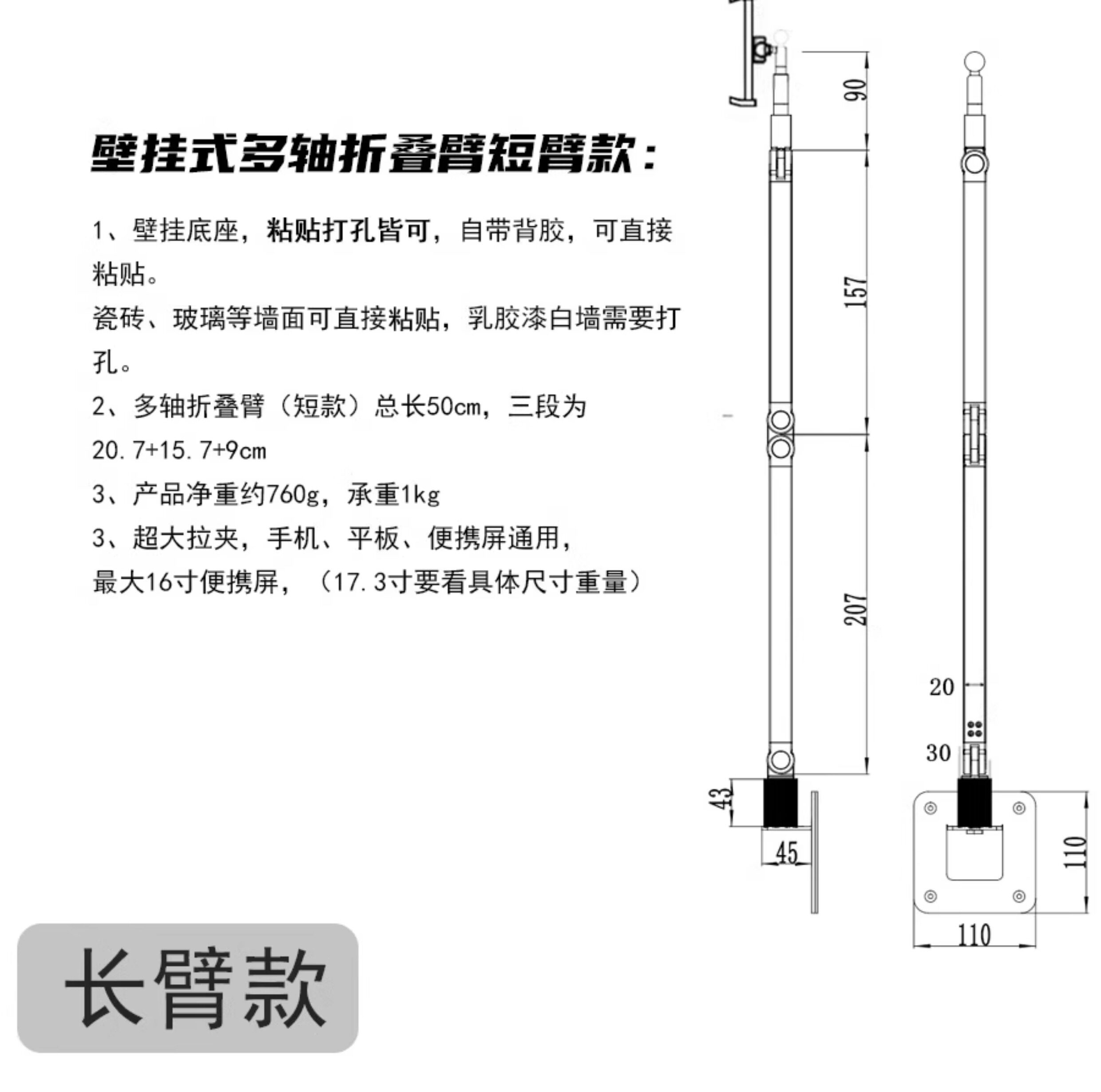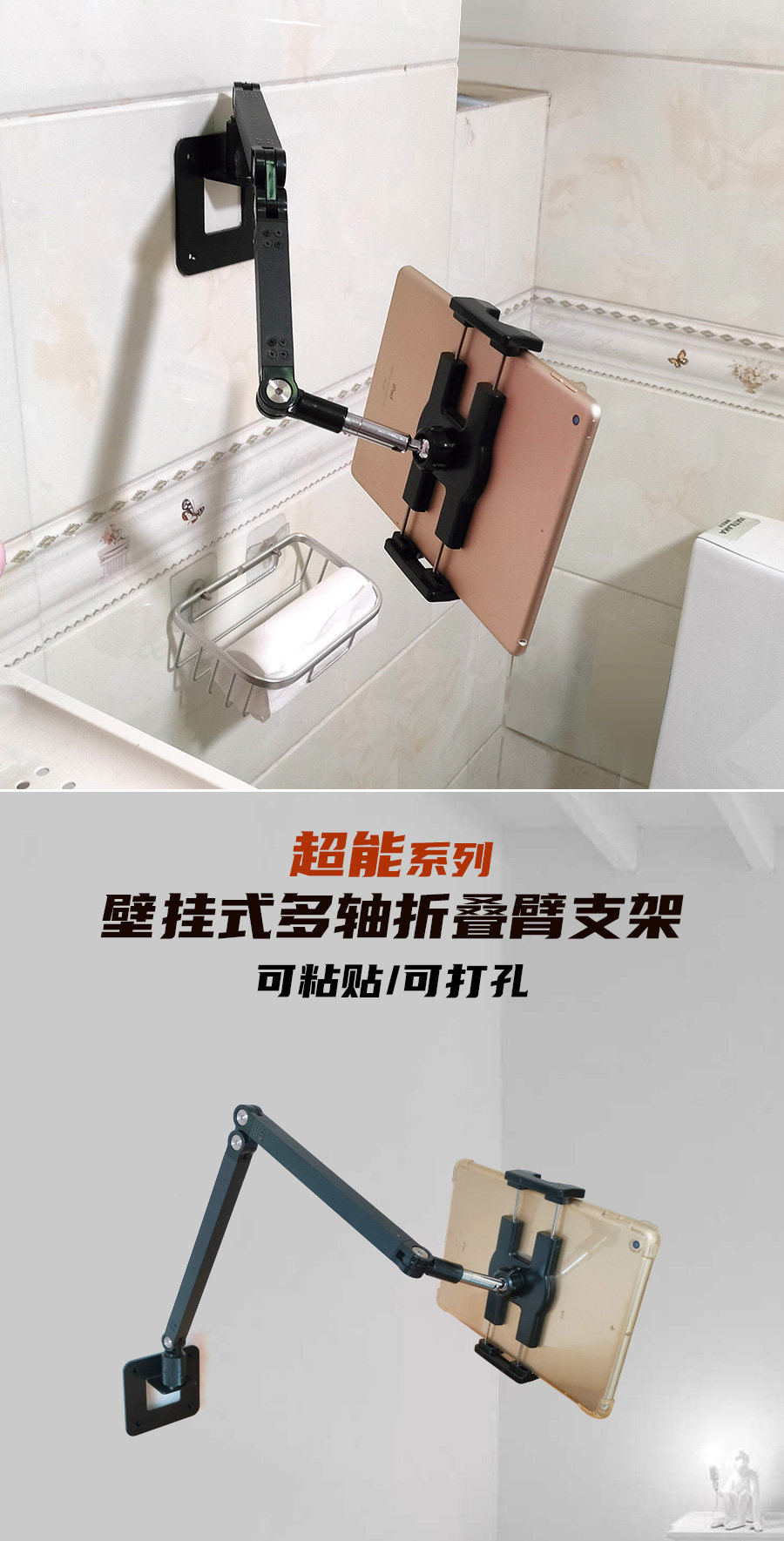 奢立方壁掛平板支架手機伸縮多軸折曡臂ipad衛生間廚房臥室可攜式屏