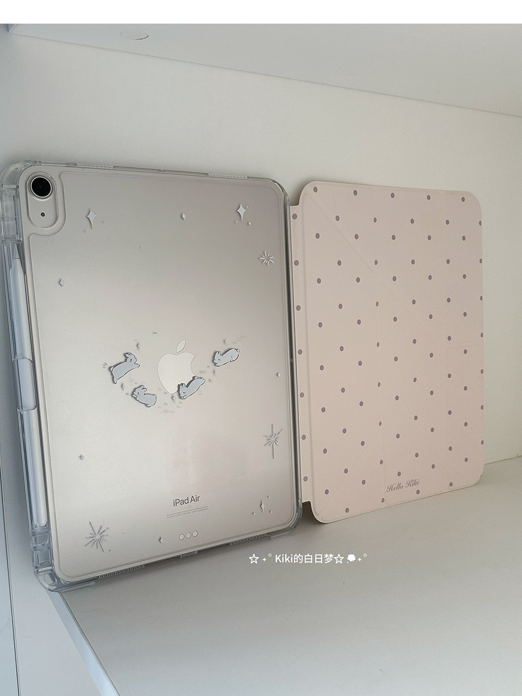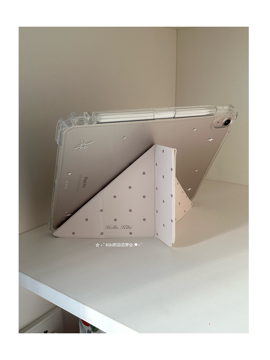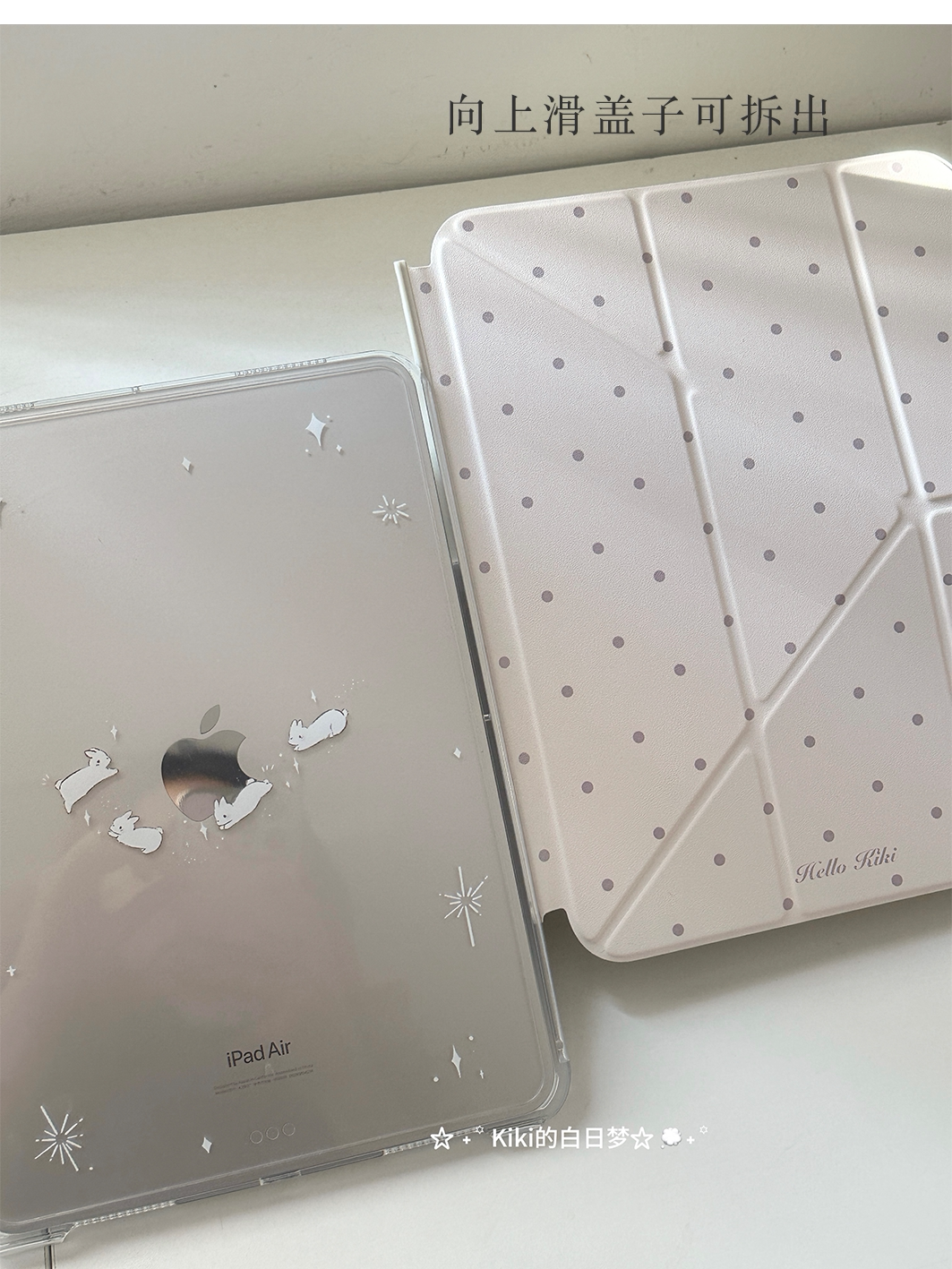 kiki原創/滑軌拆卸星星兔子波點適用於ipad保護殼平板保護套亞克力防彎硬Y折書本有筆槽air711英寸mini7筆槽