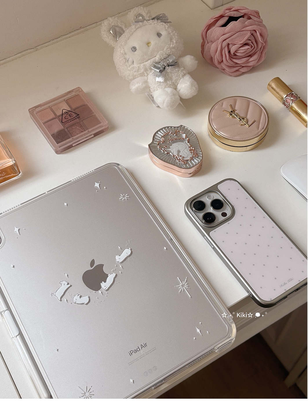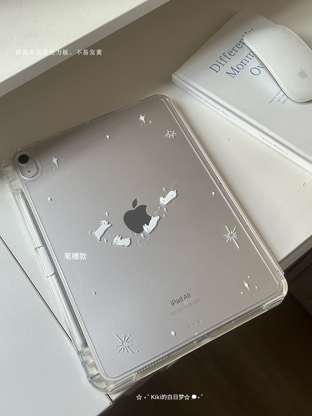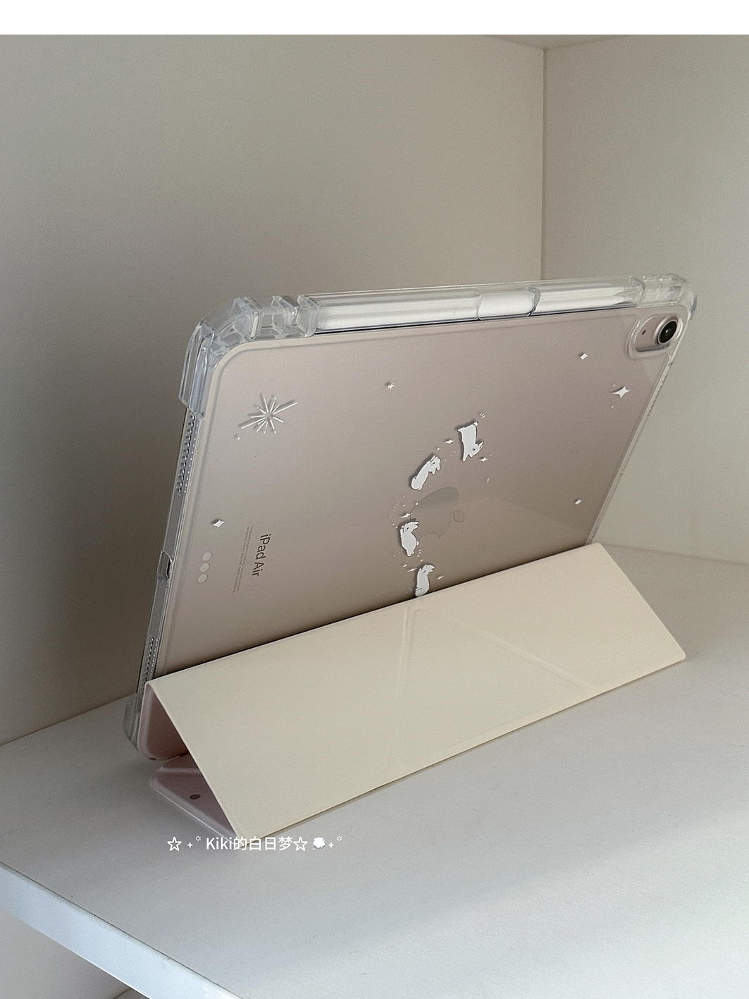 kiki原創/滑軌拆卸星星兔子波點適用於ipad保護殼平板保護套亞克力防彎硬Y折書本有筆槽air711英寸mini7筆槽