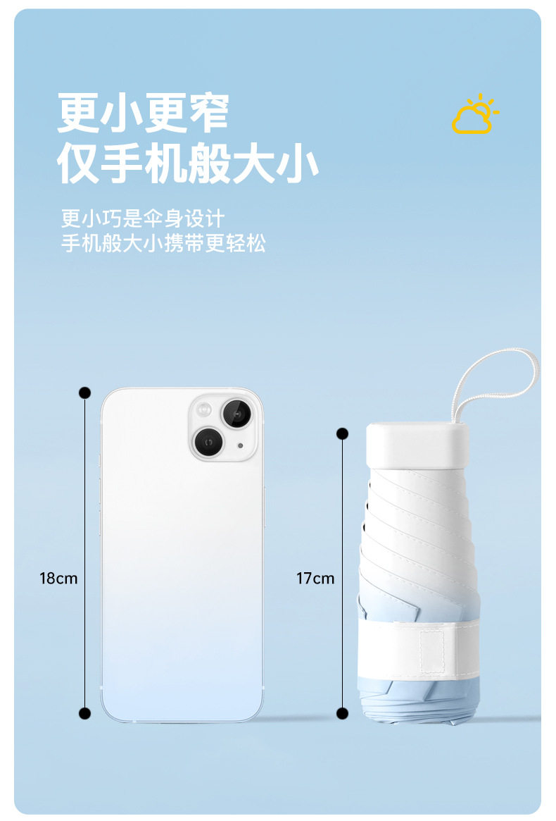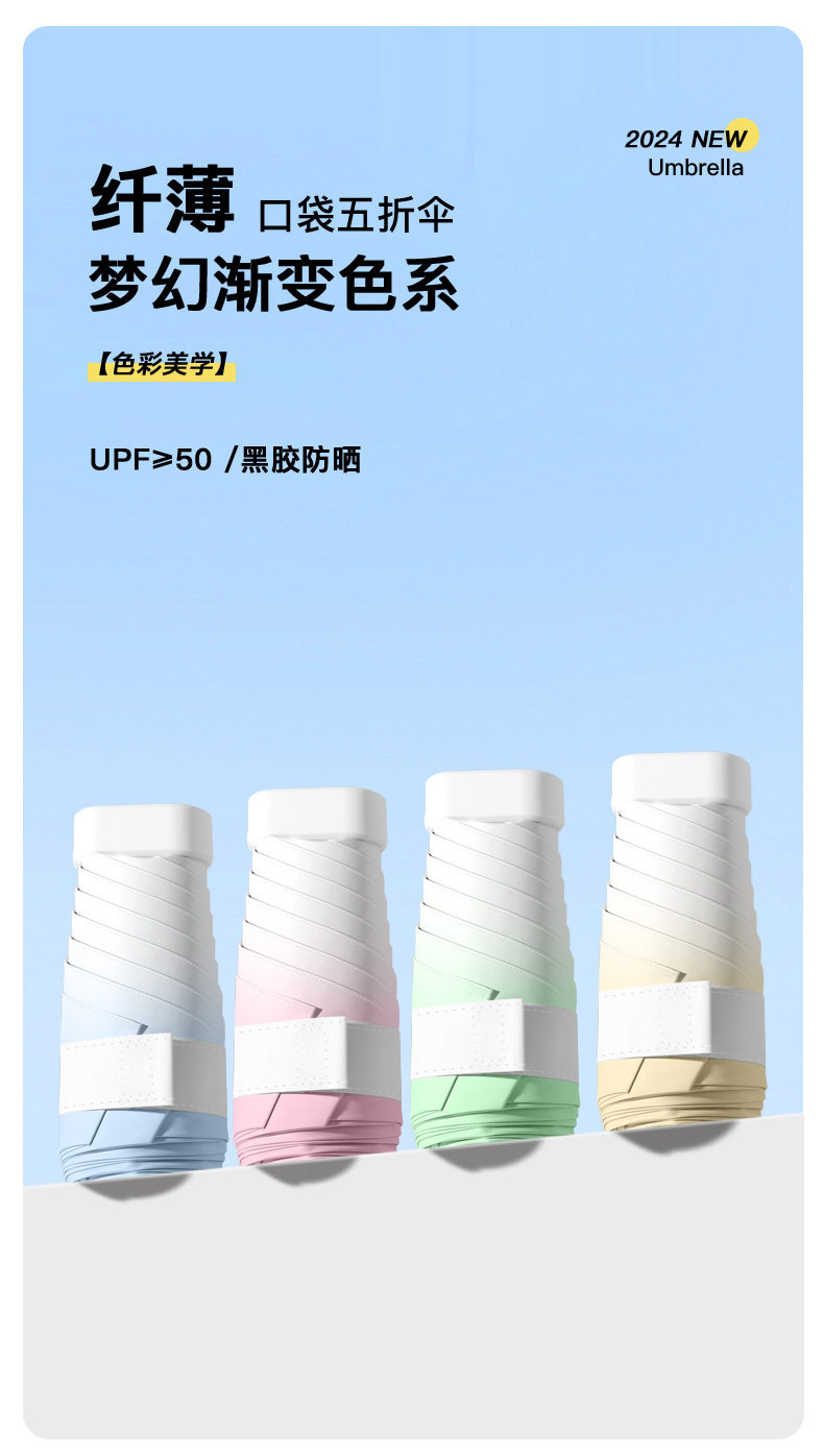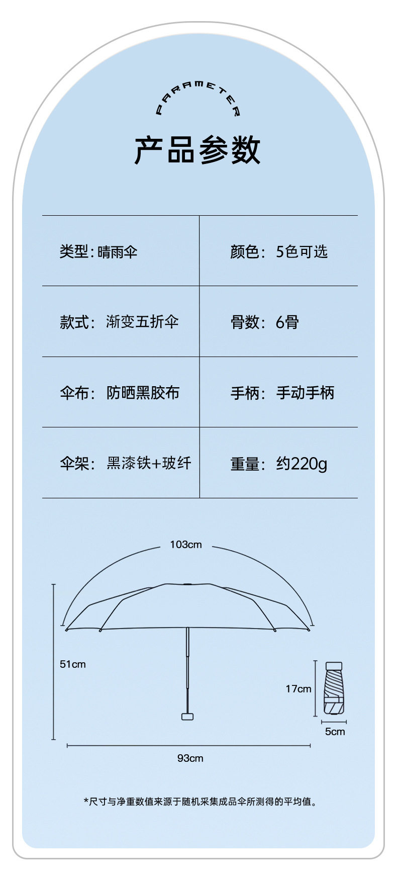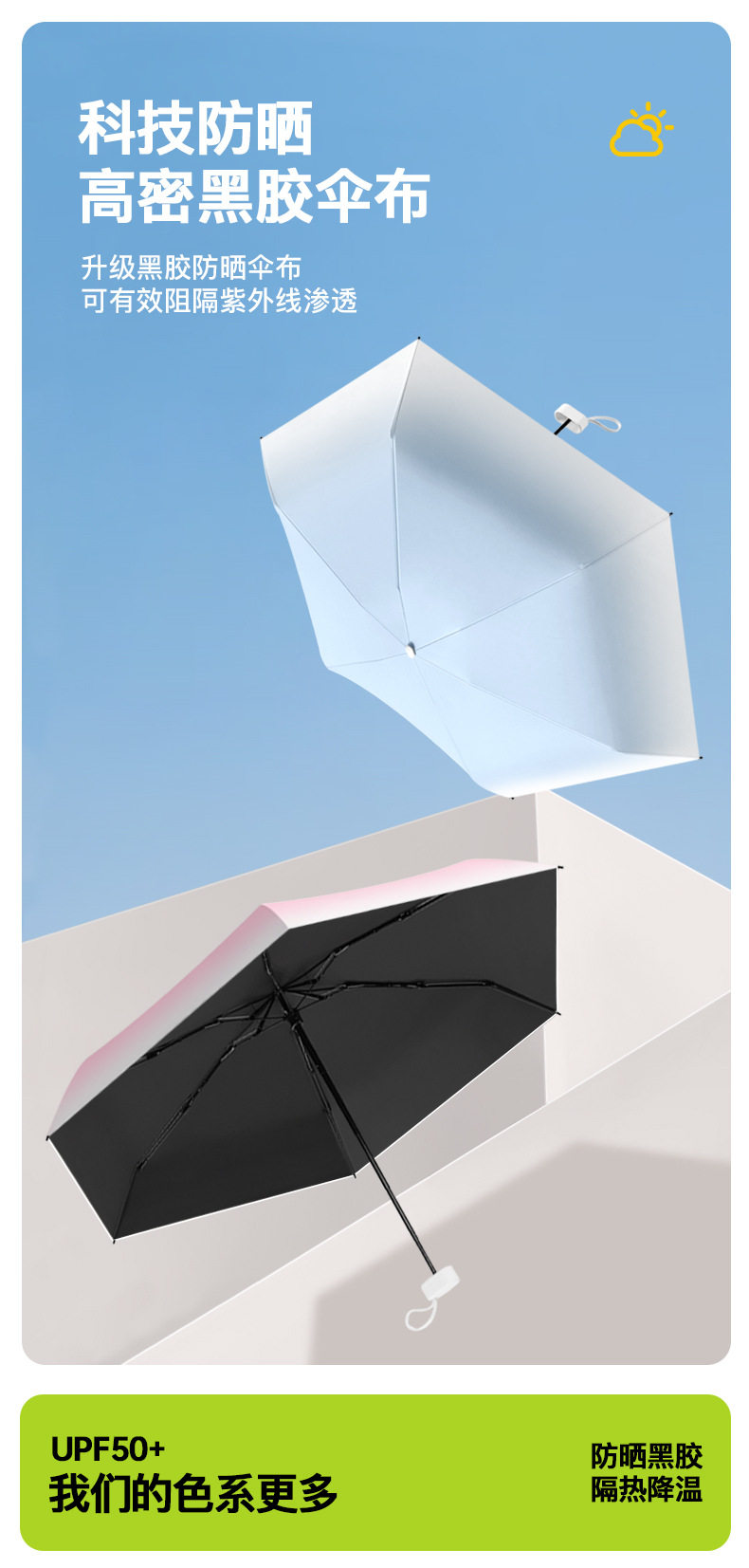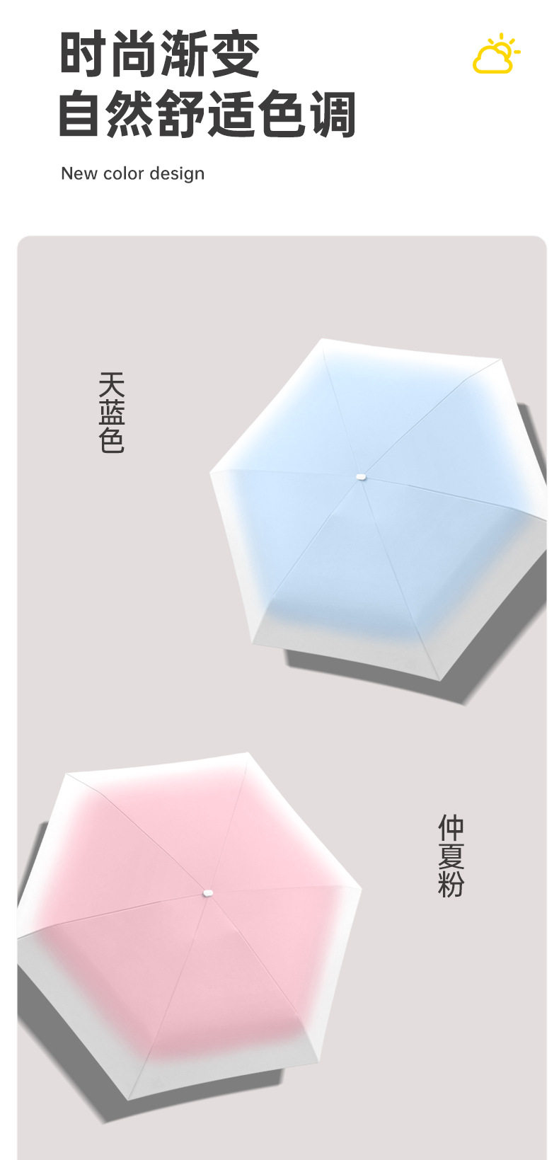 6骨超輕漸變色雨傘折疊傘加固加厚晴雨傘黑膠學生防曬防紫外線傘