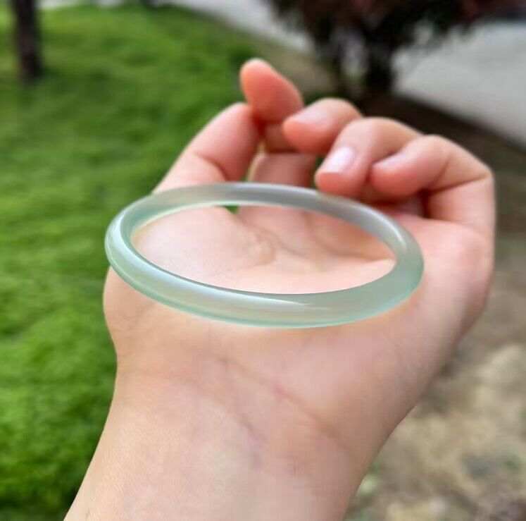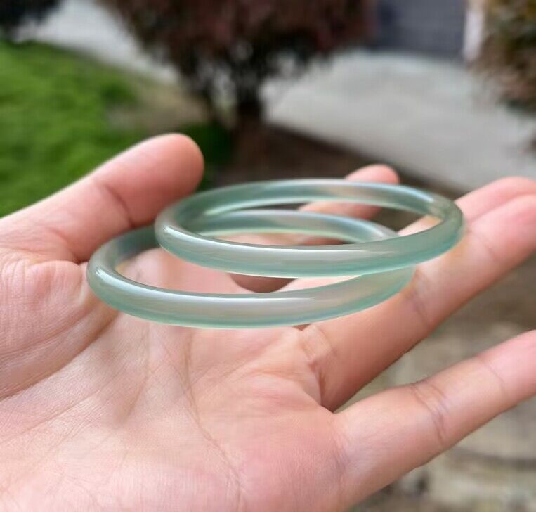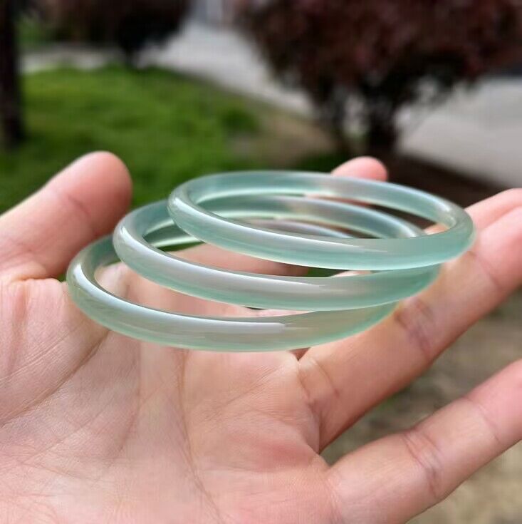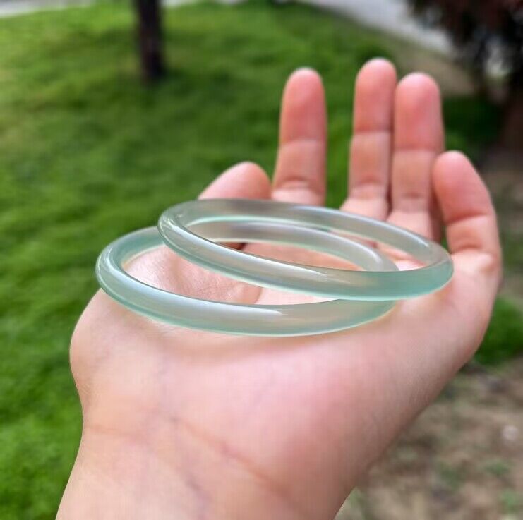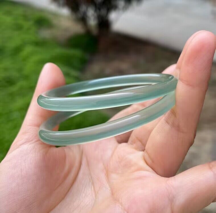 6mm淺釉青綠冰透玉髓鐲子女款細圓條美人鐲叮噹鐲瑪瑙手鐲油青色