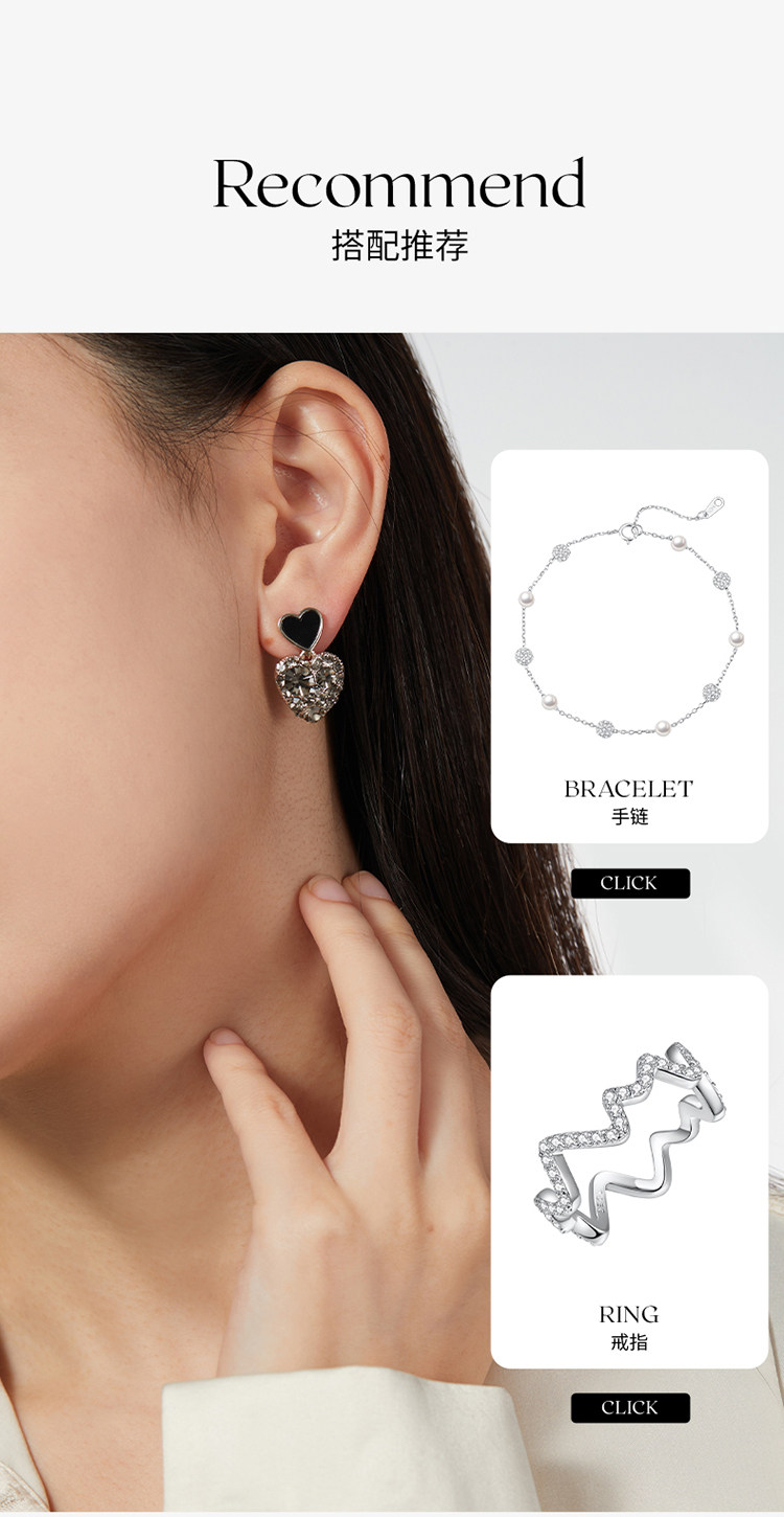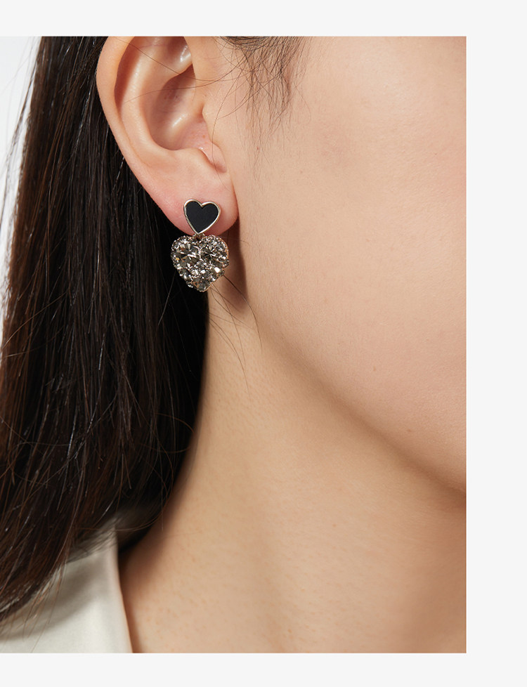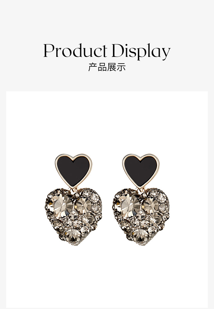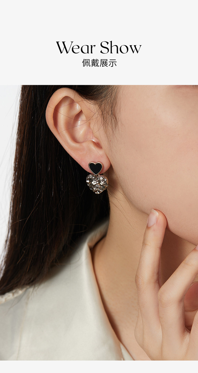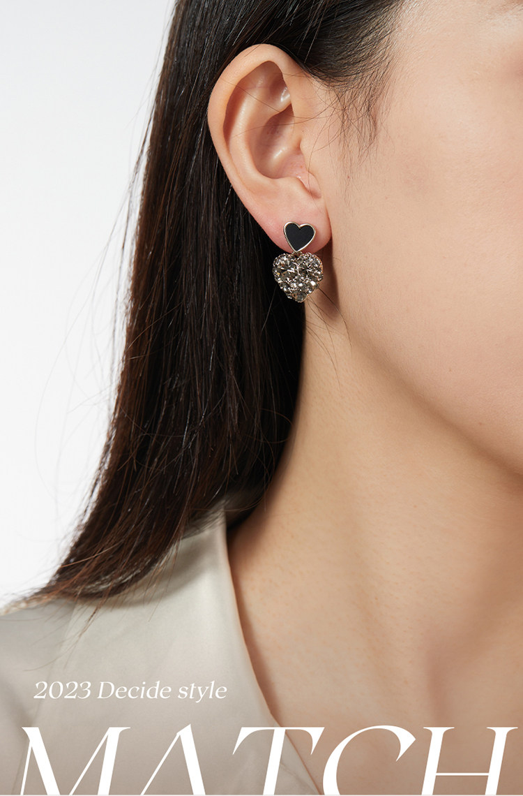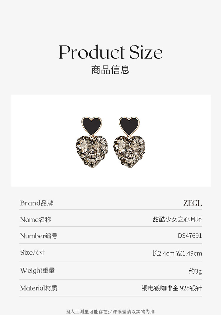 ZEGL法式黑色愛心耳環女新款爆款耳墜高級耳釘復古銀針春季耳飾