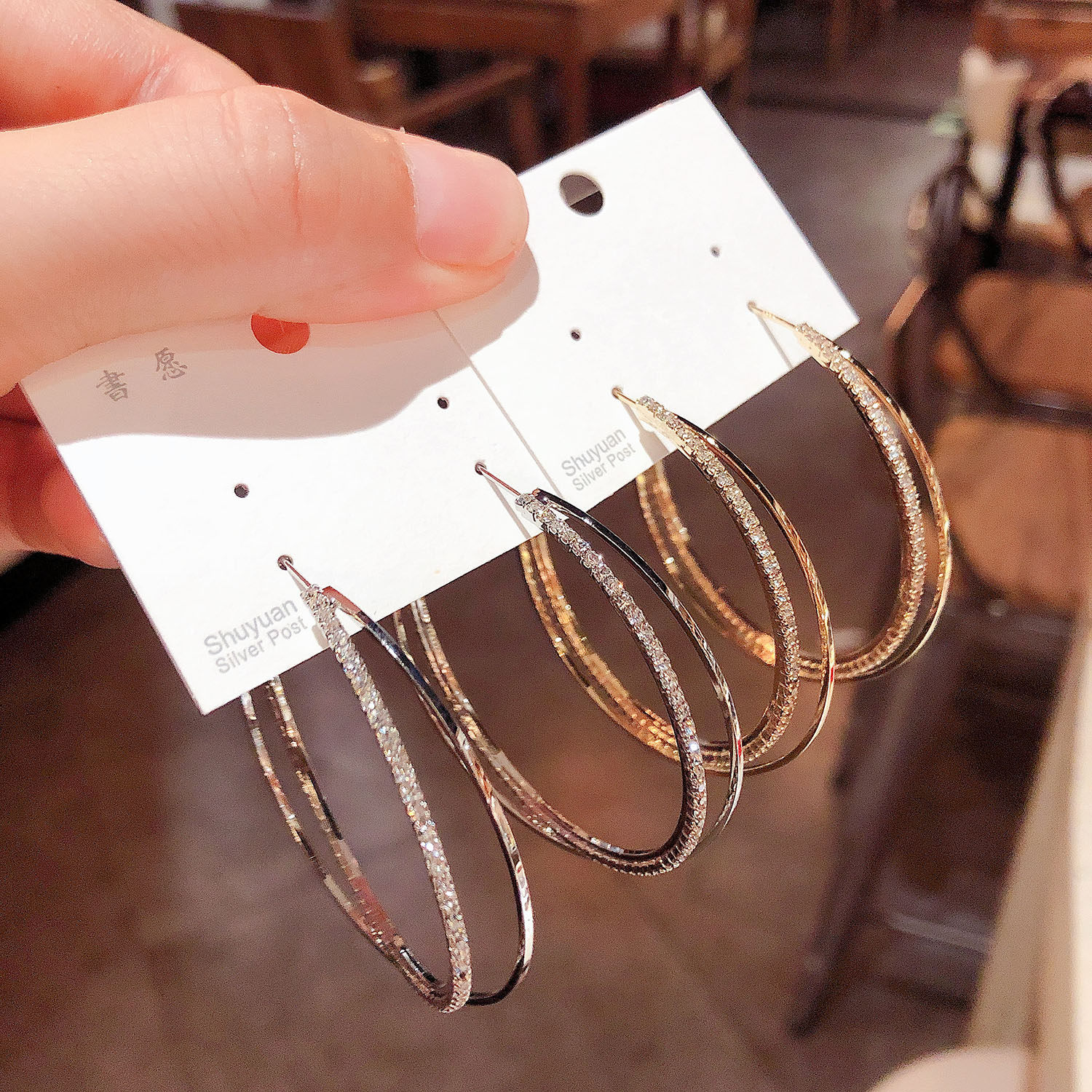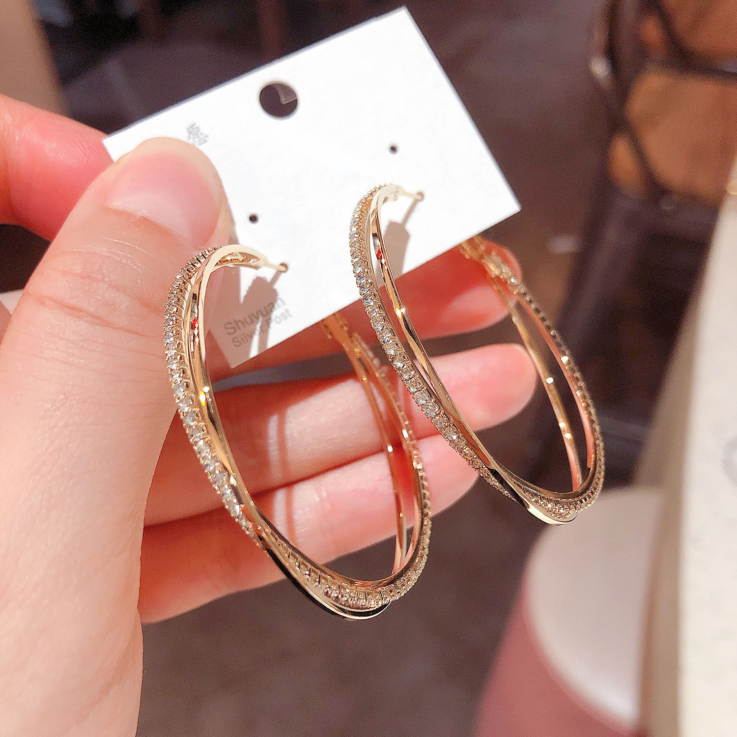 小衆高級感鋯石圈圈交叉耳圈耳環2025年新款潮網紅氣質銀針耳飾女