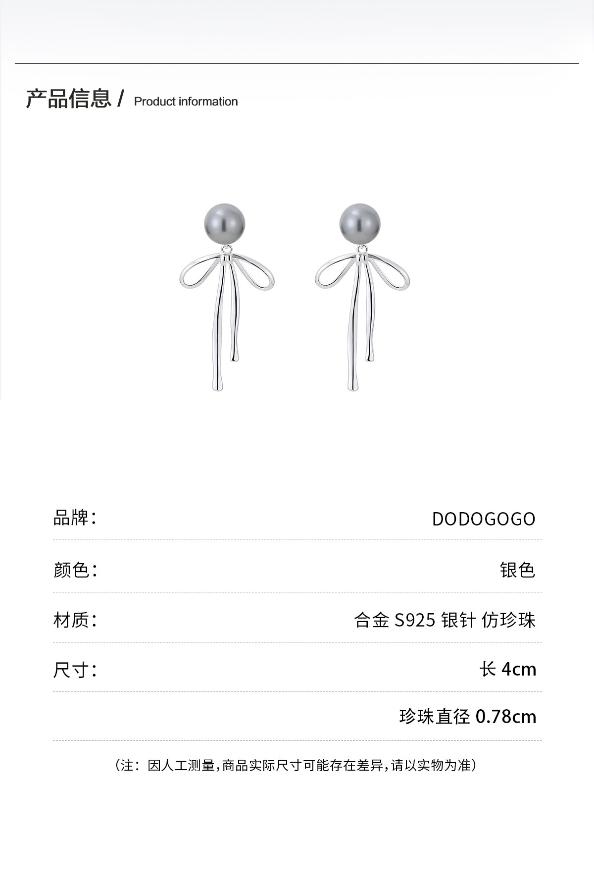 DODOGOGO蝴蝶結珍珠耳環女小香風耳釘高級感2026新款耳飾顯瘦耳墜