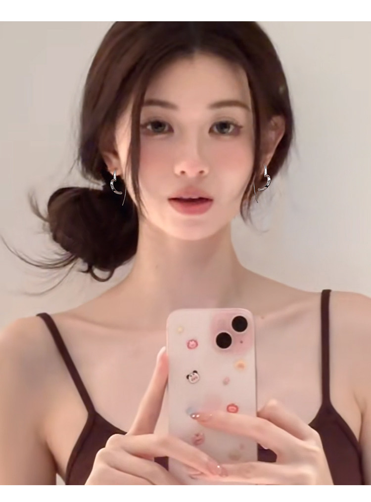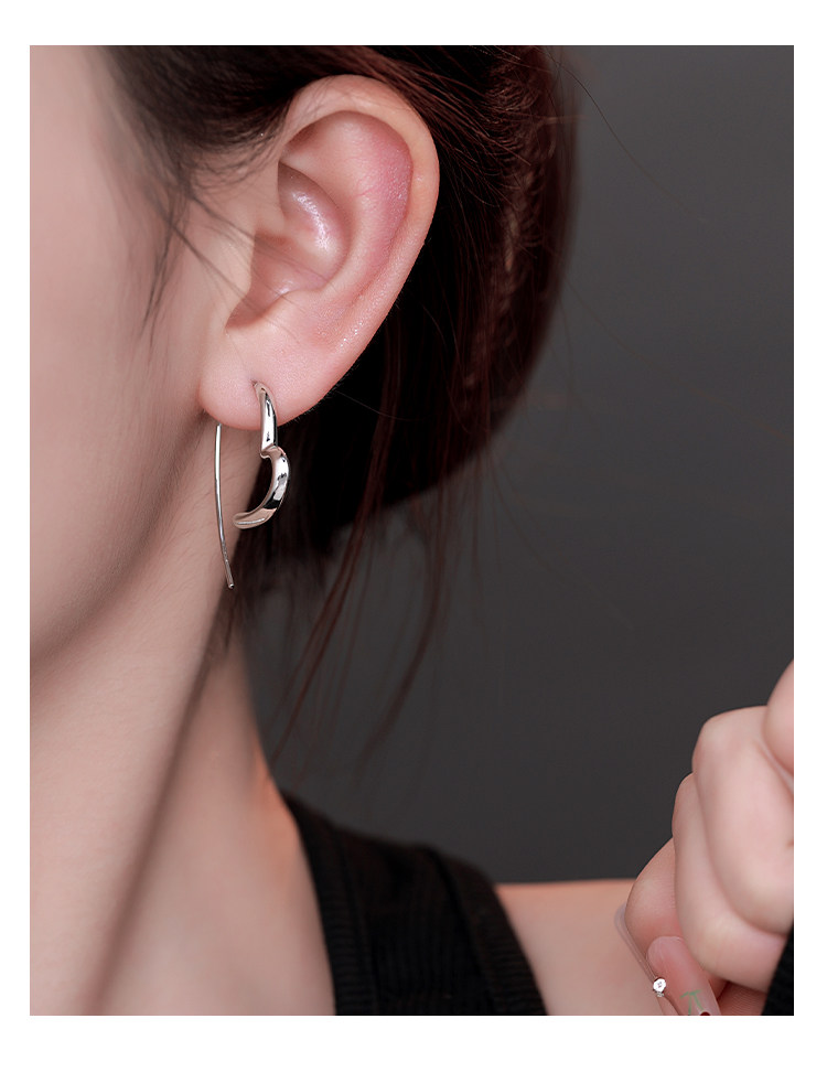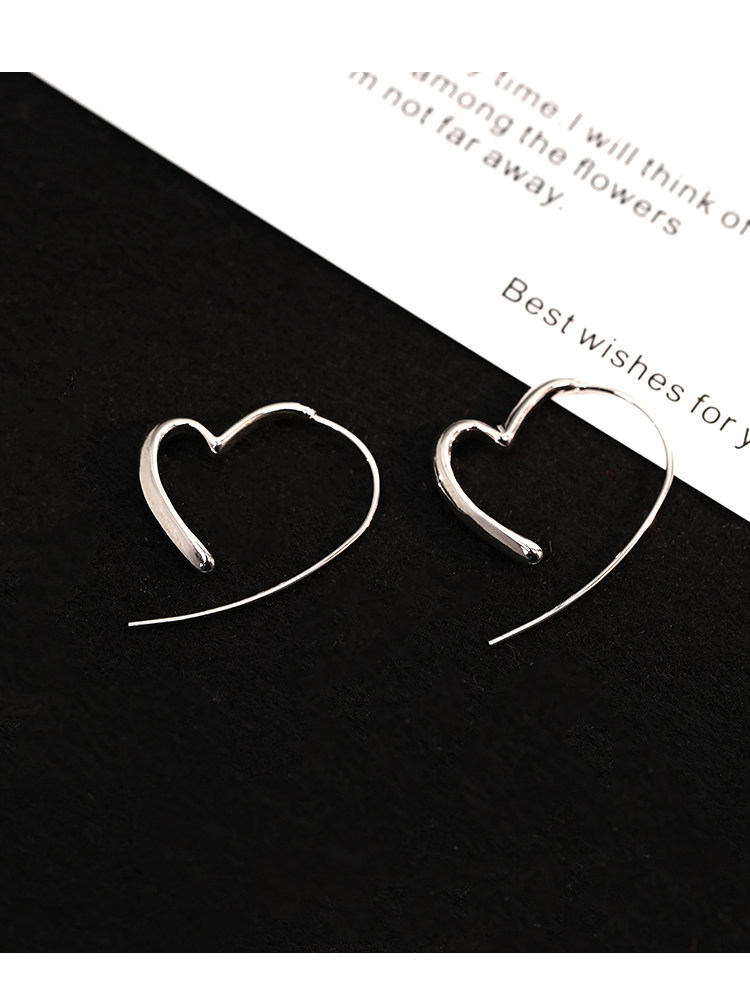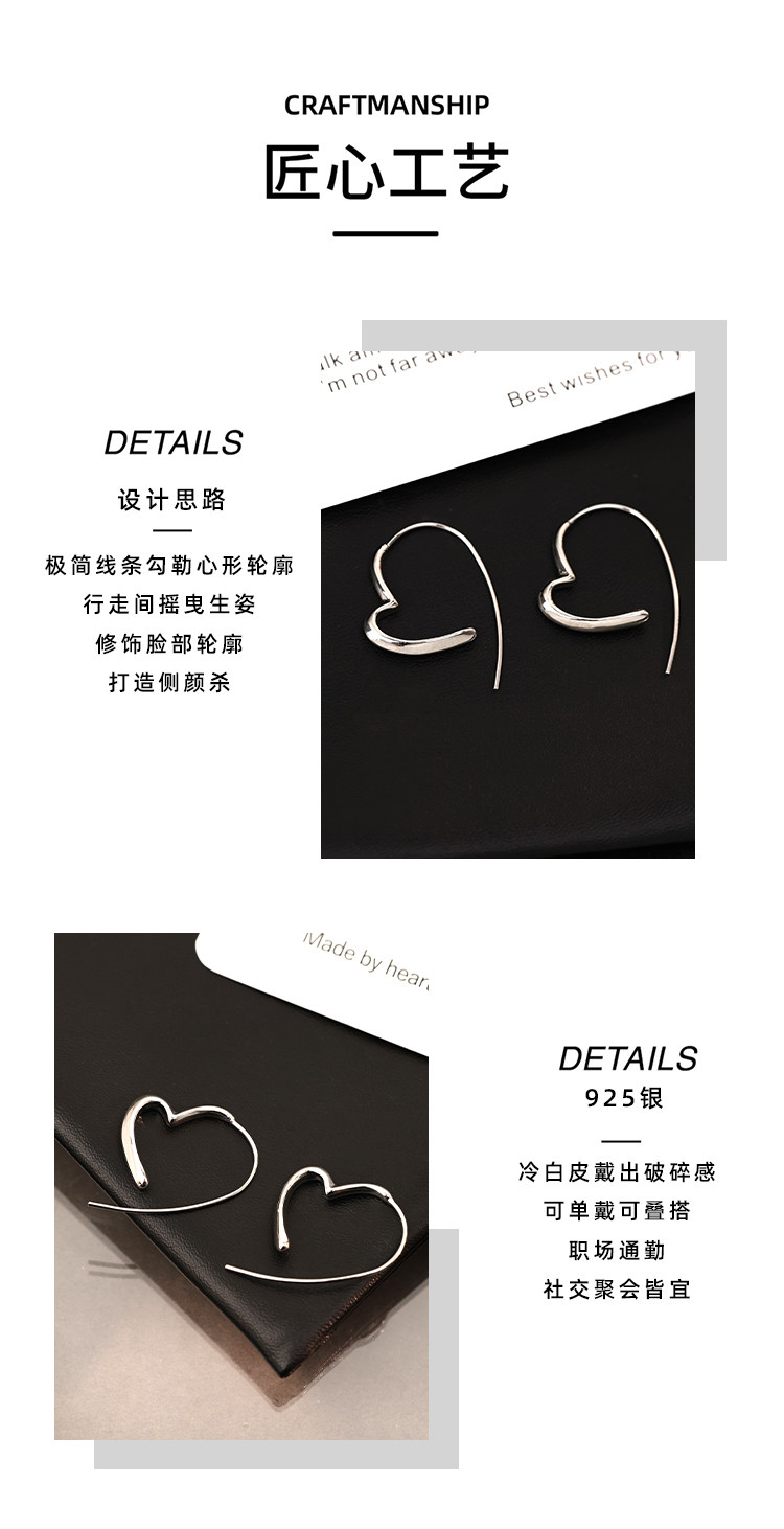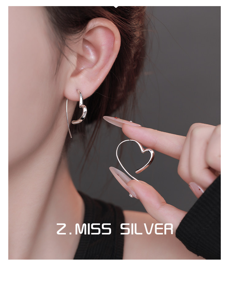 Z小姐 925銀簡約線條愛心耳環女時尚百搭氣質高級感耳飾2025爆款