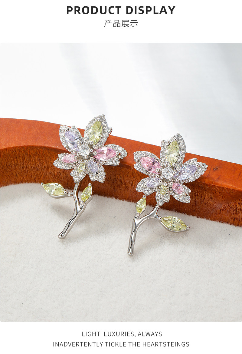 楠楠莫奈花園輕奢重工花朵耳釘女時尚閃耀高級感輕奢甜美氣質耳飾
