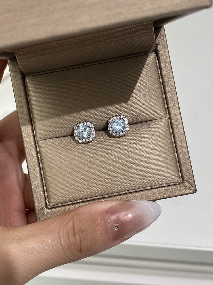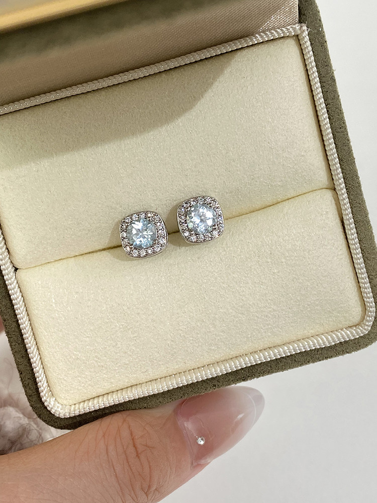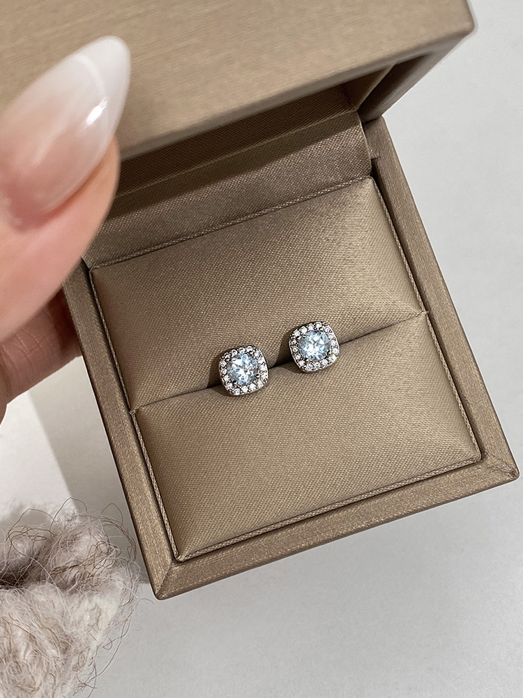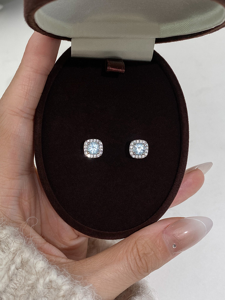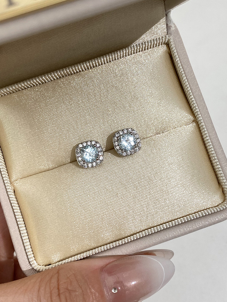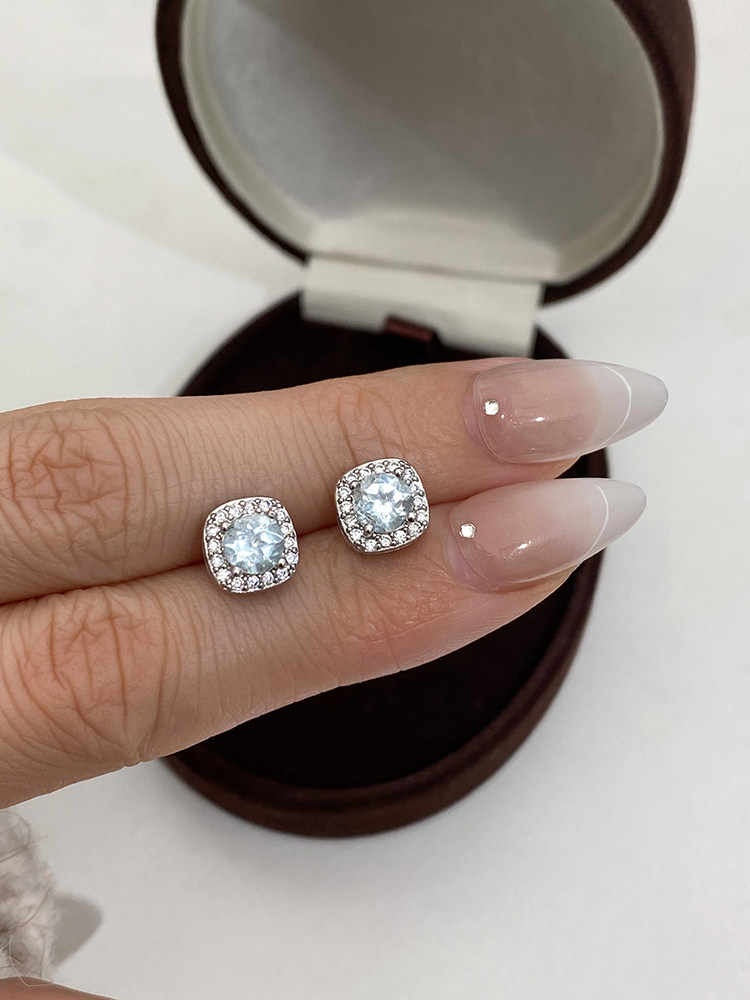 DOUDOU STORE 925銀針托帕石淺藍色春夏簡約精緻耳釘女方鑽高級感