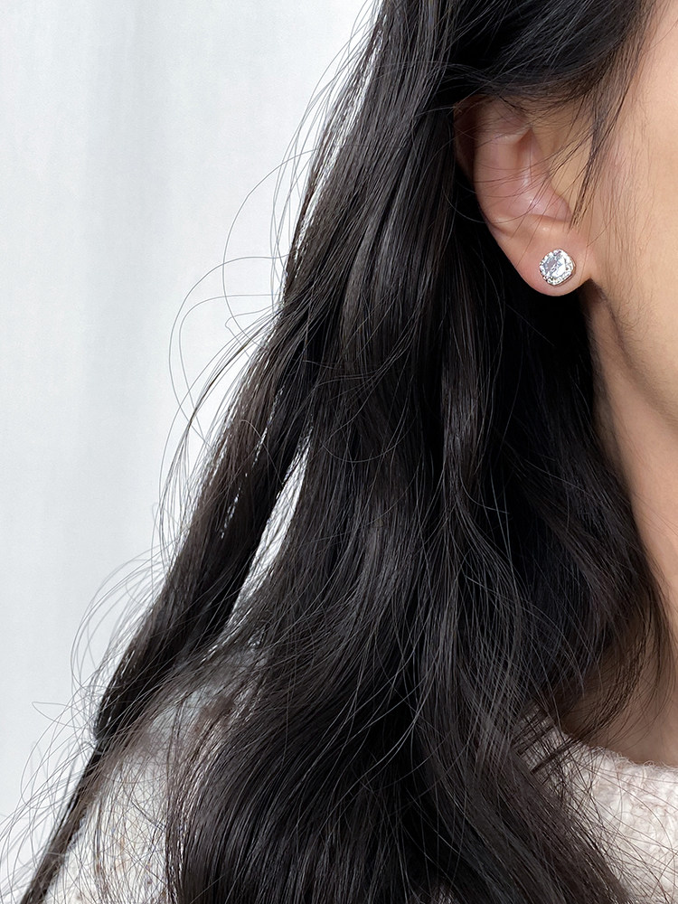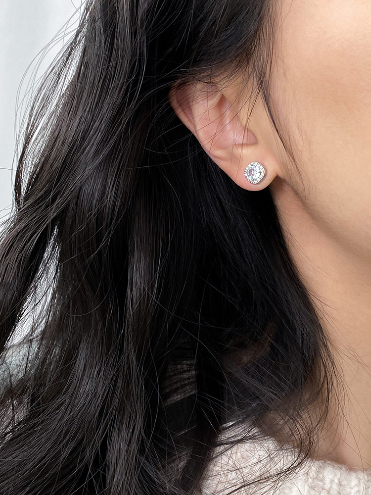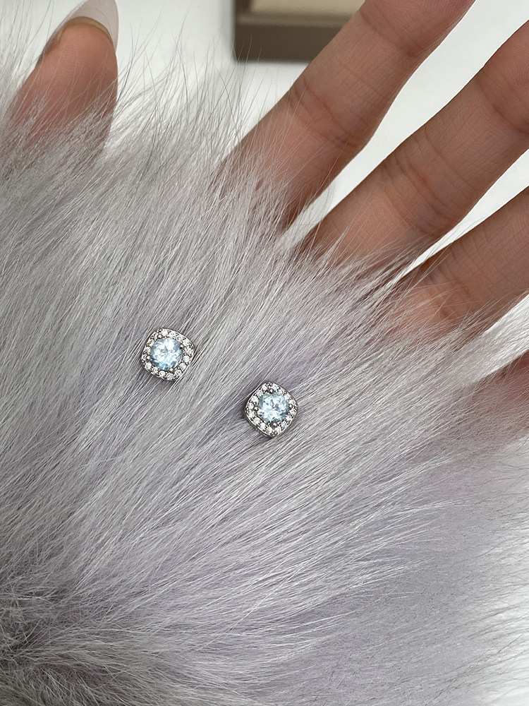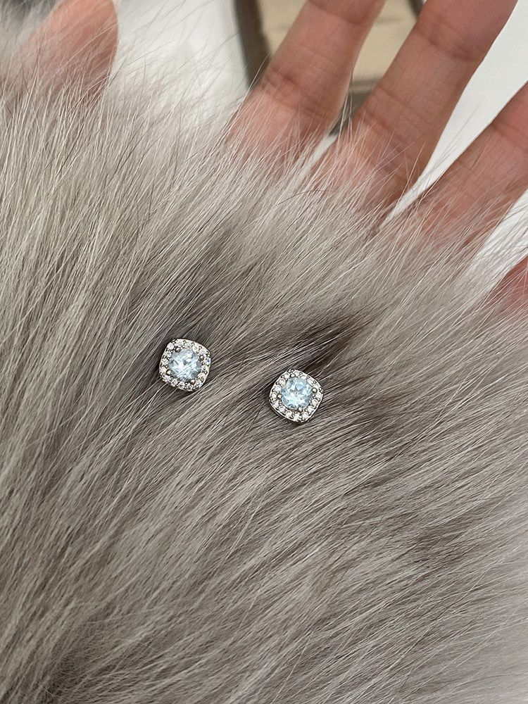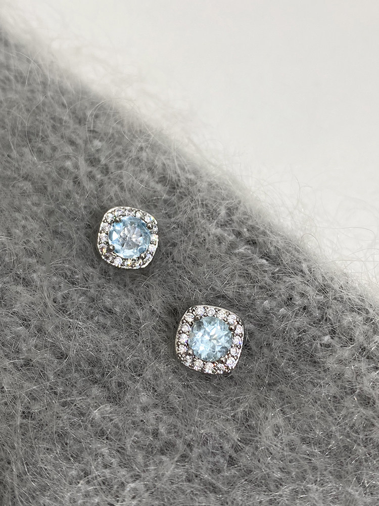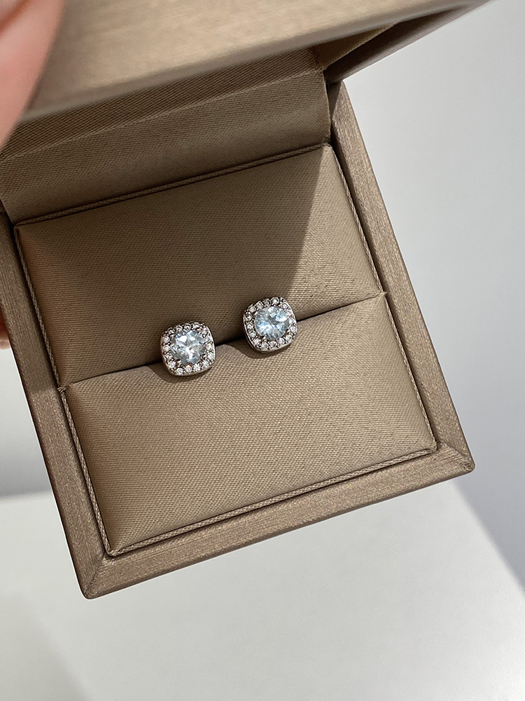 DOUDOU STORE 925銀針托帕石淺藍色春夏簡約精緻耳釘女方鑽高級感