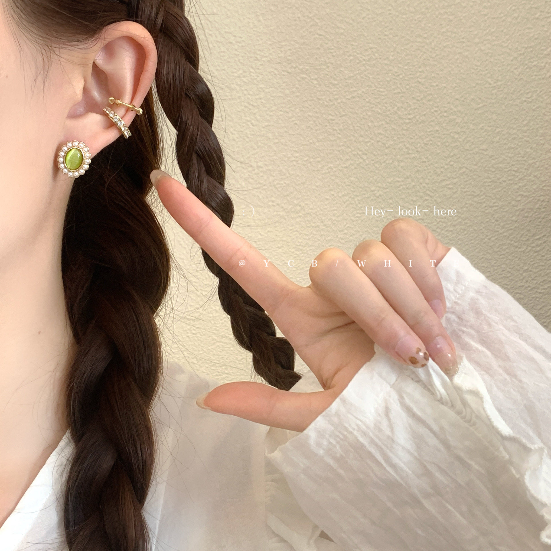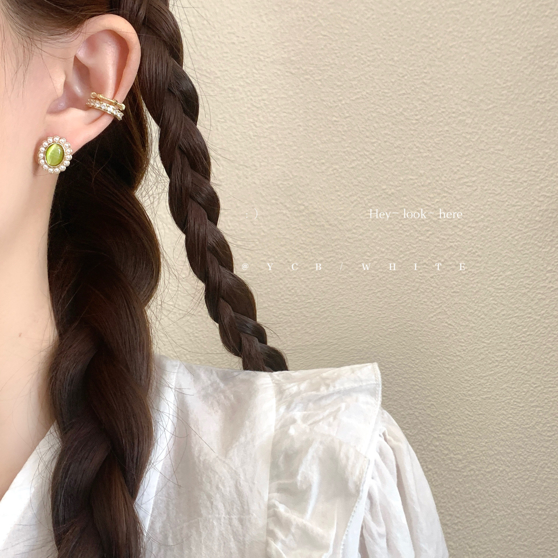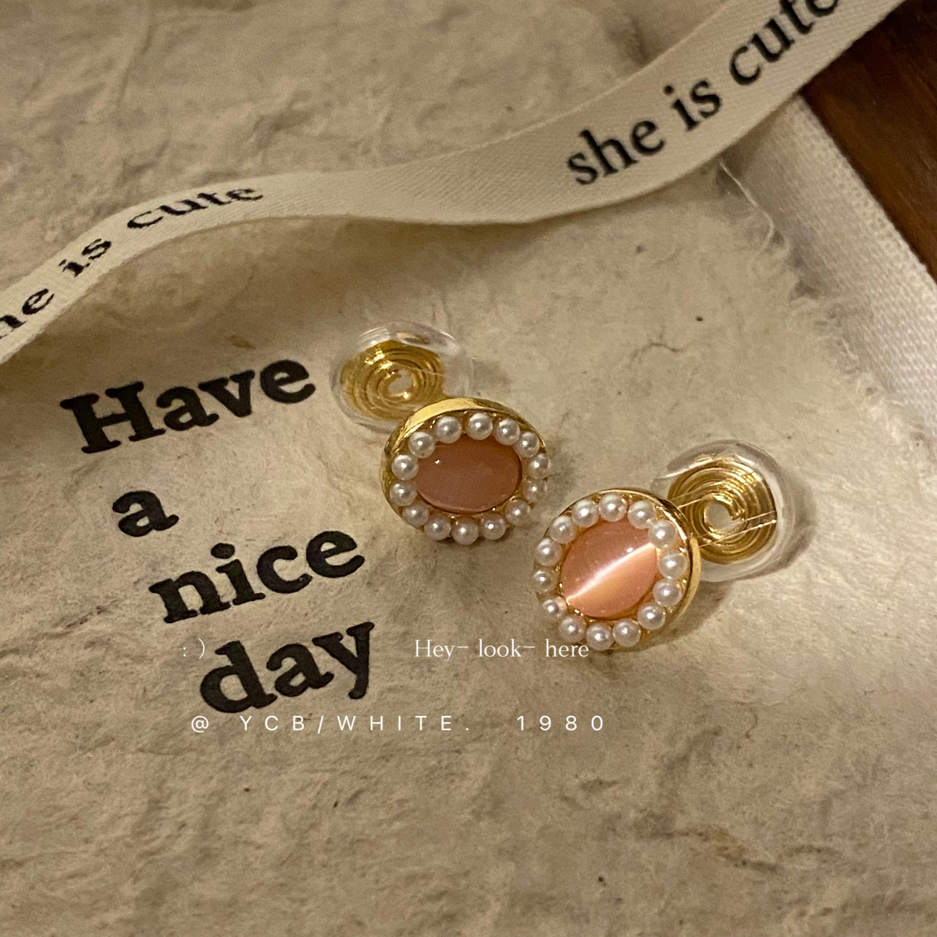「初戀粉色系」簡約百搭小巧貓眼珍珠耳釘小衆設計感氣質日常耳夾