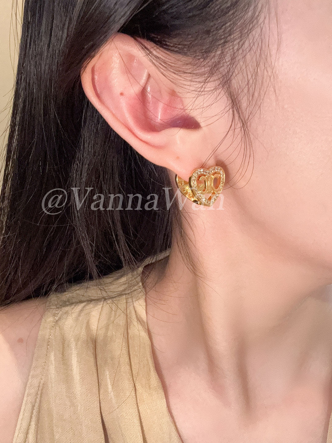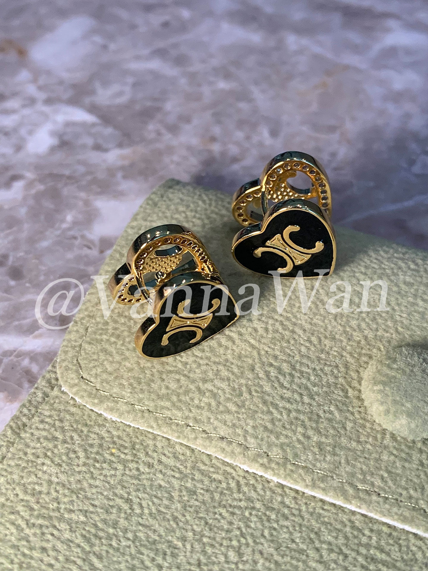 VanWan兩戴!法式Ce凱門愛心閃鑽耳環26新雙面戴耳環高級耳釘百搭