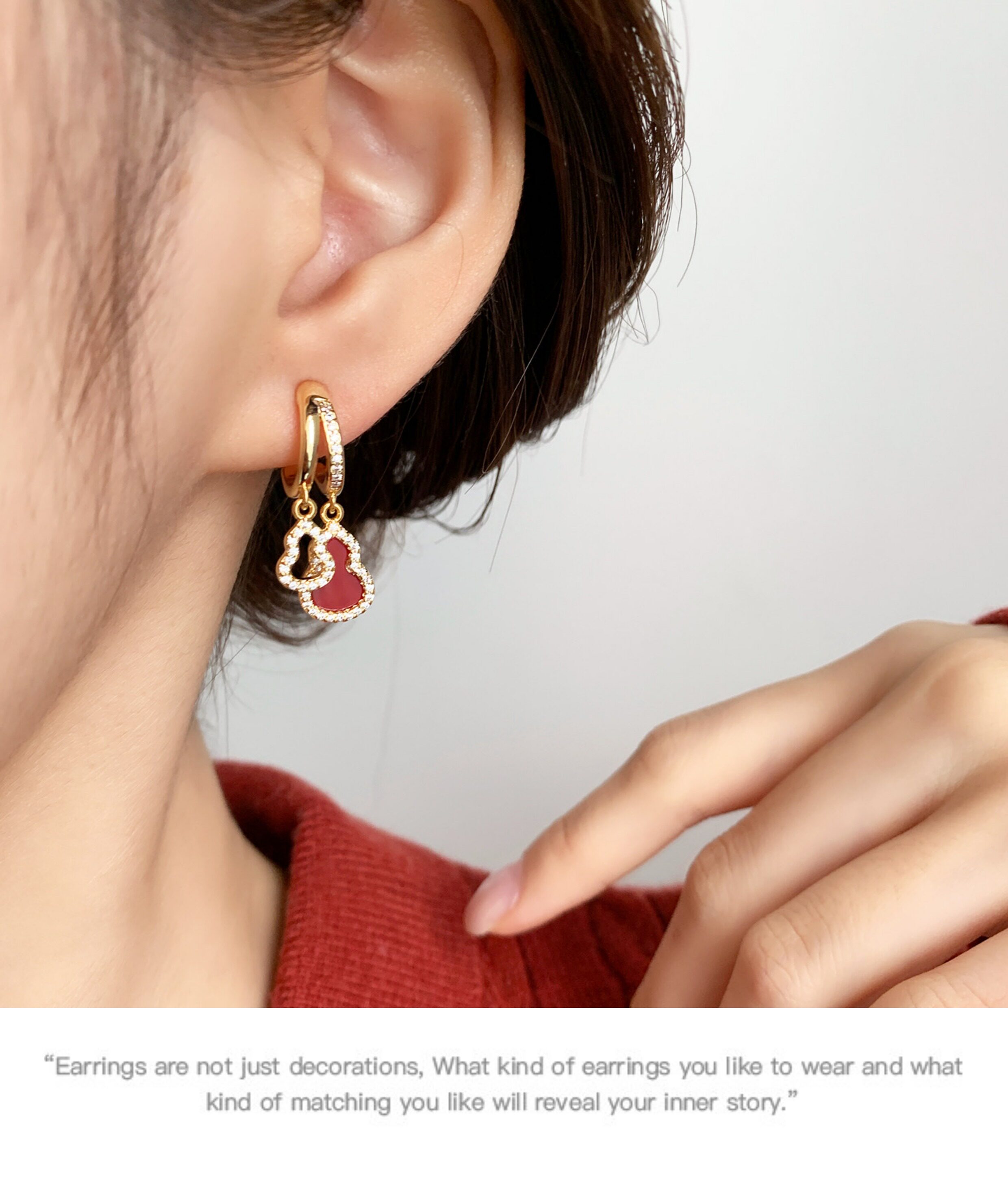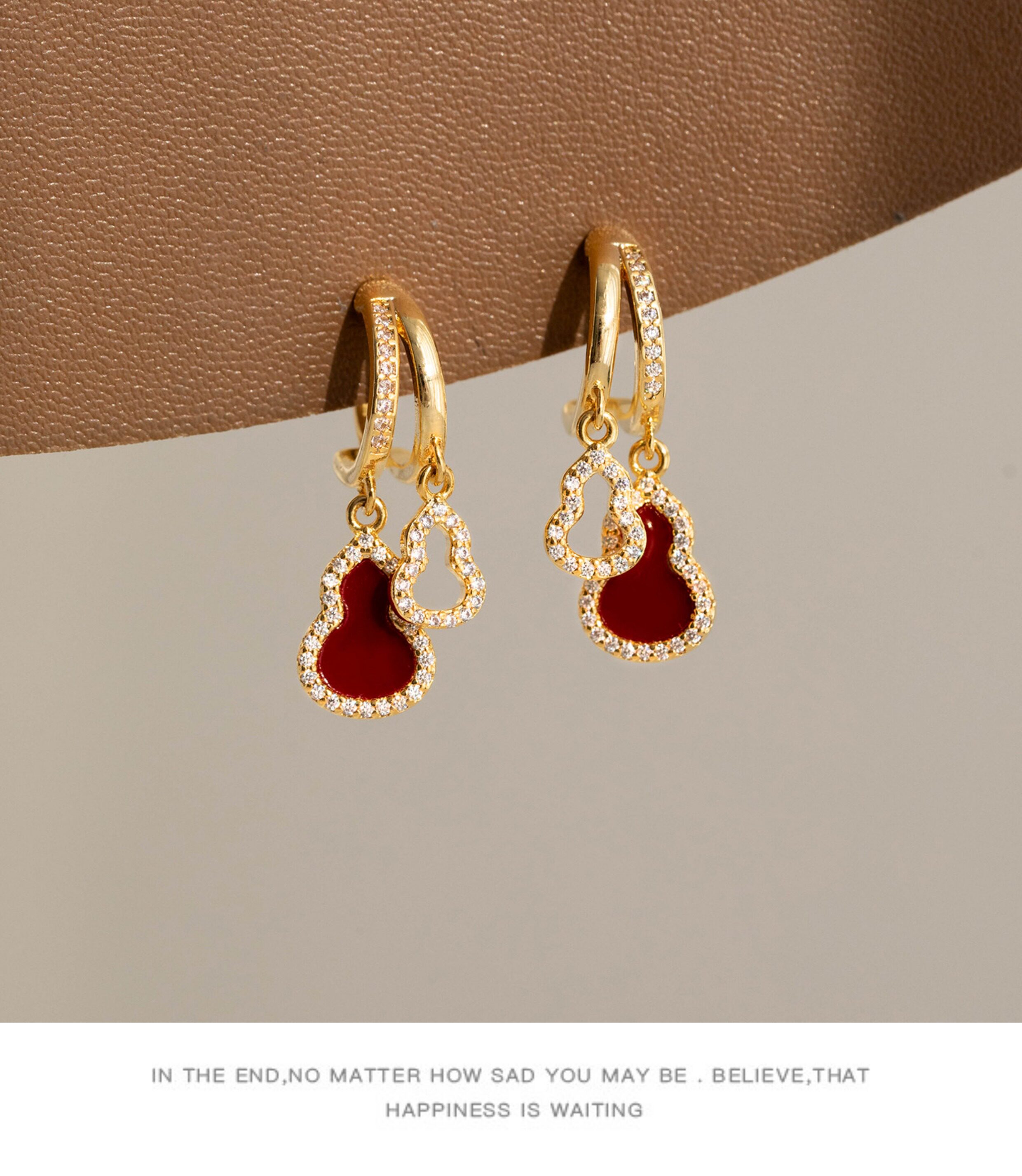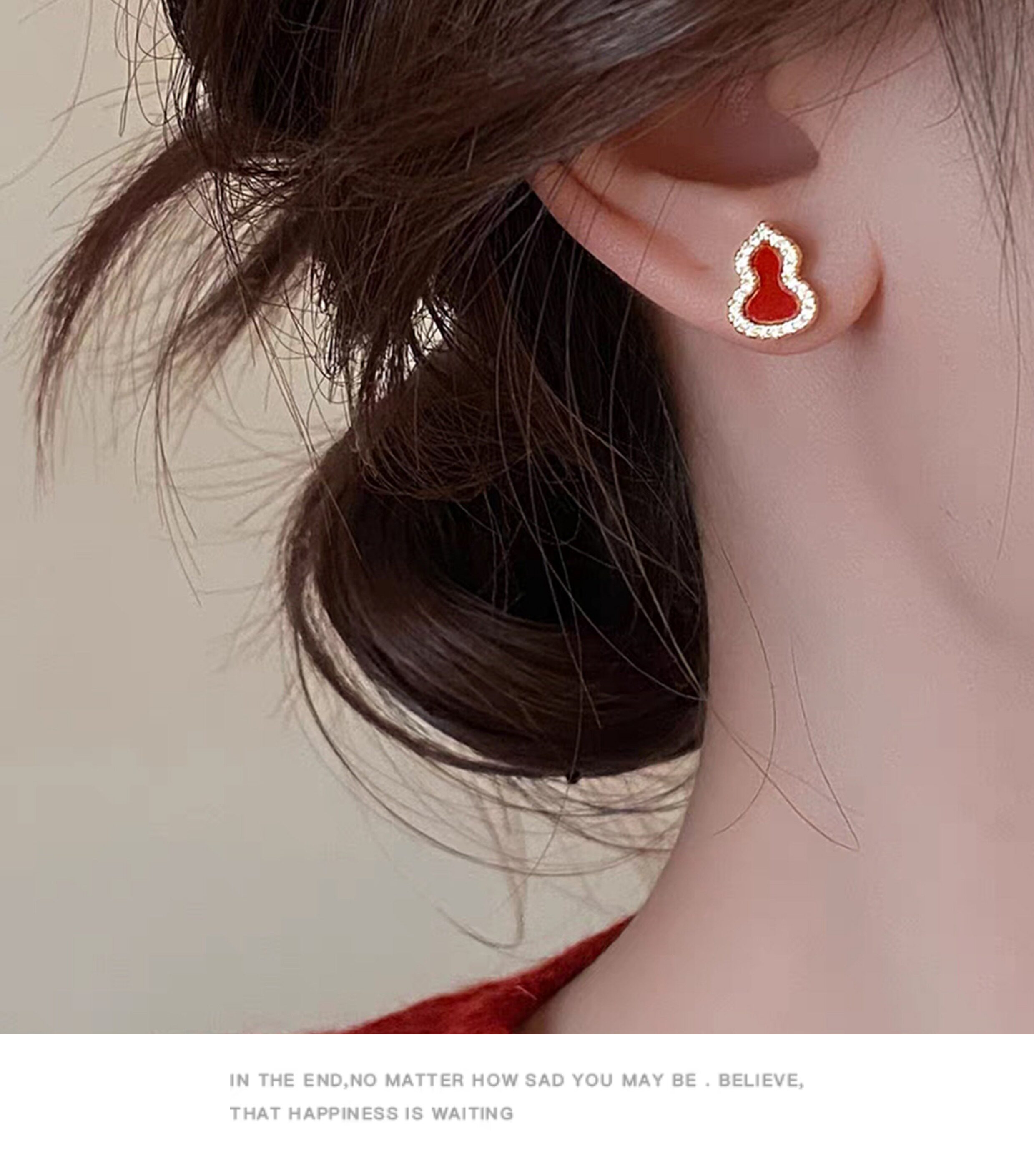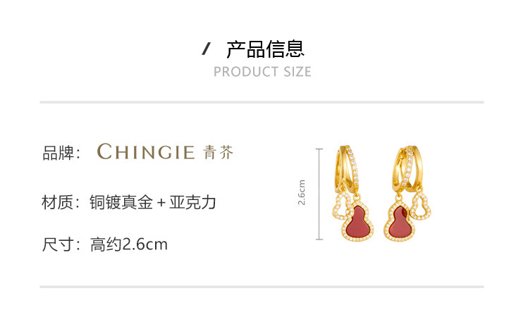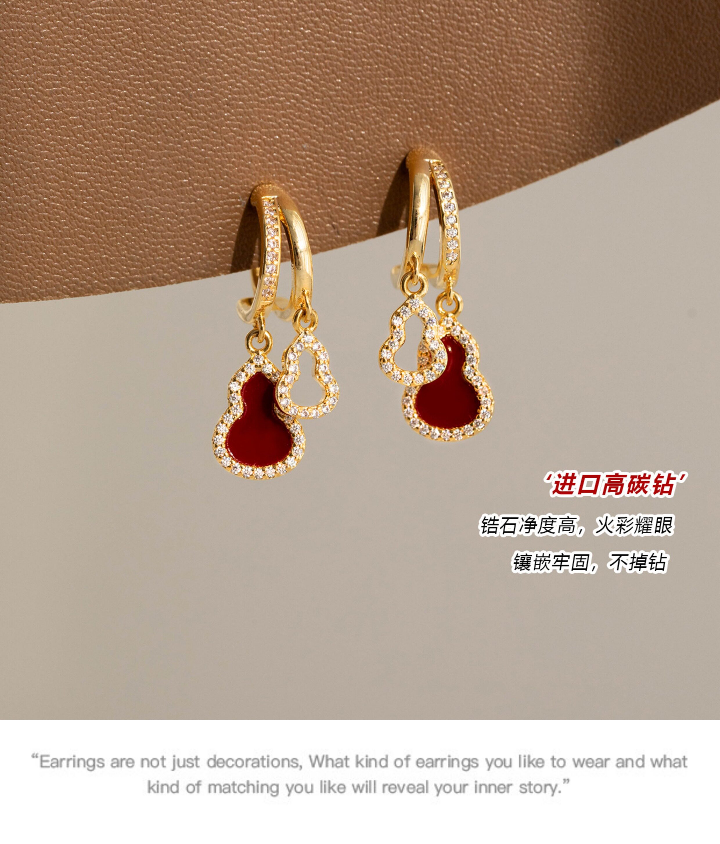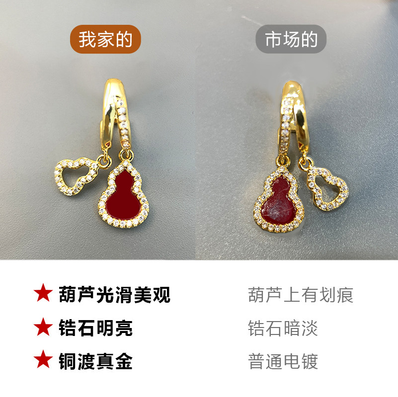 「青芥」新中式天然貝母葫蘆耳環國風輕奢紅色旺財耳飾無耳洞耳夾