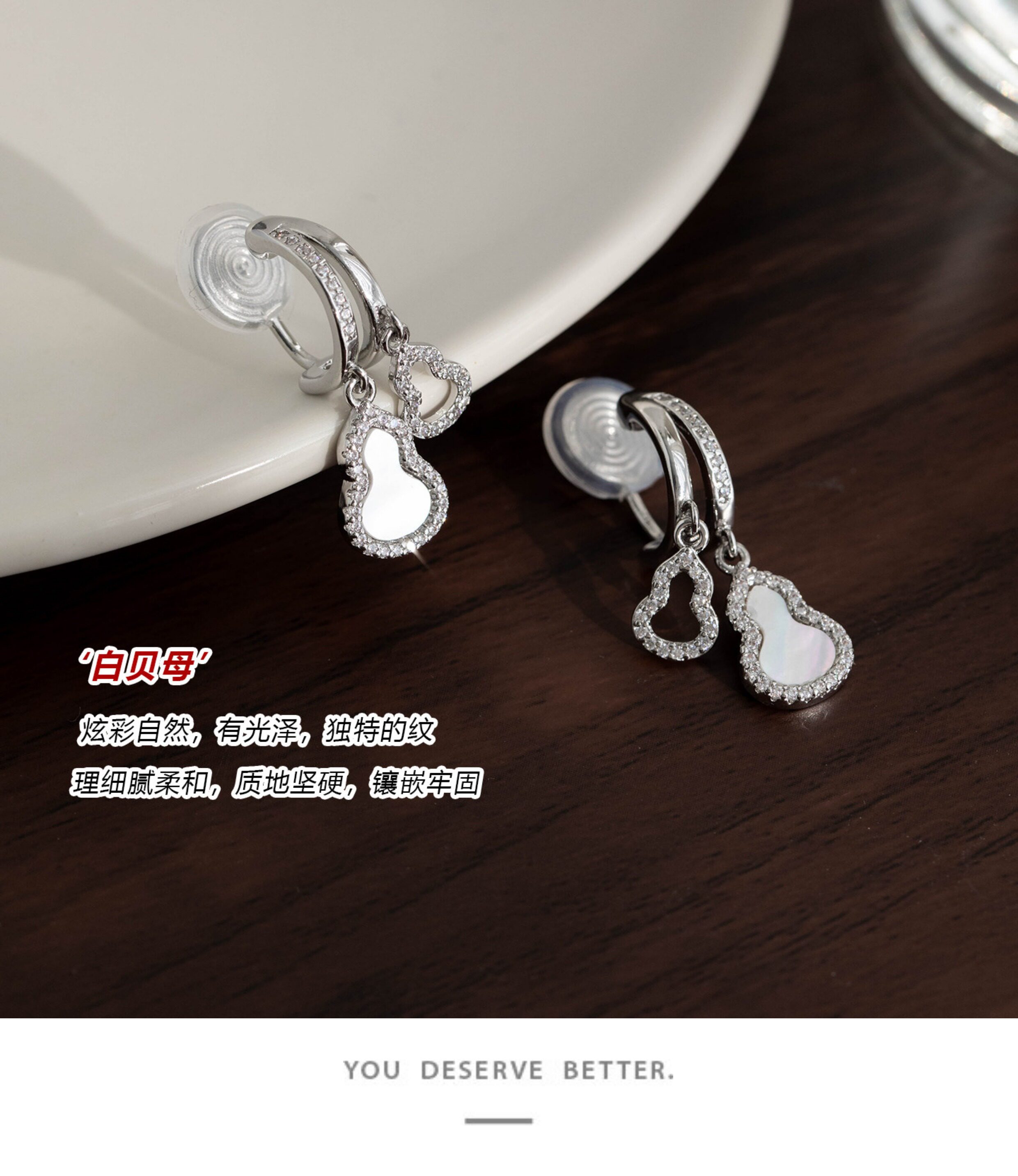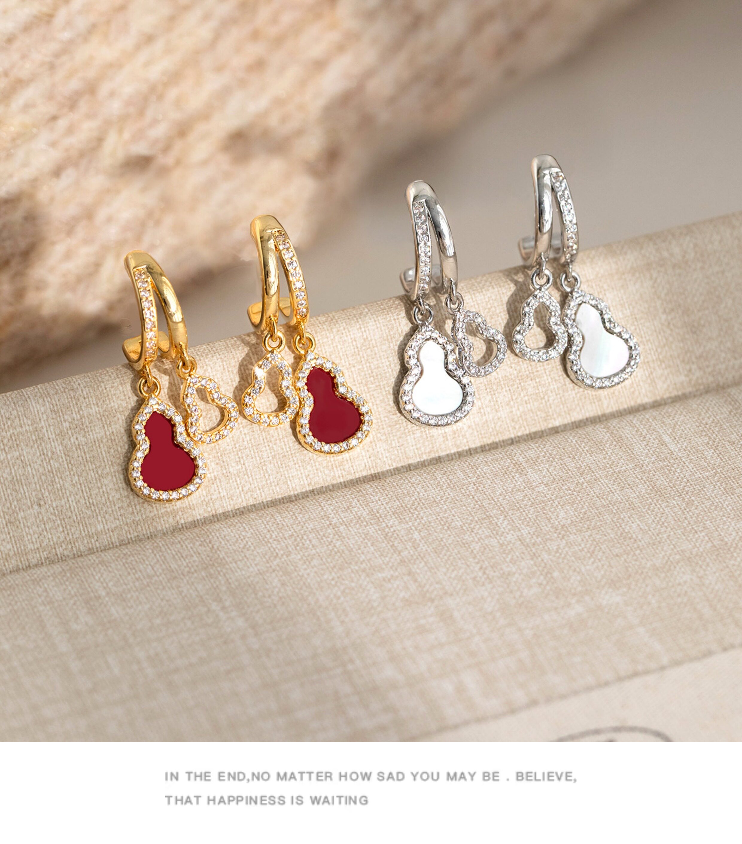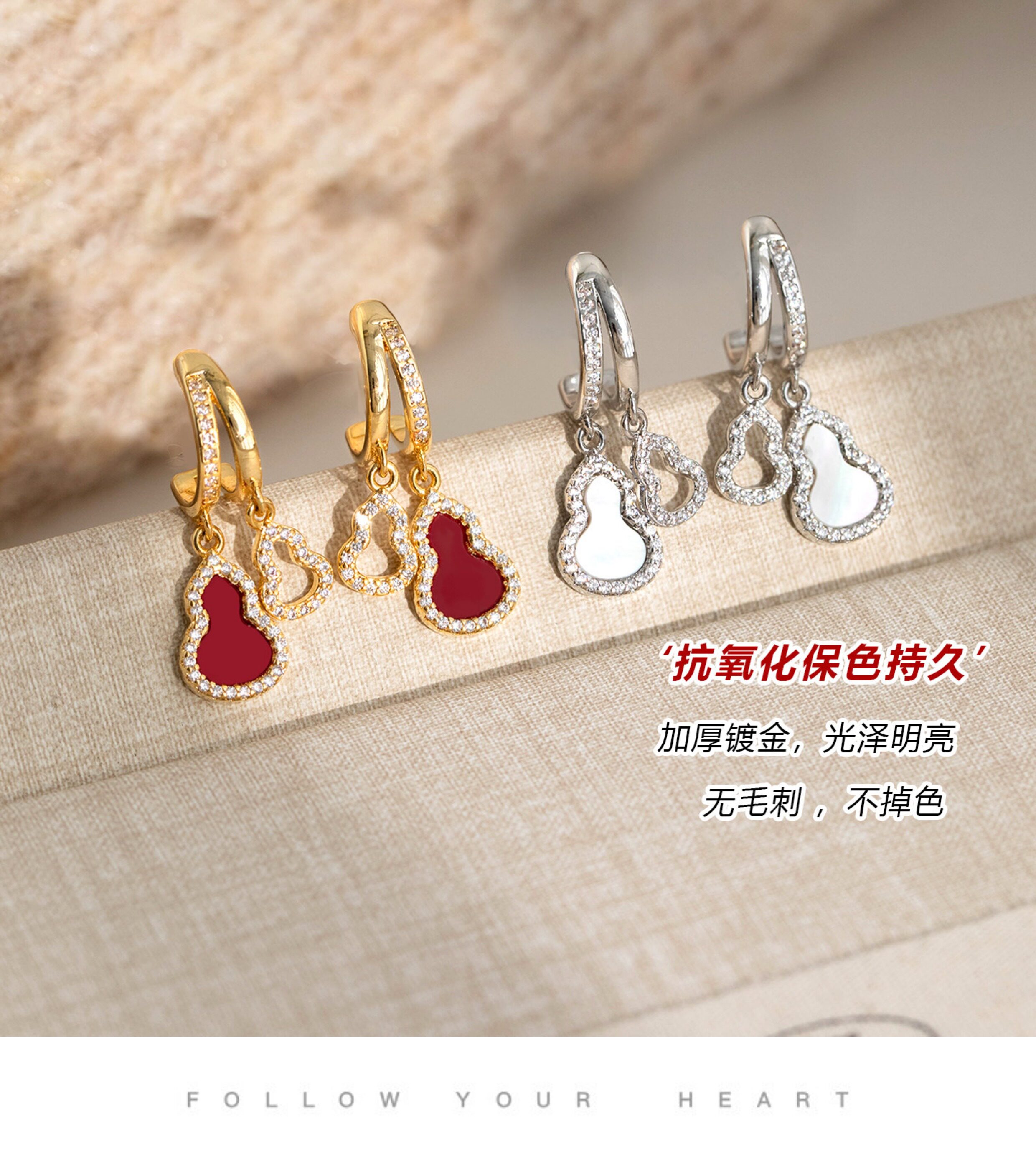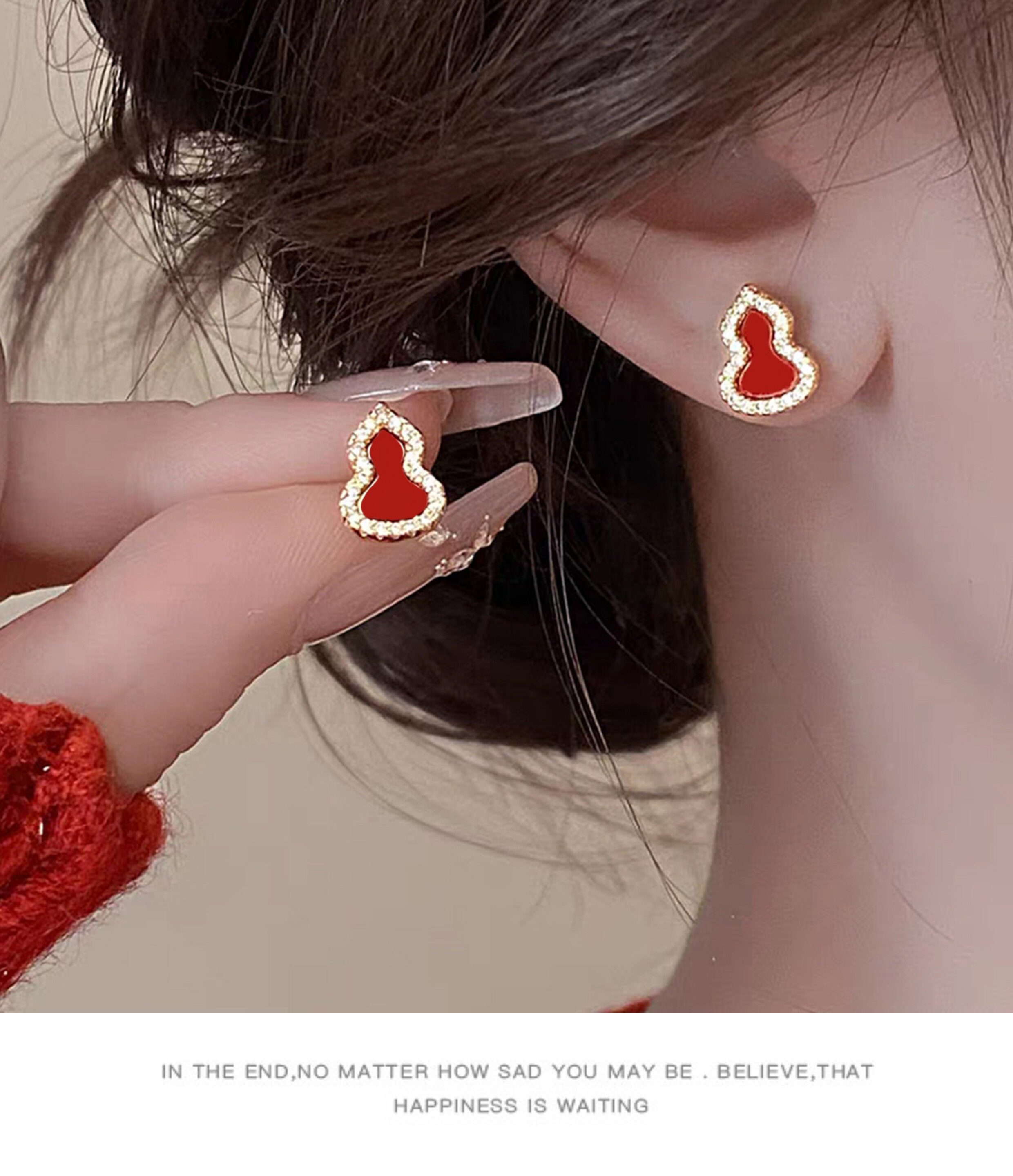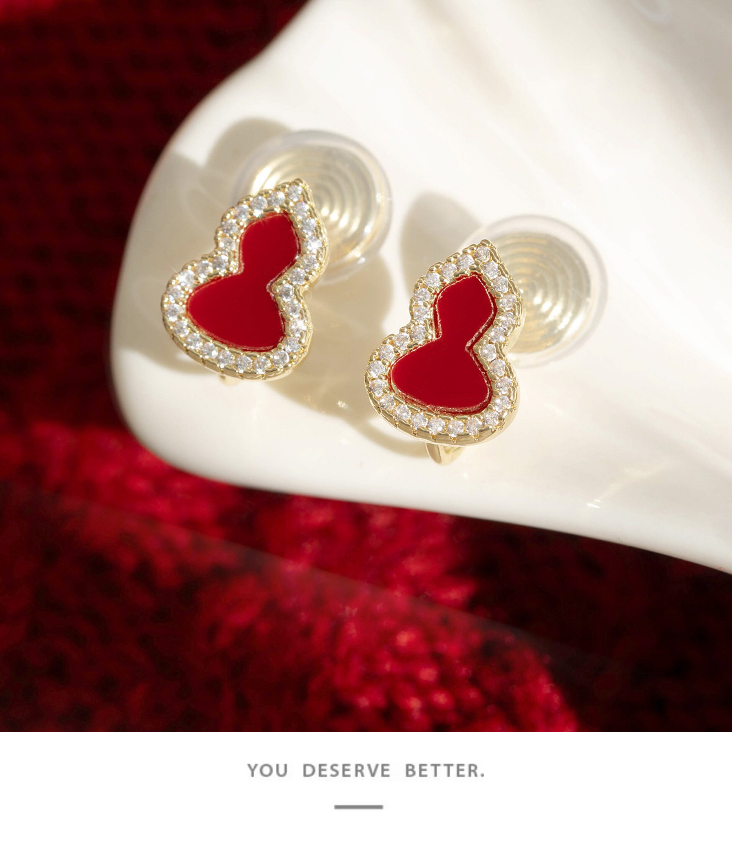 「青芥」新中式天然貝母葫蘆耳環國風輕奢紅色旺財耳飾無耳洞耳夾