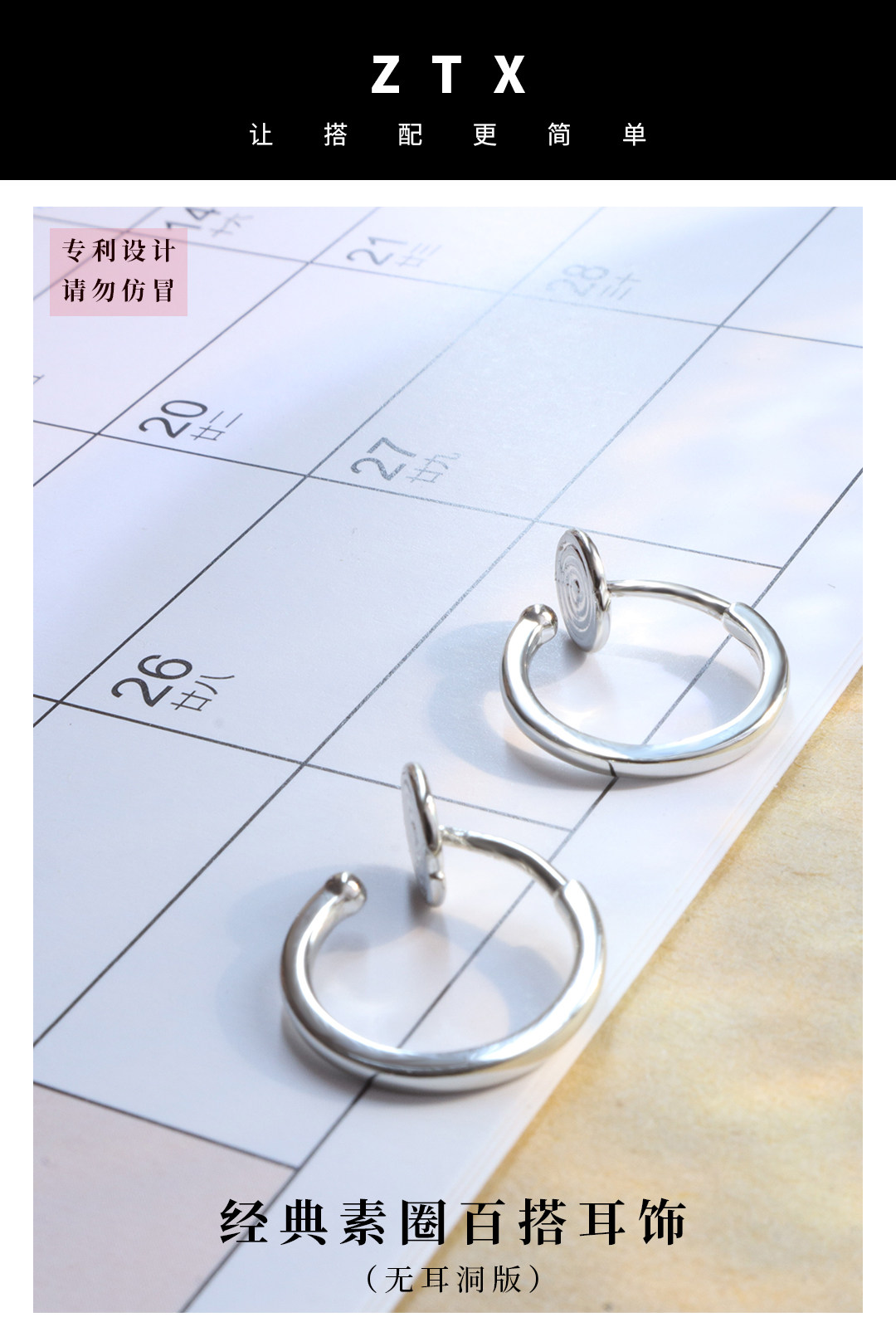 ZTX 素圈耳夾無耳洞女日常百搭圓圈耳飾無痛蚊香盤無洞夾耳式耳環