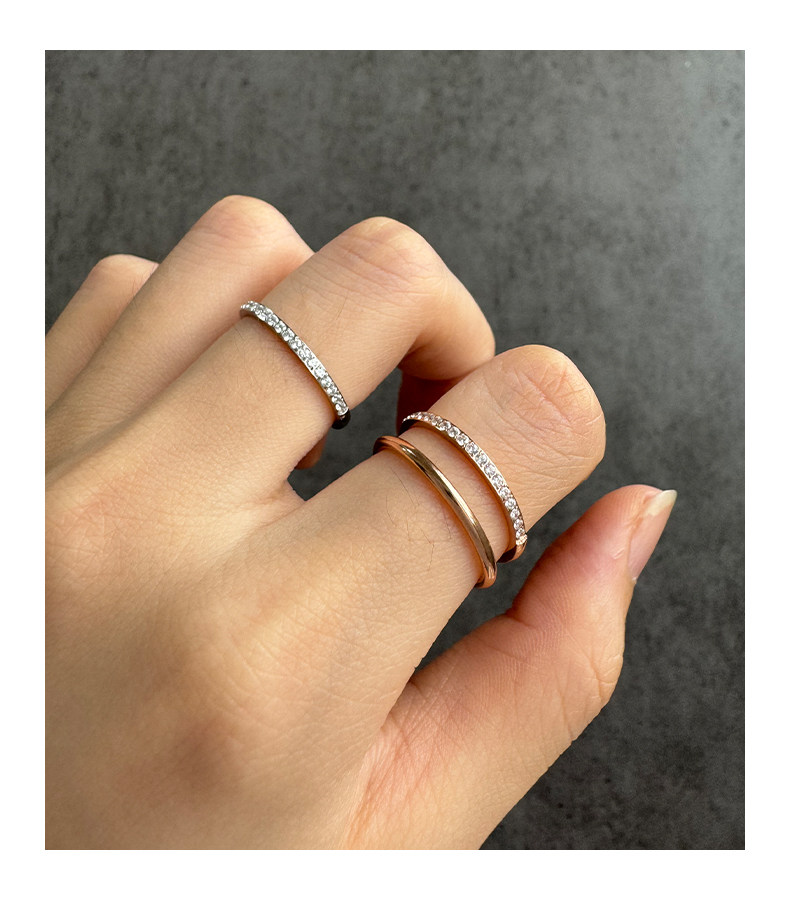 高級感細款排鑽戒指女曡戴時尚個性鈦鋼玫瑰金食指戒尾戒碎鑽排戒