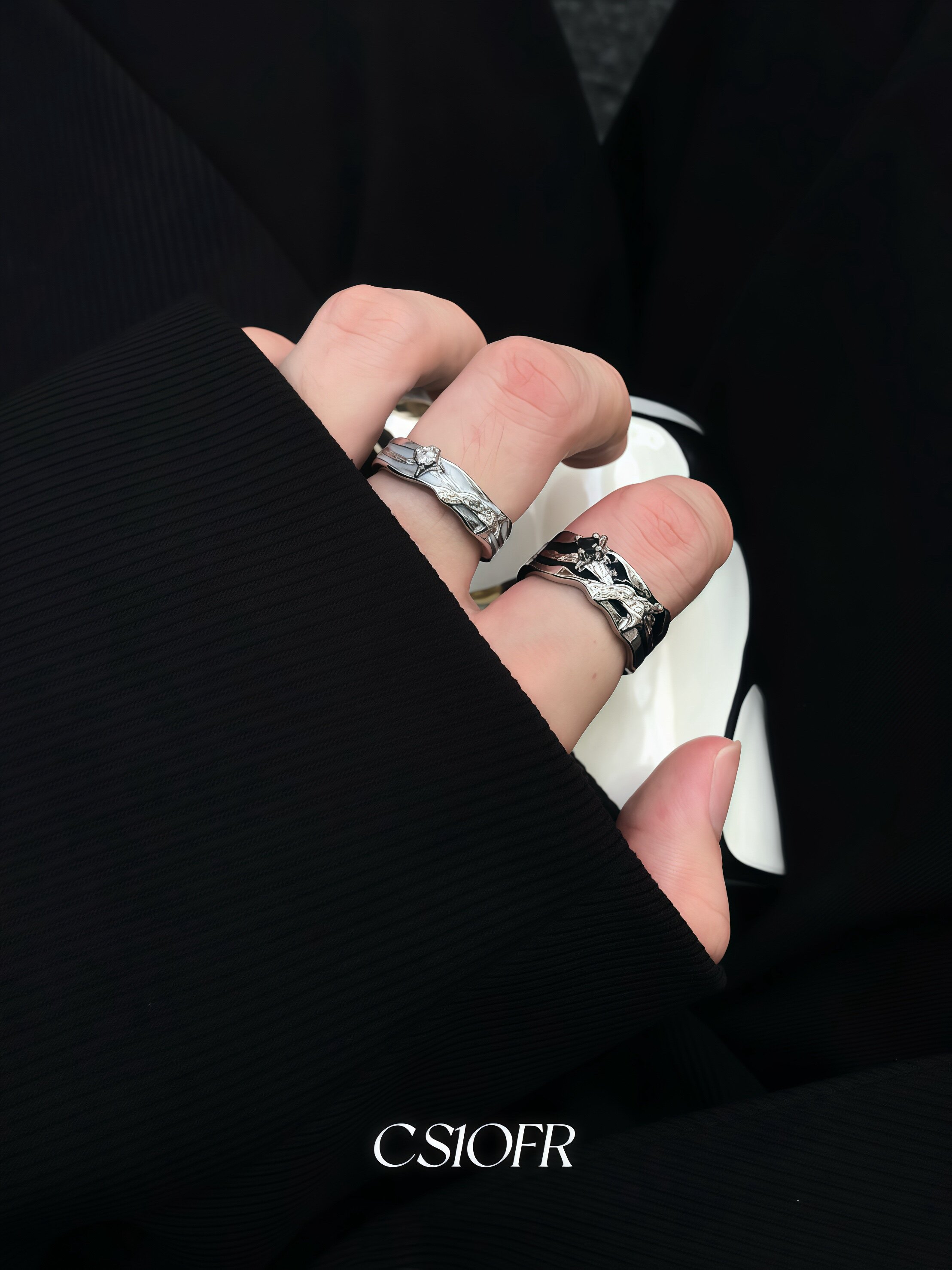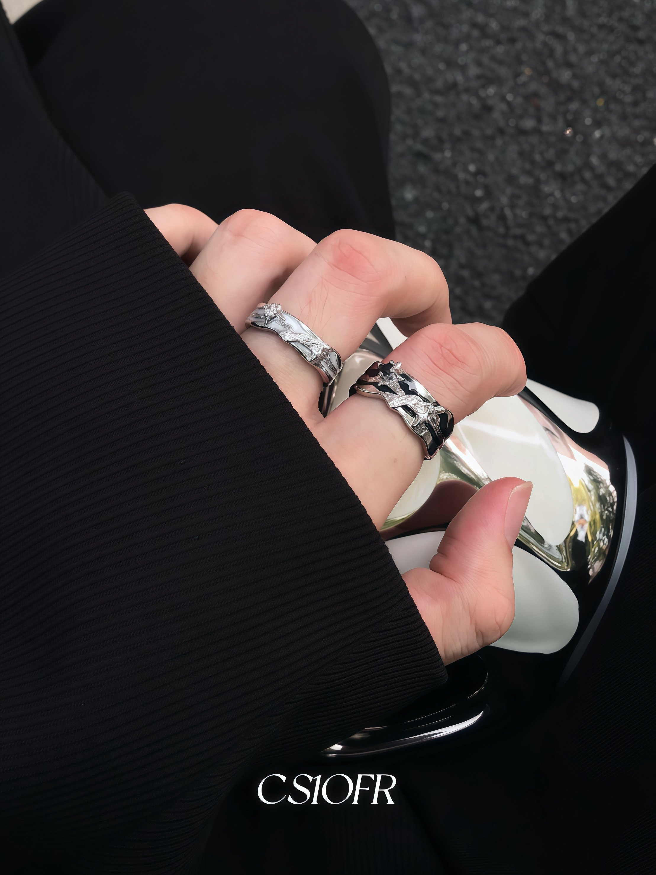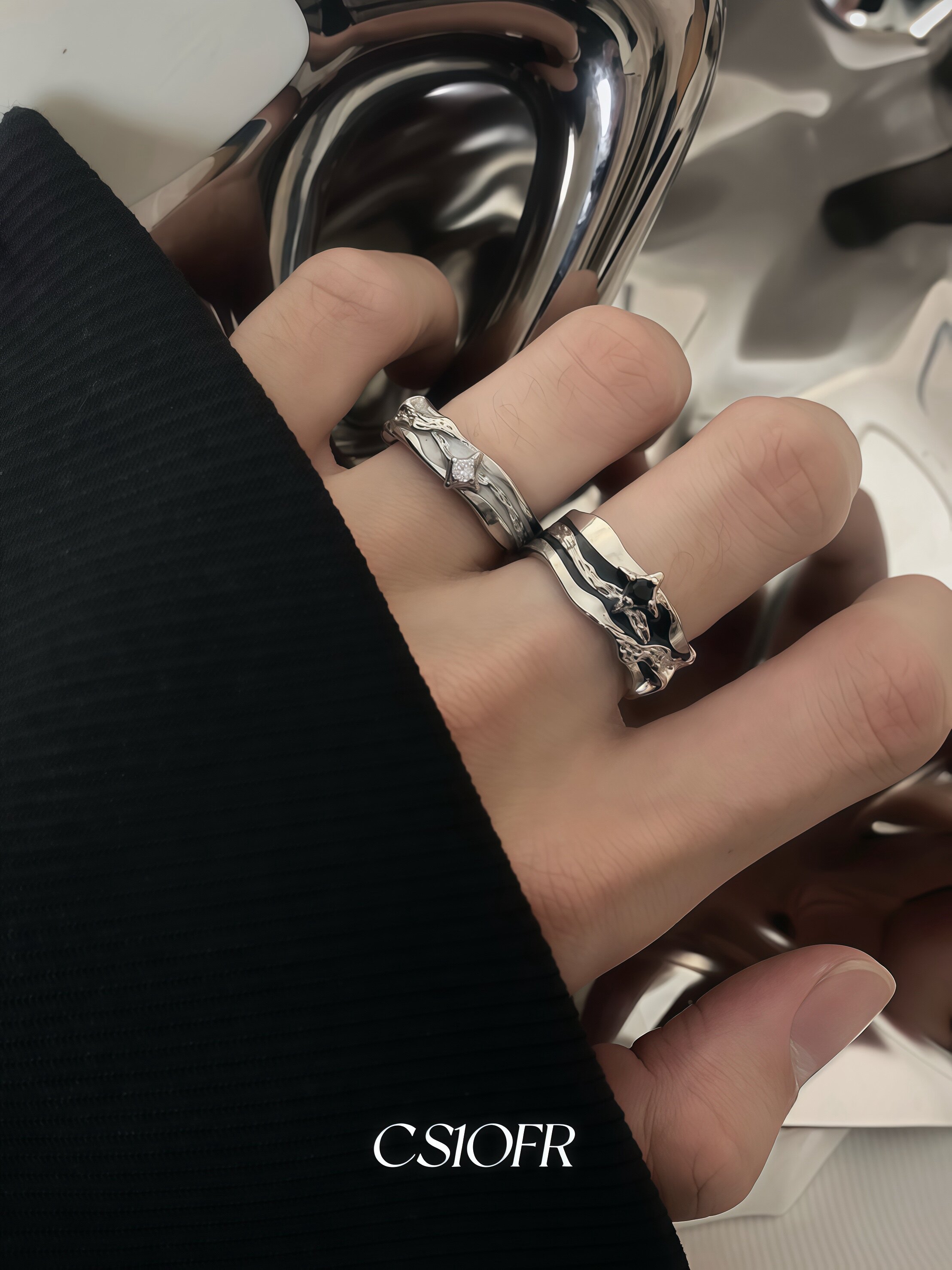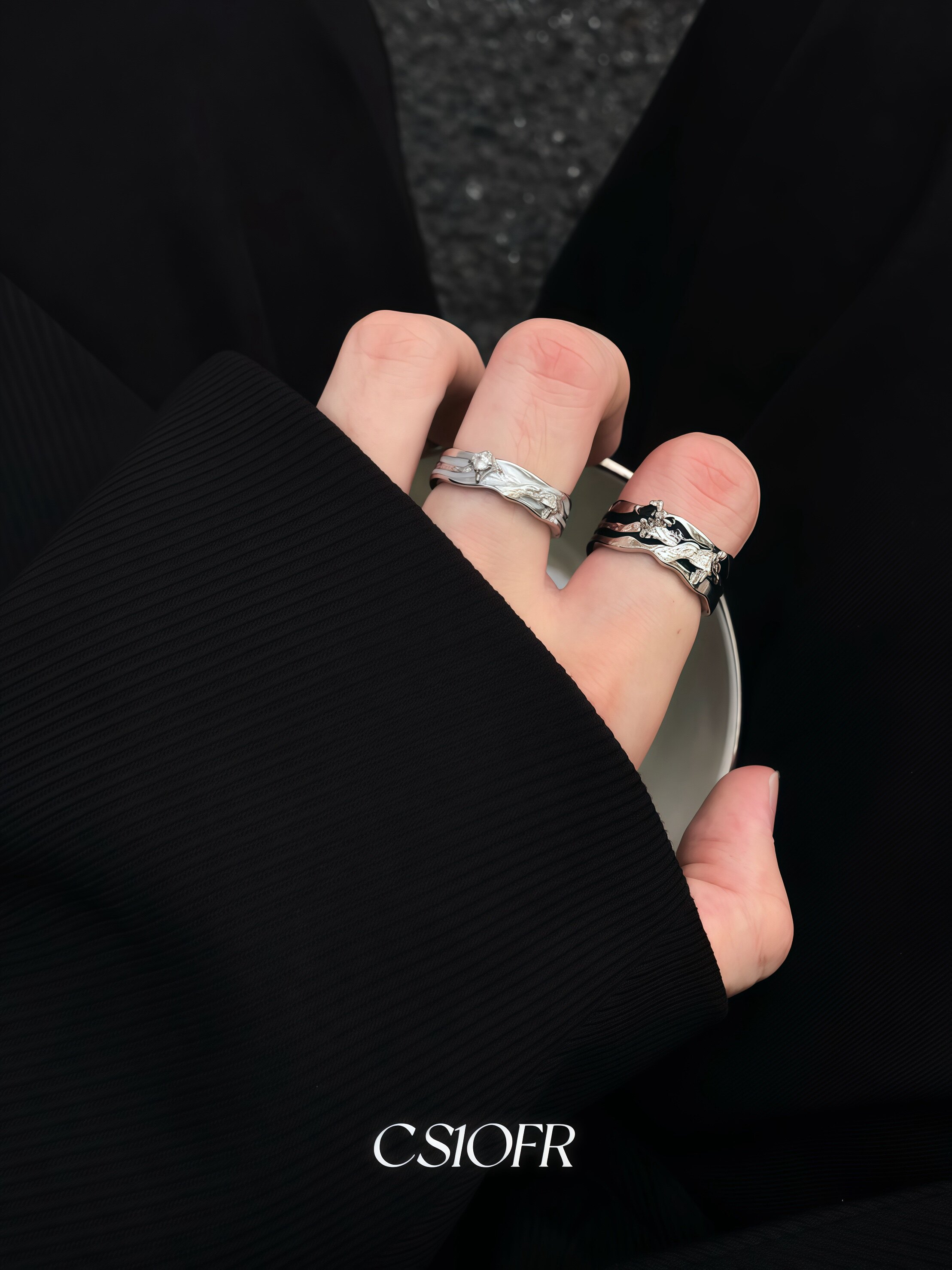 白與黑月光戒指男女不規則ins冷淡風開口調節小衆設計開口配飾