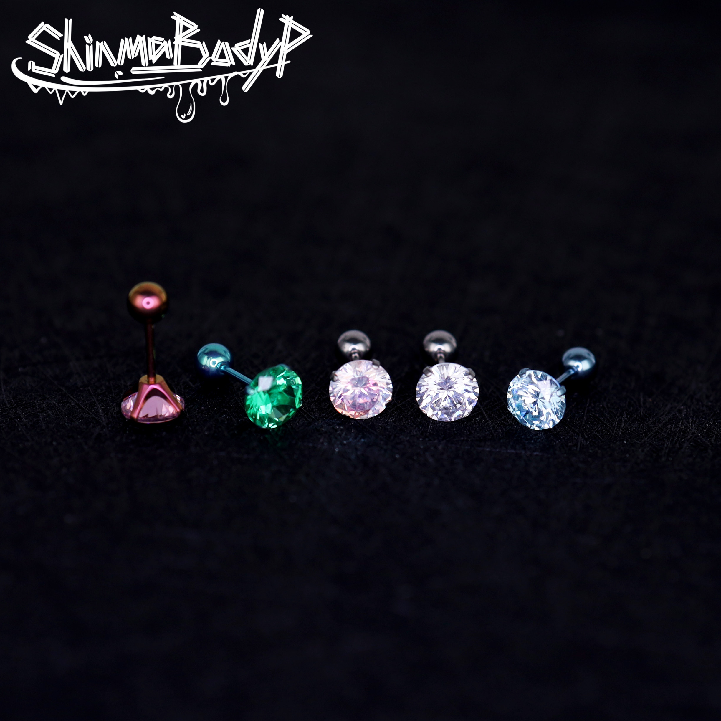 Shinma F-136鈦合金爆閃鋯石耳釘小衆個性設計感耳骨釘平底耳釘