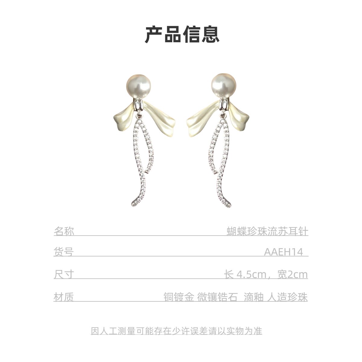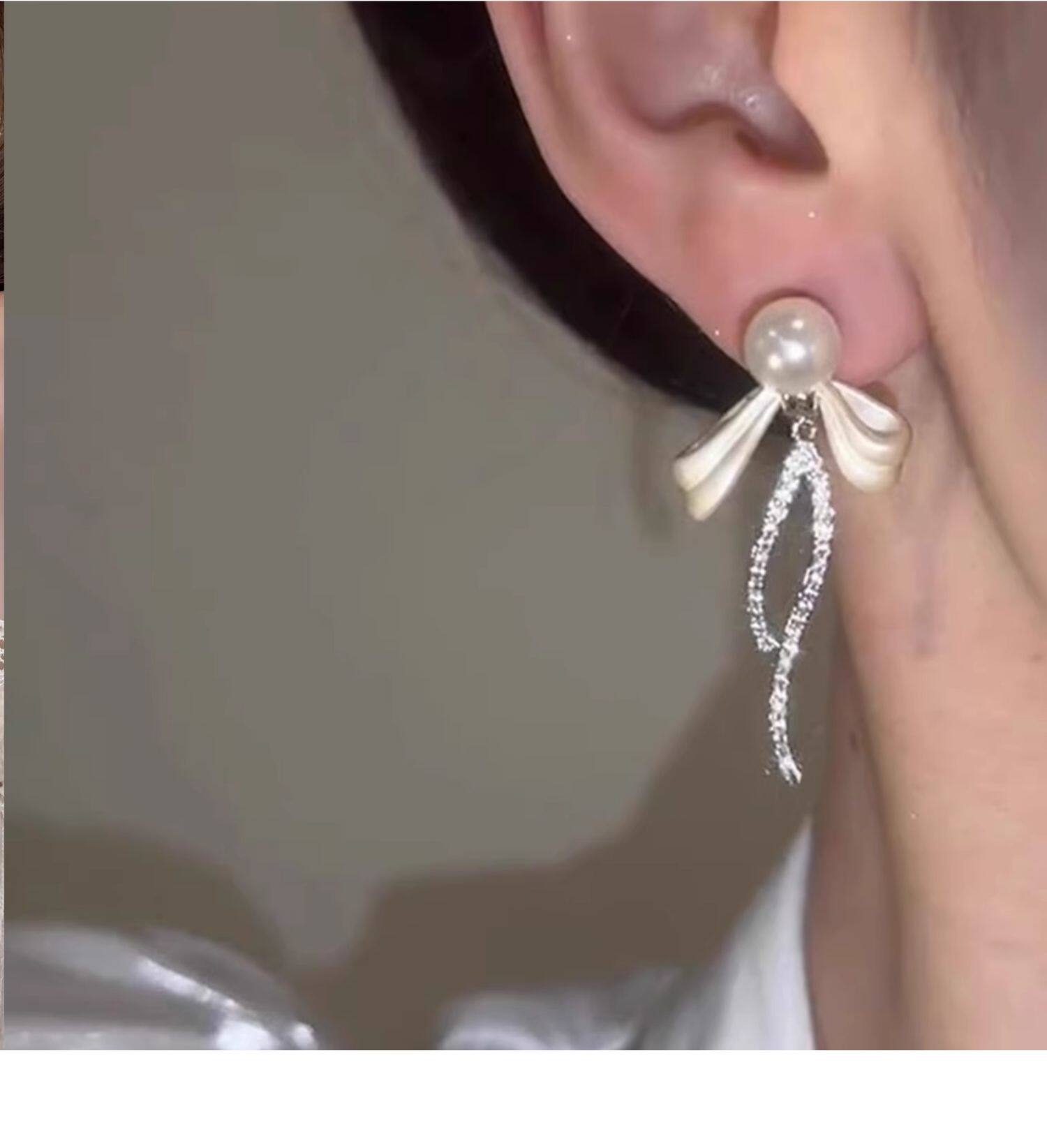 珍珠蝴蝶結流蘇耳環女2026新款爆款鋯石耳釘輕奢高級感小衆設計