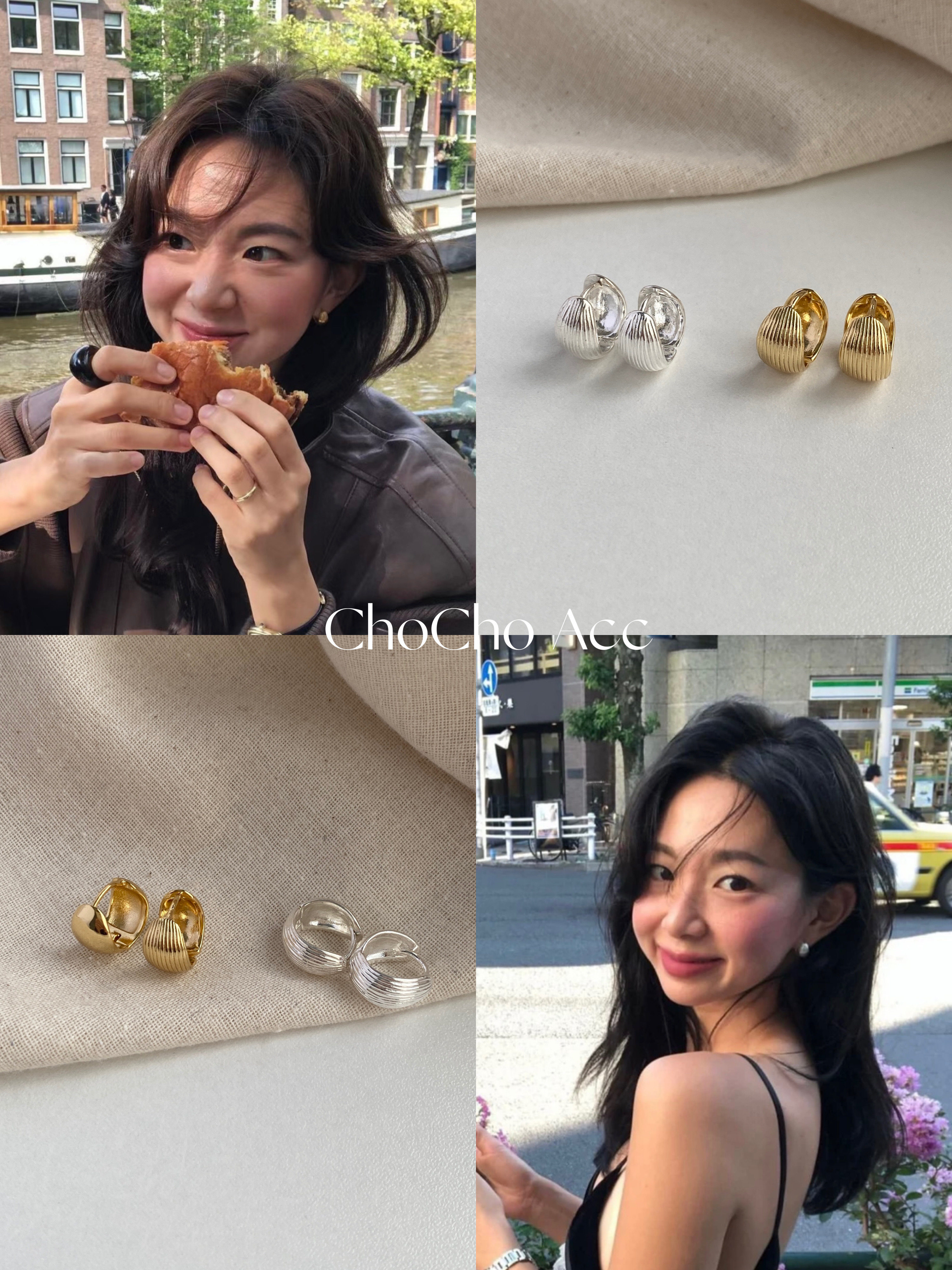 chocho/韓國博主fever同款法式氣質貝殼耳釦小衆簡約百搭ins耳釘