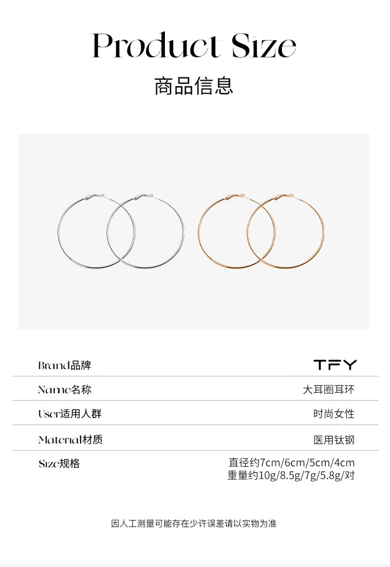 醫用鈦鋼金色大圈耳環圈圈女不掉色2026年新款爆款圓圈素圈耳圈