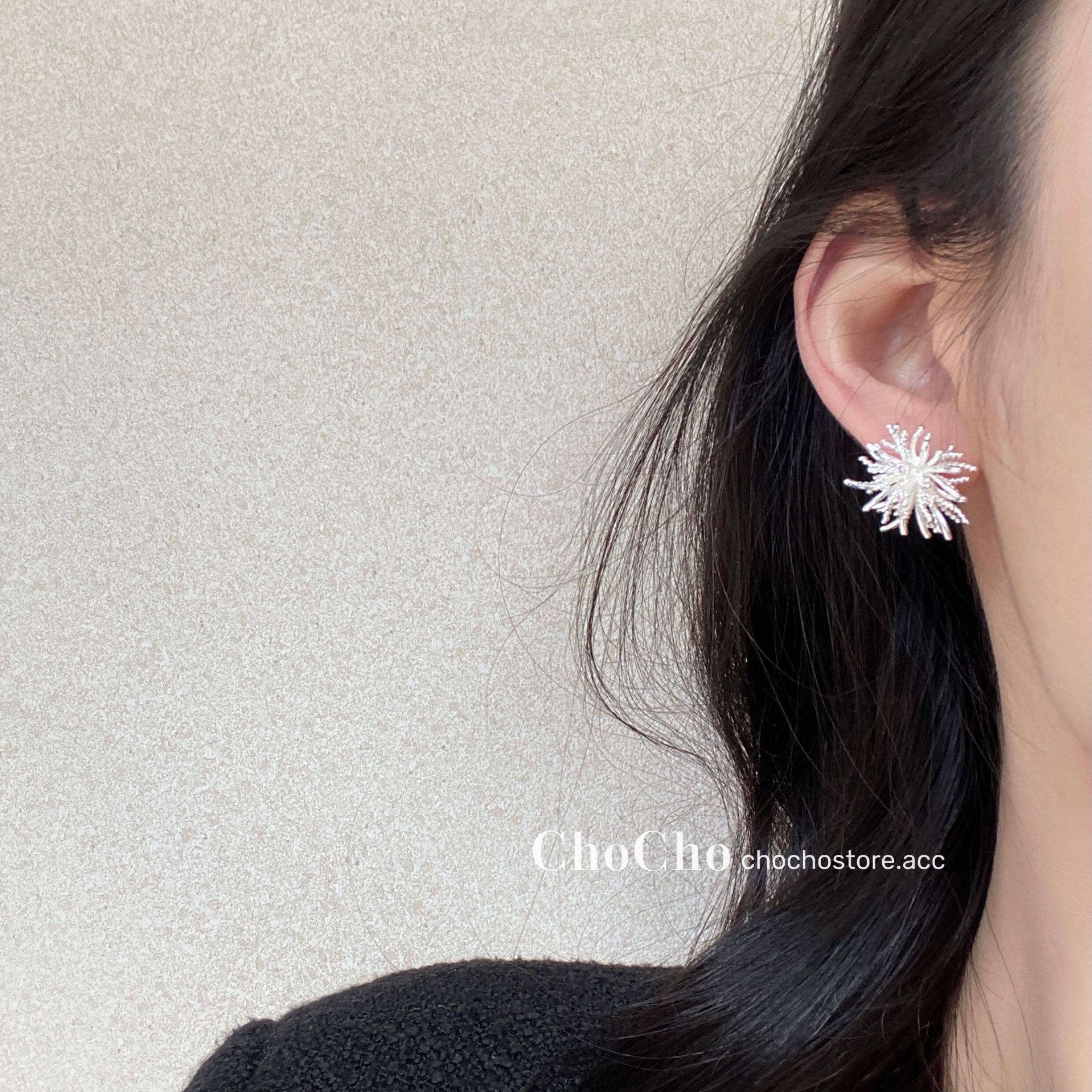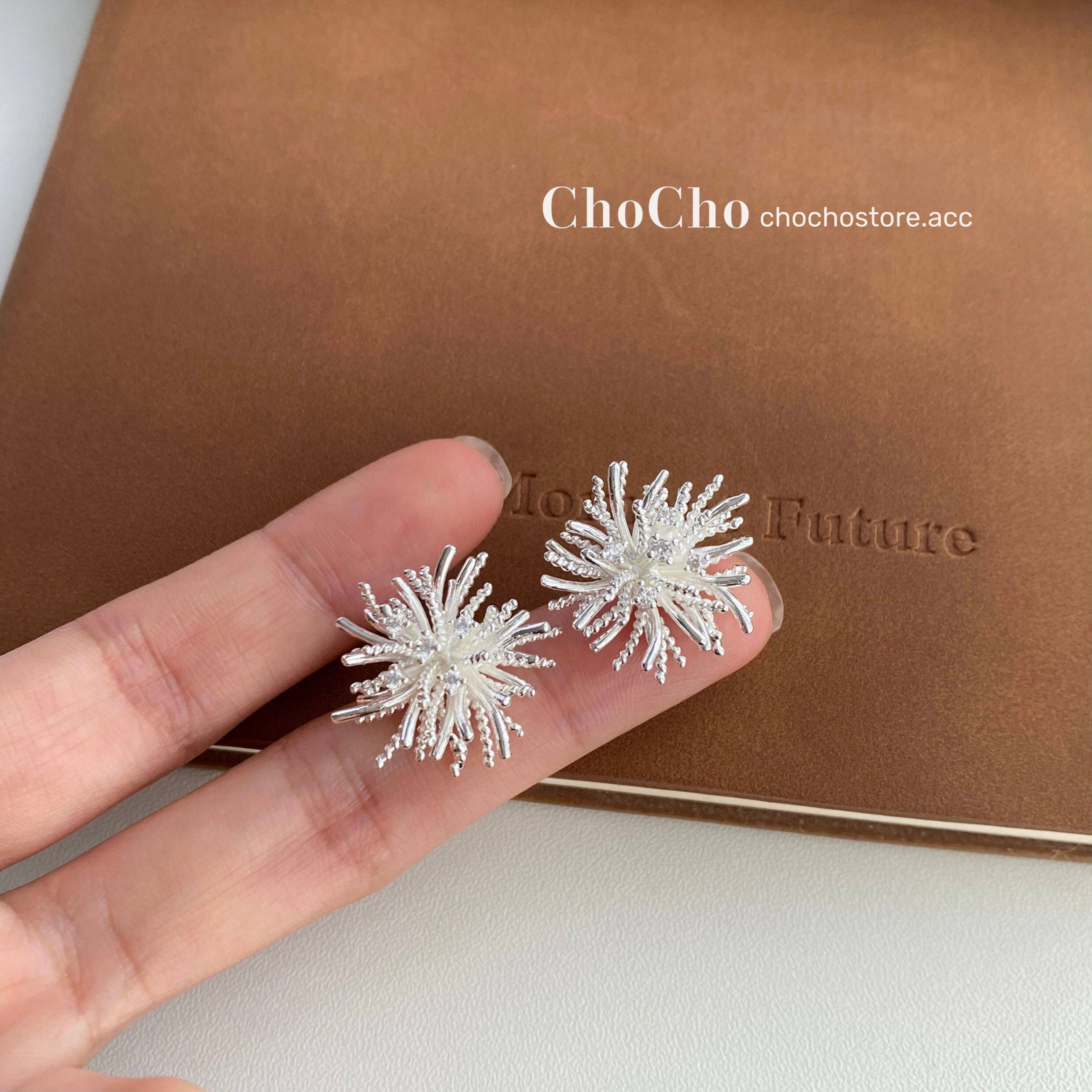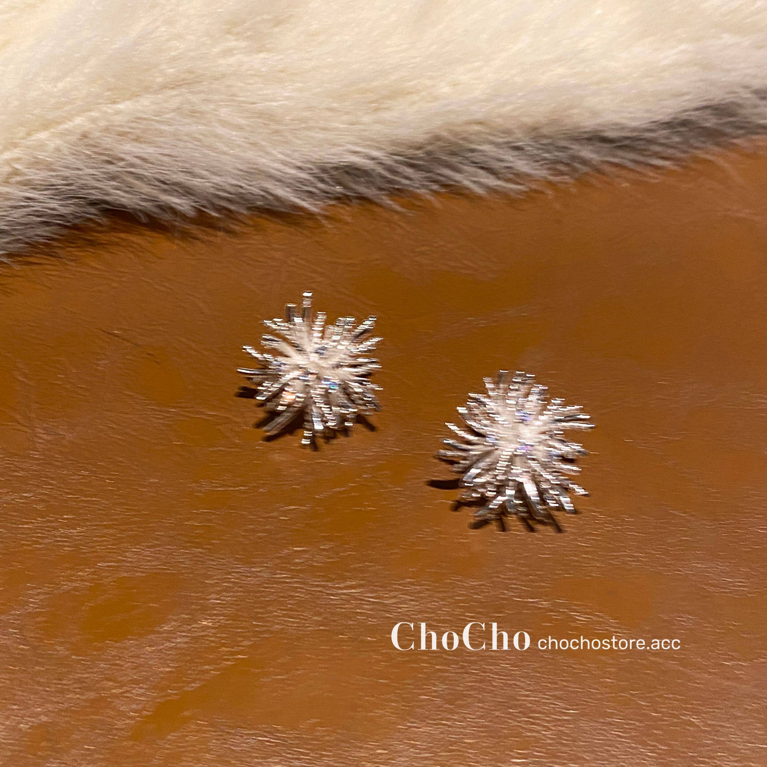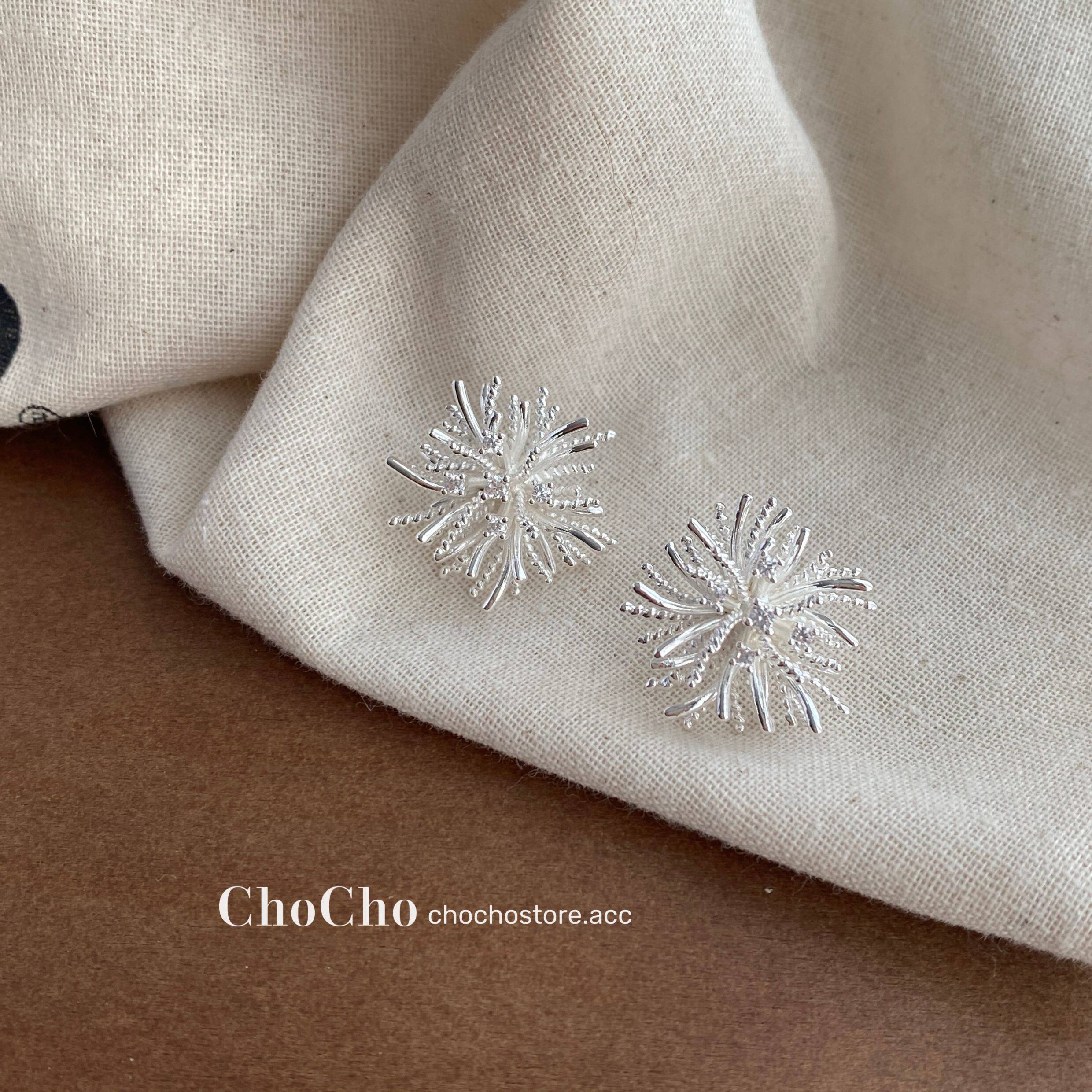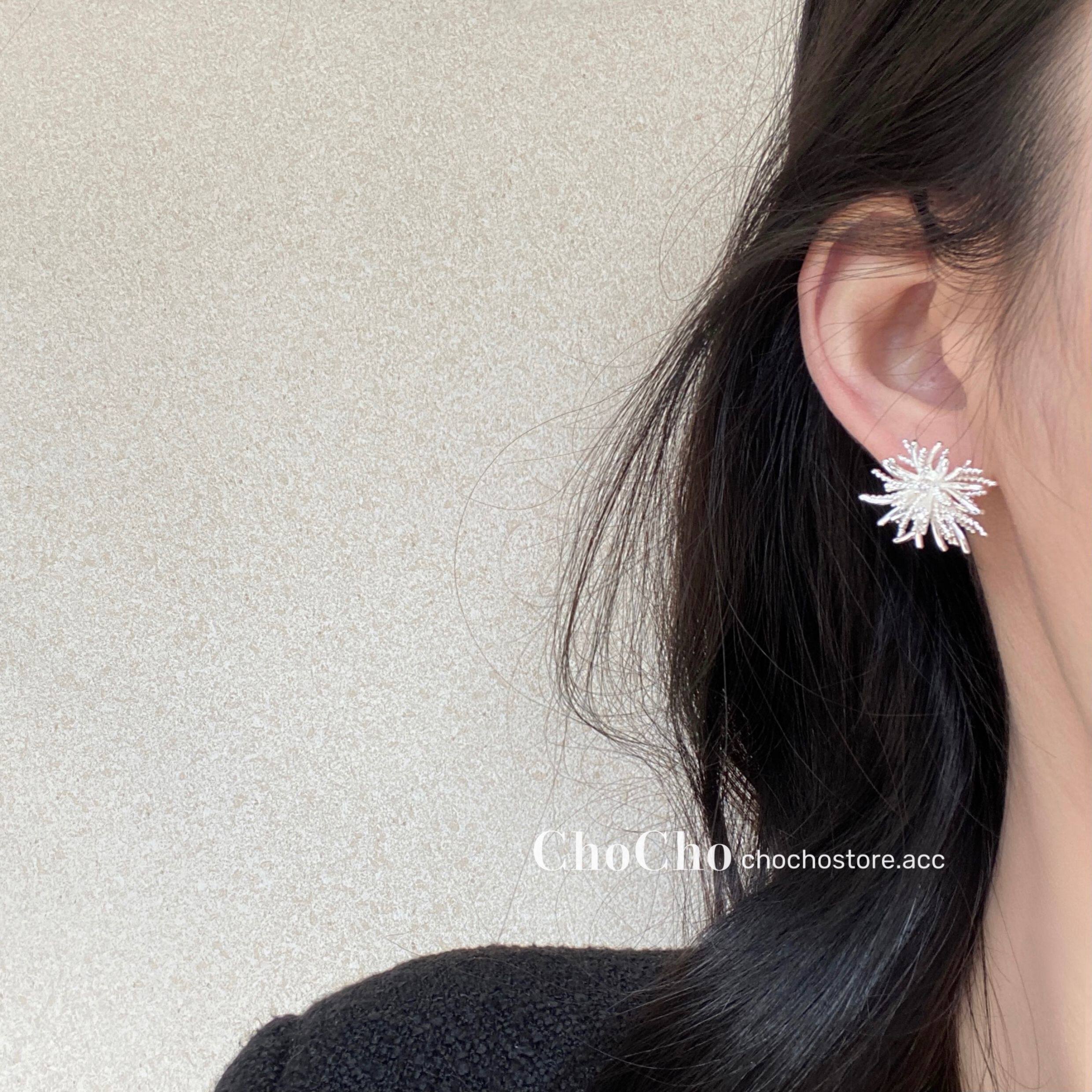 chocho/銀霜落 韓系精緻鋯石花朵耳釘高級感獨特設計感耳環耳飾女